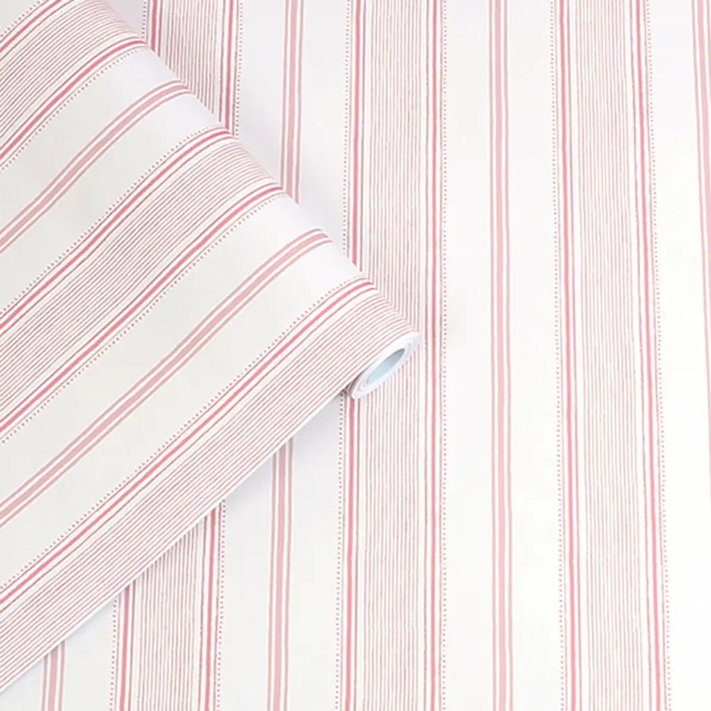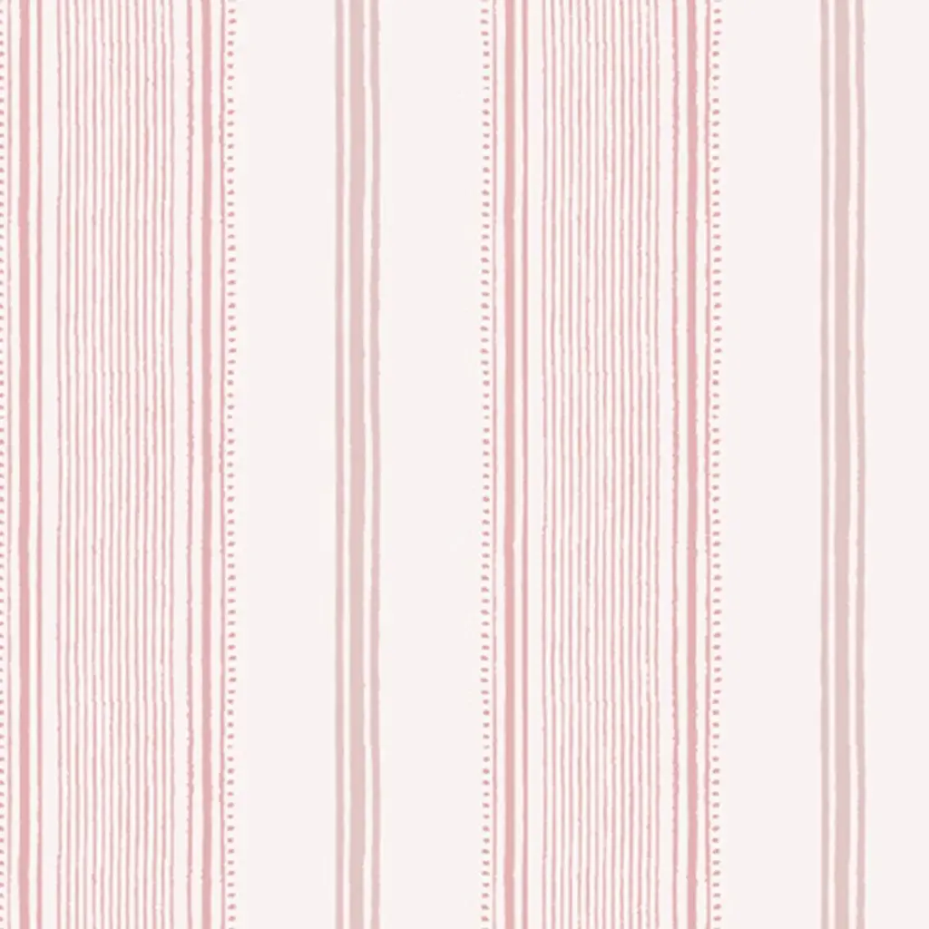 A full roll of this product is 20.5 inches wide and 396 inches long. A full roll can cover up to 56 square feet depending on the design match and pattern repeat. A sample of this product is 8 inches by 11 inches. Clean and contemporary, Heacham Stripe offers a minimal and timeless look to any interior. Varied sizes of pink stripes are set against a white background, giving the illusion of texture. This blush colorway is beachy and adds a sense of calmness to a room. Offers a smooth, untextured finish. Free match with no pattern repeat.