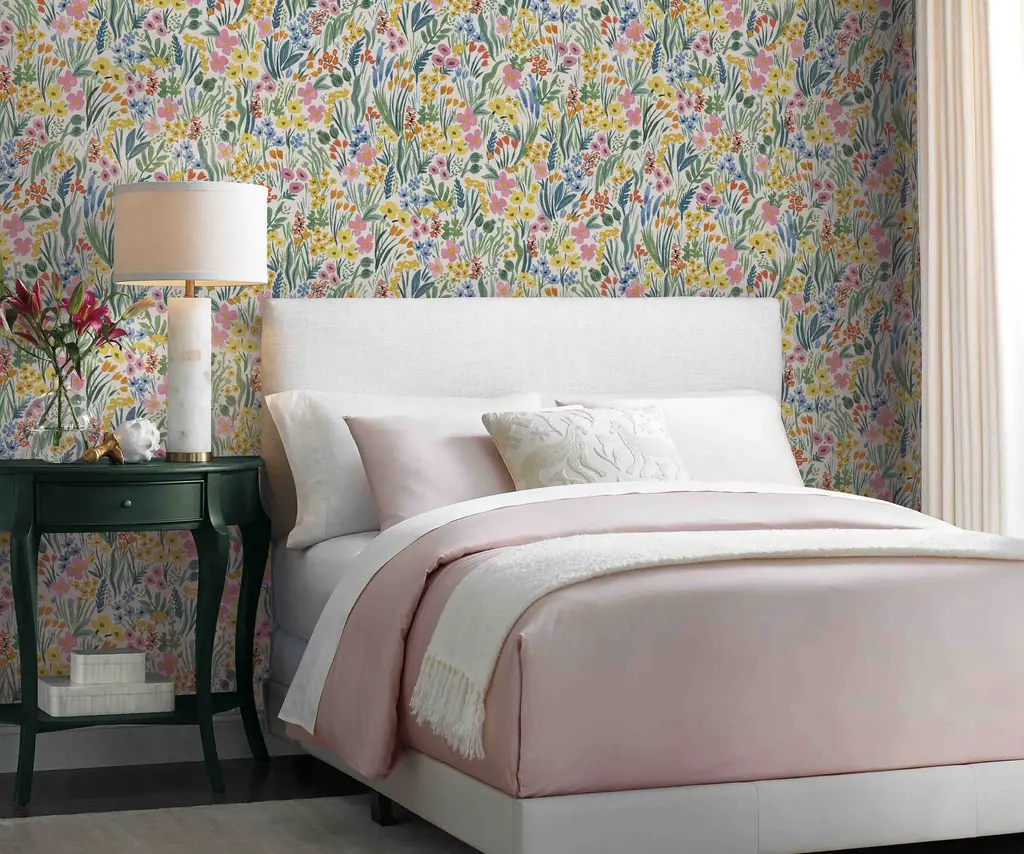 8 × 10" sample of our Lea peel & stick wallpaper. Inspired by the windswept flowers and grasses along the coastline, our Lea floral has a gentle movement and delicate design. Please note that wallpaper samples are cut at random, and pattern placement of the sample you receive will not match the photo featured here.