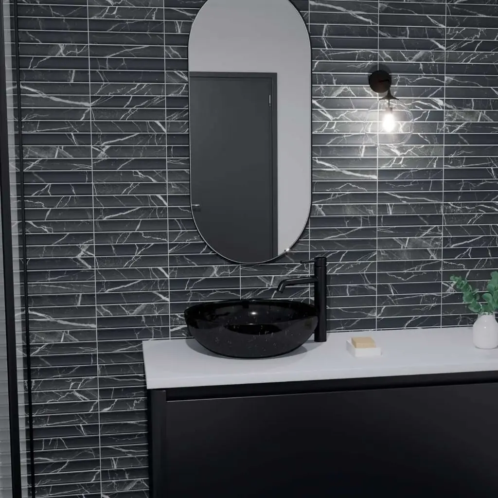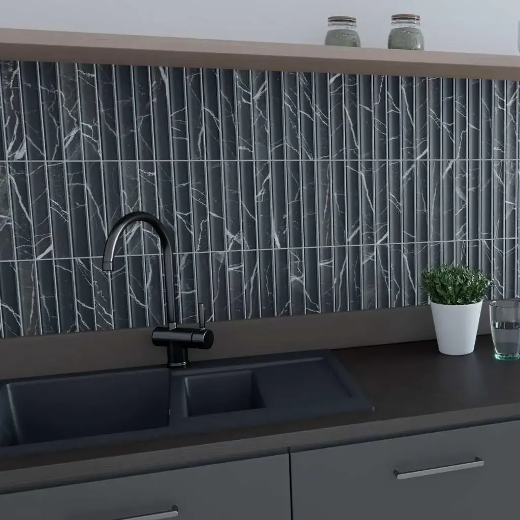 Lyrical 4.5" X 9" Fluted Porcelain Wall Tile - 4.5 X 4.5 Sample - Marquina