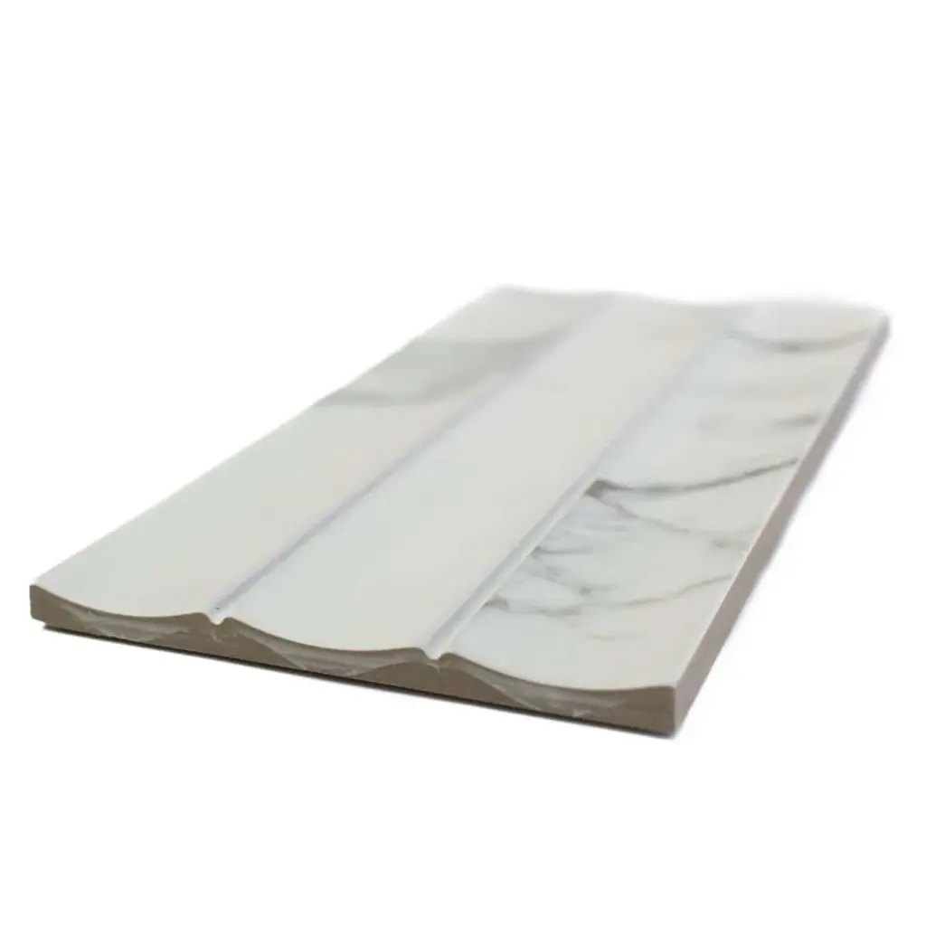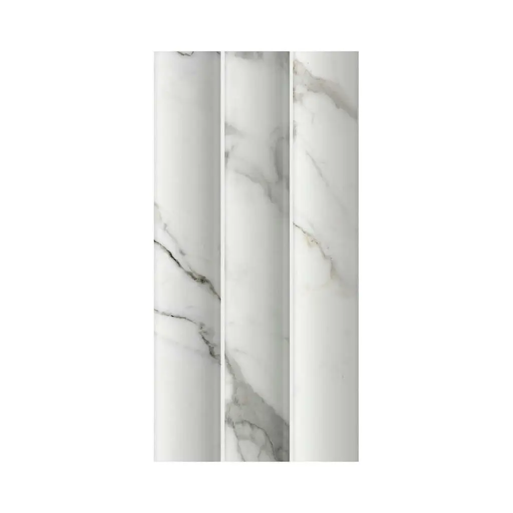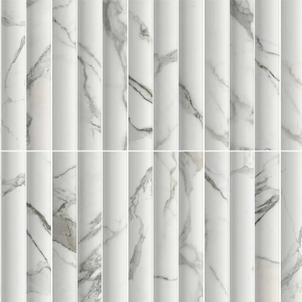 Lyrical 4.5" X 9" Fluted Porcelain Wall Tile - 4.5 X 4.5 Sample - Statuario