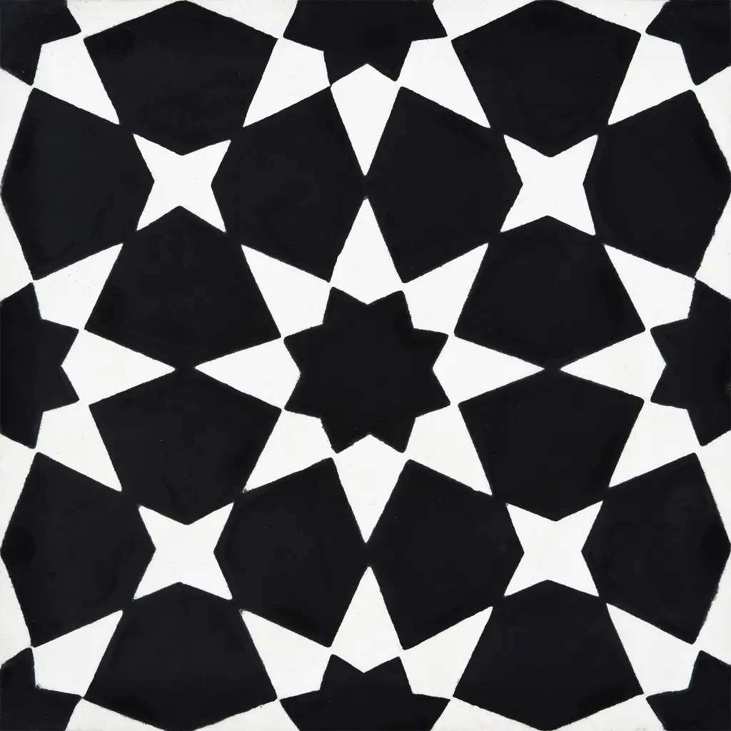 Medina Handmade Cement Tile, 8X8, Black-White , Set Of 12 ( Morocco) - Sample-1 Tile