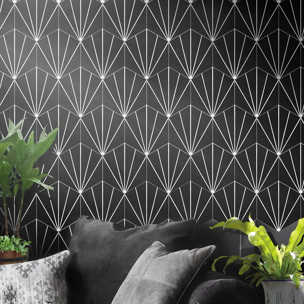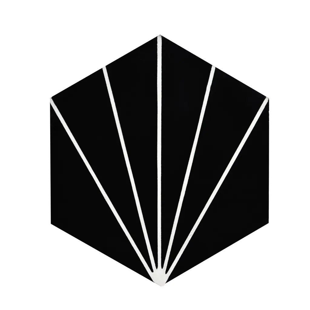 Menara collection is an authentic versatile hexagon cement tile. Its design will bring life to any part of the home. Its black with white lines colors will add a cool and energetic atmosphere. It is the perfect tile to show off your fun and classy side. · Features:· Handmade in Morocco· Decorative floor and wall tiles· Made of cement materials· Professional installation is recommended.· Tiles need to be sealed before and after grouting.· Eco-friendly· Indoor or outdoor use· Geometric pattern· When ordering a box, 12 tiles come included. Sample is just 1 tile.· 12 tiles per box, covering 4.44 square feet.· 2.3 tiles per square foot· Each tile measures 8 inches wide x 9 inches long· Story Behind the Art: "It's more than tile, it's art." That simple statement is what sets the craftsmanship of Moroccan Mosaic apart from the rest. Based in the small city of Sale, Moroccan Mosaic is a family business going back 4 generations. When Simo, the current head of the business graduated from university in New York, he had little interest in the family business. But on a return trip home, he saw that the business was not doing well and set about reviving it. One important change he made was introducing black, grey, and white designs to appeal to American and European customers. It worked. When he started, they employed 2 workers and now they have nearly 80 on staff. The workshop itself is fairly simple, and the techniques used to create the tiles are steeped in tradition. Some modern equipment is available, though the workers prefer to use the more rustic tools. The creative process is time intensive and done by hand, as Simo insists on no corners be cut or production be rushed. Environmentally responsible and resource efficient, no chemicals are used at any step. For example, colors used come from nature literally. Green comes from mint leaves, orange from orange peel, and black from charcoal. The tiles themselves are a simple mixture of cement, sand, and granite powder. Moroccan Mosaic hires only local workers, teaching them a valued skill as well as paying them fair wages. Simo's goals for his business are to share the tradition of gorgeous Moroccan tile, grow the business, and employ more and more workers .