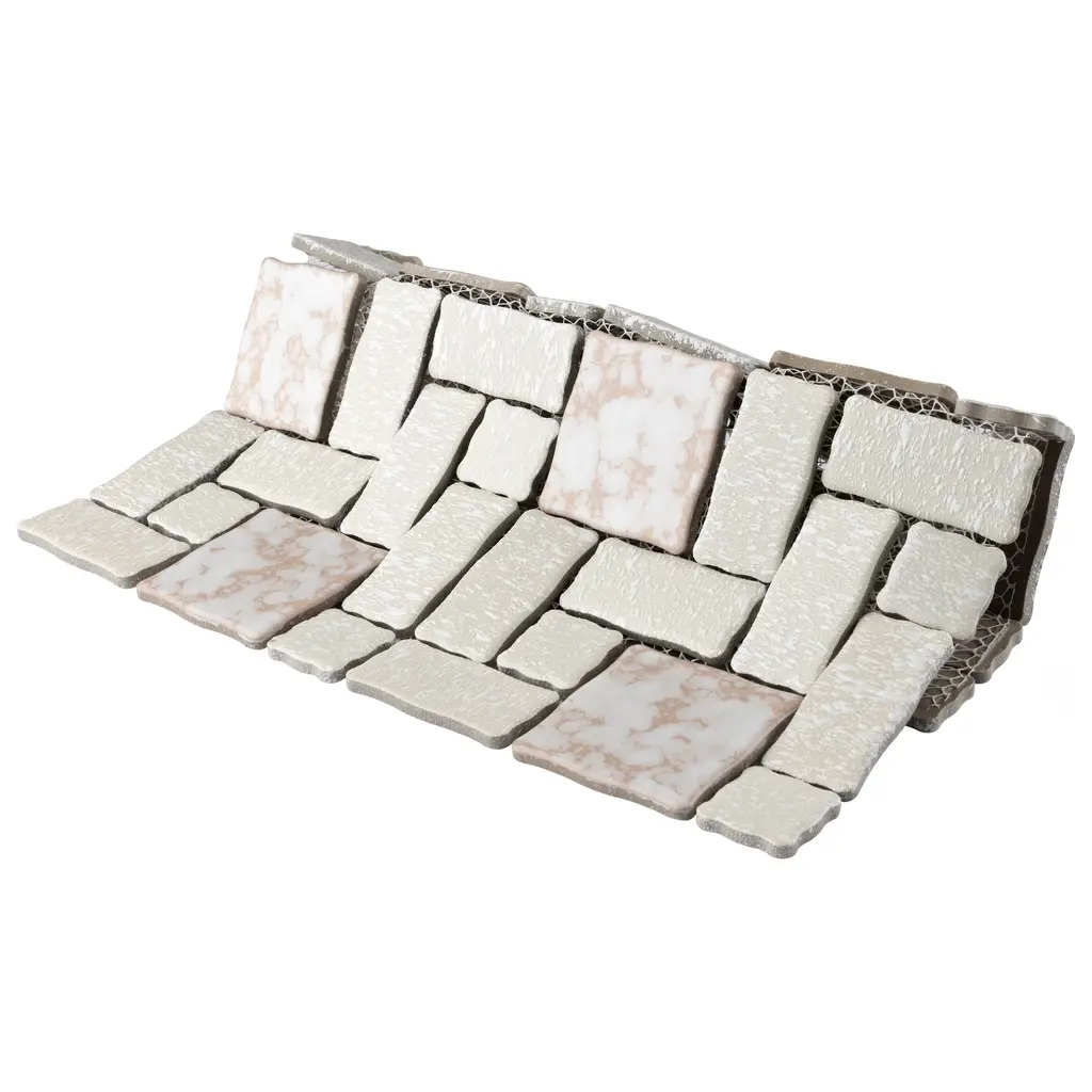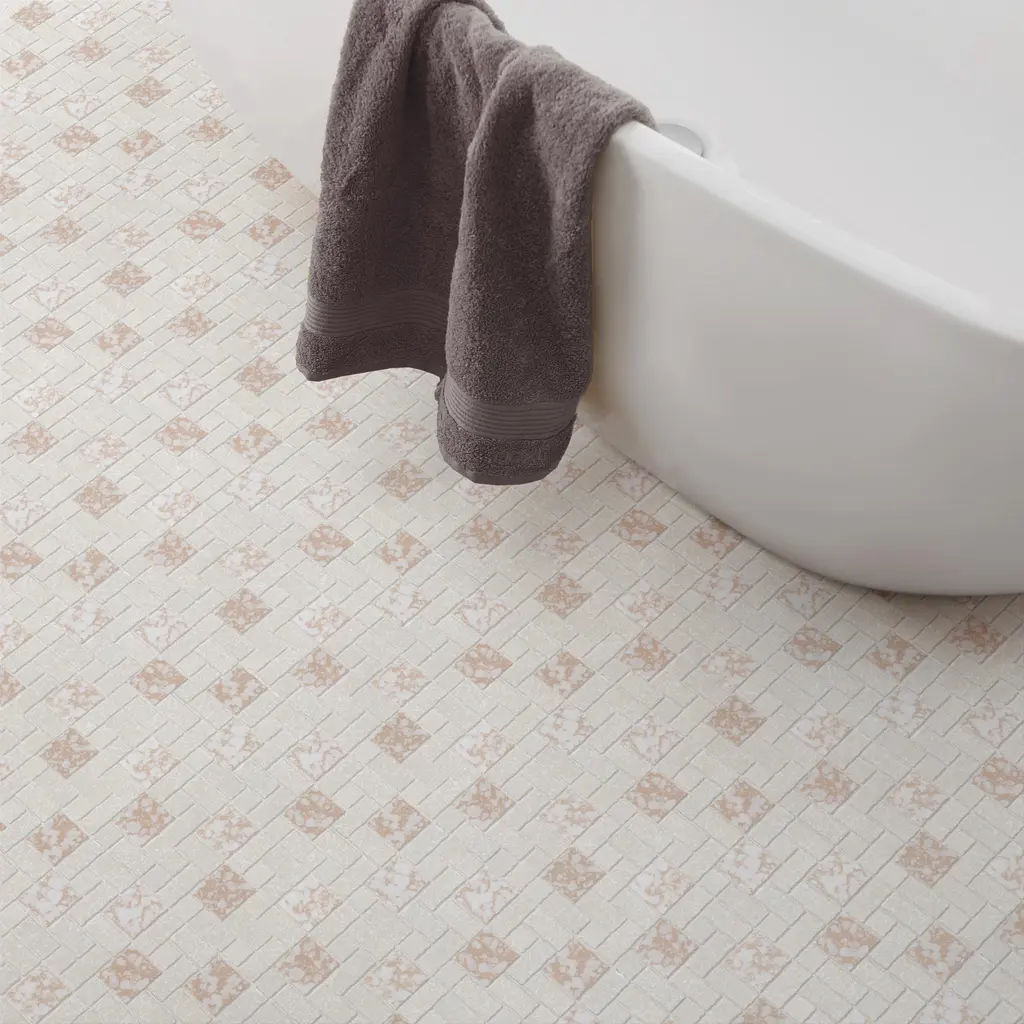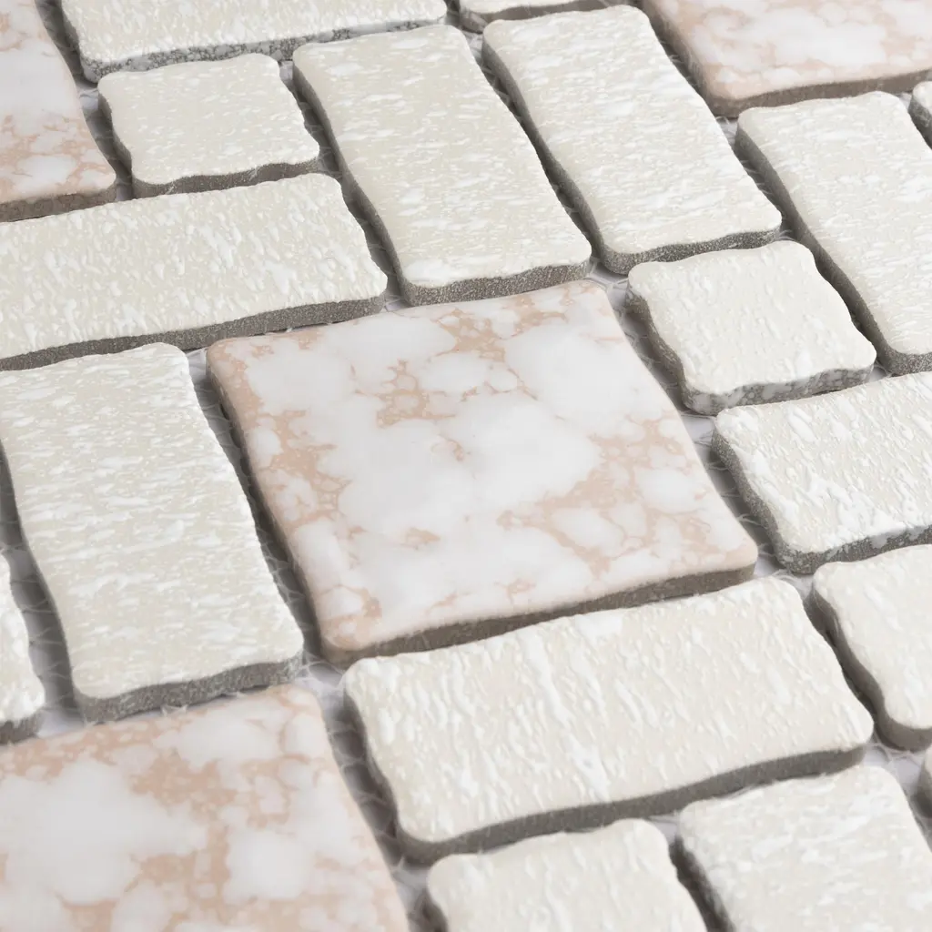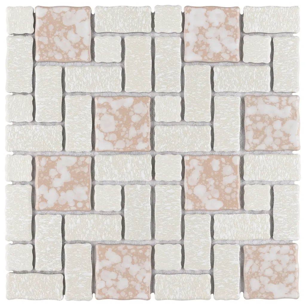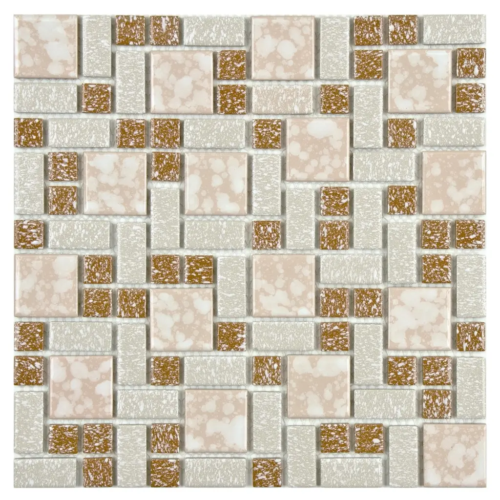 Our Academy Bone Porcelain Mosaic Tile is reminiscent of traditional, multi-texture and multi-color porcelain mosaic floor tile. Featuring a mottled finish and muted color palette, these tiles recreate a classic look with the durability and versatility of a modern tile. Use this tile virtually anywhere, due to its frost resistance, high slip resistance and P.E.I. rating of 4. 10.0 square feet, 10 pieces per case. Case weight is 20 lbs. Grade 1, first-quality porcelain tile for floor and wall use 11.88 in. width x 11.88 in. length x 0.19 in. thick mesh-mounted mosaic Glazed, mixed texture with a mixed finish and slight variation in tone PEI Rating IV has high resistance to abrasion and is suitable for heavy-duty residential and commercial kitchens, hotels, exhibition and sales rooms with some dirt conditions Impervious tiles have a water absorption of less than 0.5% for indoor and outdoor use and are frost resistant This tile has a COF wet rating greater than 0.60 to 0.79 which is considered skid resistant for indoor and outdoor use. This tile is ADA approved for slip resistance. Completely frost resistant for indoor or outdoor applications; use a latex-modified thinset for acceptable bond strength Please note: A sample of this product may be a partial piece cut from the full size tile in order to provide an affordable and convenient way for customers to judge the quality and finish of this item. Samples are not returnable.