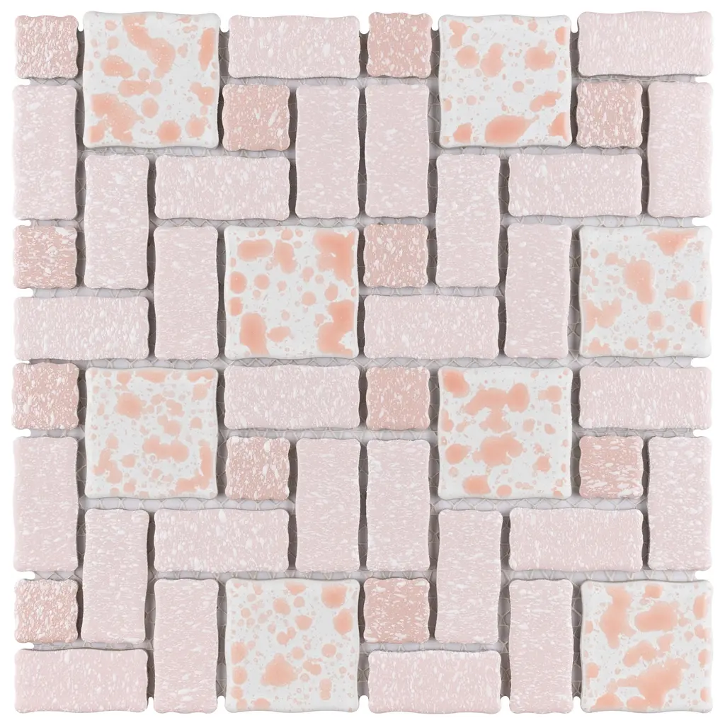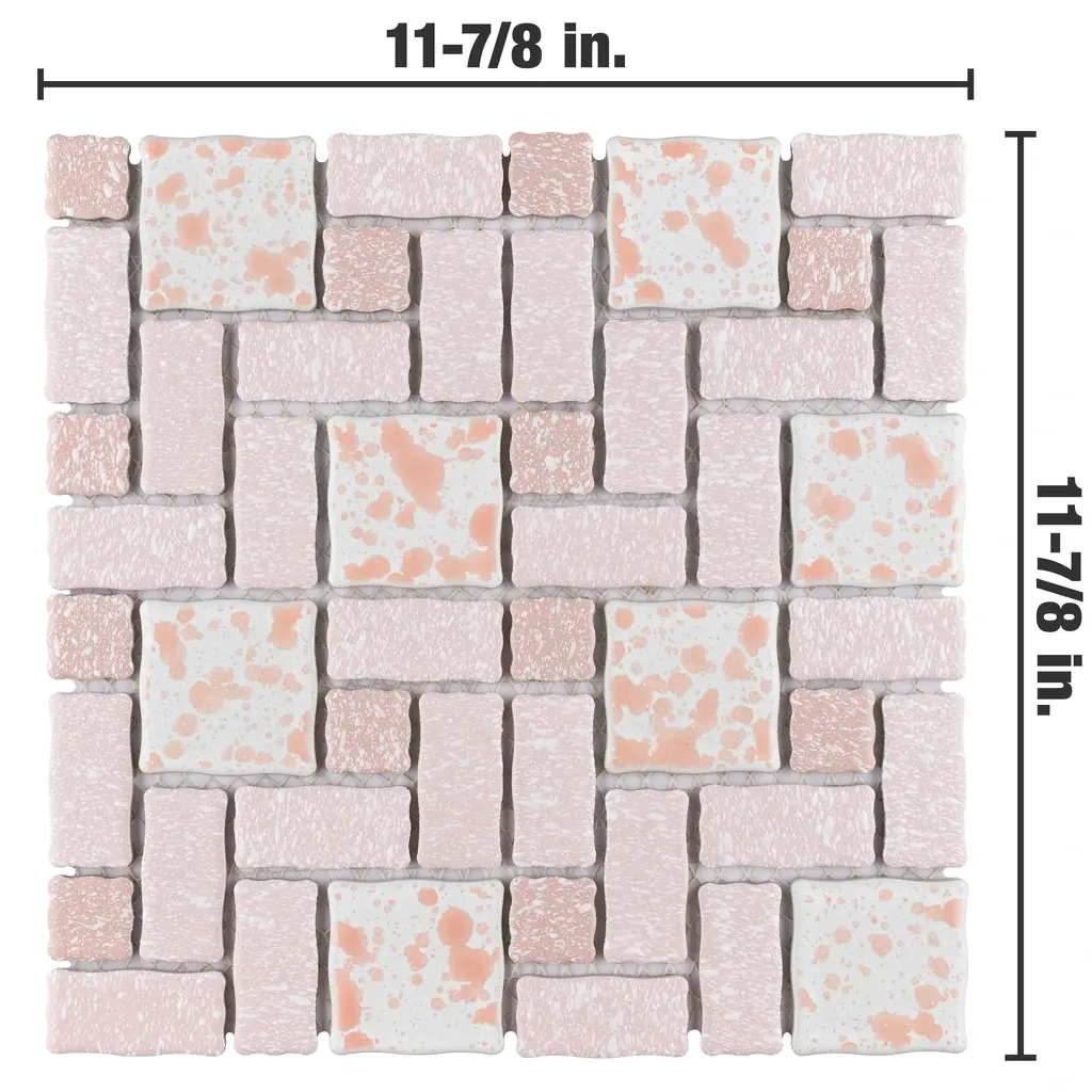 Our Academy Pink Porcelain Mosaic Tile is reminiscent of traditional, multi-texture and multi-color porcelain mosaic floor tile. Featuring a mottled finish and muted color palette, these tiles recreate a classic look with the durability and versatility of a modern tile. Use this tile virtually anywhere, due to its frost resistance, high slip resistance and P.E.I. rating of 4. 10.0 square feet, 10 pieces per case. Case weight is 20 lbs. Grade 1, first-quality porcelain tile for floor and wall use 11.88 in. width x 11.88 in. length x 0.19 in. thick mesh-mounted mosaic Glazed, mixed texture with a mixed finish and slight variation in tone PEI Rating IV has high resistance to abrasion and is suitable for heavy-duty residential and commercial kitchens, hotels, exhibition and sales rooms with some dirt conditions Impervious tiles have a water absorption of less than 0.5% for indoor and outdoor use and are frost resistant This tile has a COF wet rating greater than 0.60 to 0.79 which is considered skid resistant for indoor and outdoor use. This tile is ADA approved for slip resistance. Completely frost resistant for indoor or outdoor applications; use a latex-modified thinset for acceptable bond strength Please note: A sample of this product may be a partial piece cut from the full size tile in order to provide an affordable and convenient way for customers to judge the quality and finish of this item. Samples are not returnable.
