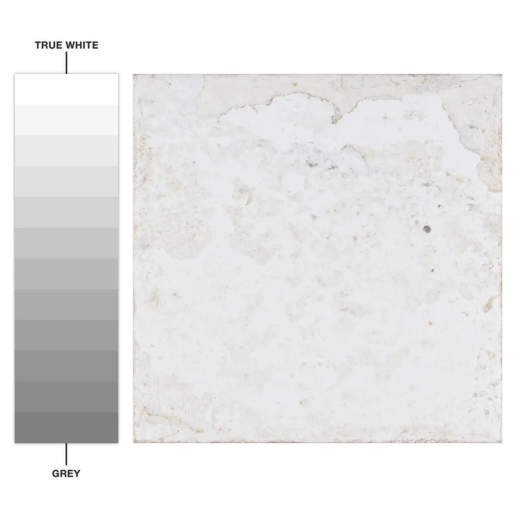 Offering a metal look, our Aevum White Ceramic Wall Tile features a slightly textured, mixed finish, providing decorative appeal that adapts to a variety of stylistic contexts. Containing 35 different print variations that are randomly distributed throughout each case, this white square tile offers a one-of-a-kind look. With its non-vitreous features, this tile is an ideal selection for indoor commercial and residential installations, including kitchens, bathrooms, backsplashes, showers, hallways and fireplace facades. This tile is a perfect choice on its own or paired with other products in the Aevum Collection. Tile is the better choice for your space! 11.0 square feet, 25 pieces per case. Case weight is 27.27 lbs. Grade 1, first-quality ceramic tile for wall use 7.88 in. width x 7.88 in. length x 0.25 in. thick Glazed, slightly textured finish with a mixed finish and moderate variation in tone PEI Rating 0 is suitable for wall use only Non-Vitreous tiles have water absorption of more than 7% for indoor use DCOF value is not available for this product. Please reference the PEI and MOHS rating for installation. Not frost resistant Please note: A sample of this product may be a partial piece cut from the full size tile in order to provide an affordable and convenient way for customers to judge the quality and finish of this item. Samples are not returnable.