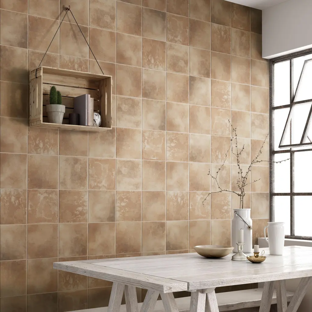 Offering a simplistic look, our Americana Boston East Porcelain Floor and Wall Tile features a medium textured, matte finish, providing decorative appeal that adapts to a variety of stylistic contexts. Containing 20 different print variations that are randomly distributed throughout each case, this brown square tile offers a one-of-a-kind look. With its impervious, frost-resistant features, this tile is an ideal selection for both indoor and outdoor residential installations, including kitchens, bathrooms, backsplashes, showers, hallways and fireplace facades. This tile is a perfect choice on its own or paired with other products in the Americana Collection. Tile is the better choice for your space! 11.0 square feet, 20 pieces per case. Case weight is 45.88 lbs. Grade 1, first-quality porcelain tile for floor and wall use 8.75 in. width x 8.75 in. length x 0.45 in. thick Glazed, medium textured finish with a low sheen and moderate variation in tone PEI Rating III is suitable for medium-duty residential floors including kitchens, halls, corridors, balconies, terraces and areas used more often with normal footwear and small amounts of dirt Impervious tiles have a water absorption of less than 0.5% for indoor and outdoor use and are frost resistant This tile is ADA approved for slip resistance with a DCOF value of 0.42 or higher. Completely frost resistant for indoor or outdoor applications; use a latex-modified thinset for acceptable bond strength Please note: Samples are not returnable