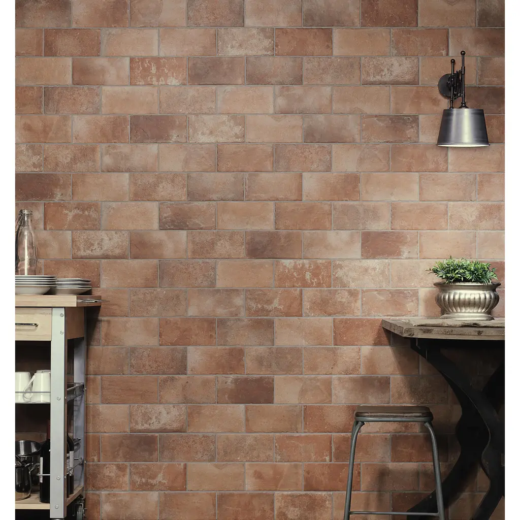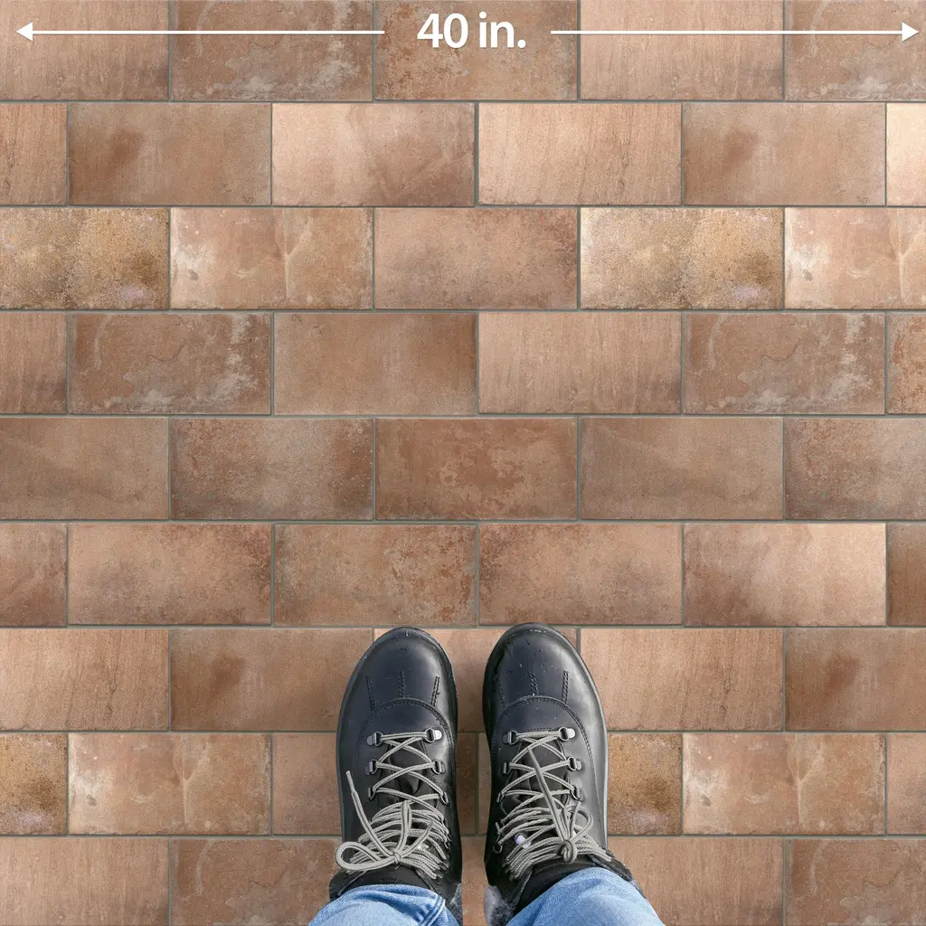 Replicating a terra cotta look, our Americana Boston North Porcelain Floor and Wall Tile features a medium textured, matte finish, providing decorative appeal that adapts to a variety of stylistic contexts. Containing 40 different print variations that are randomly distributed throughout each case, this brown rectangle tile offers a one-of-a-kind look. With its impervious, frost-resistant features, this tile is an ideal selection for both indoor and outdoor residential installations, including kitchens, bathrooms, backsplashes, showers, hallways and fireplace facades. This tile is a perfect choice on its own or paired with other products in the Americana Collection. Tile is the better choice for your space! 5.6 square feet, 20 pieces per case. Case weight is 23.15 lbs. Grade 1, first-quality porcelain tile for floor and wall use 4.38 in. width x 8.75 in. length x 0.35 in. thick Glazed, medium textured finish with a low sheen and moderate variation in tone PEI Rating III is suitable for medium-duty residential floors including kitchens, halls, corridors, balconies, terraces and areas used more often with normal footwear and small amounts of dirt Impervious tiles have a water absorption of less than 0.5% for indoor and outdoor use and are frost resistant This tile is ADA approved for slip resistance with a DCOF value of 0.42 or higher. Completely frost resistant for indoor or outdoor applications; use a latex-modified thinset for acceptable bond strength Please note: Samples are not returnable