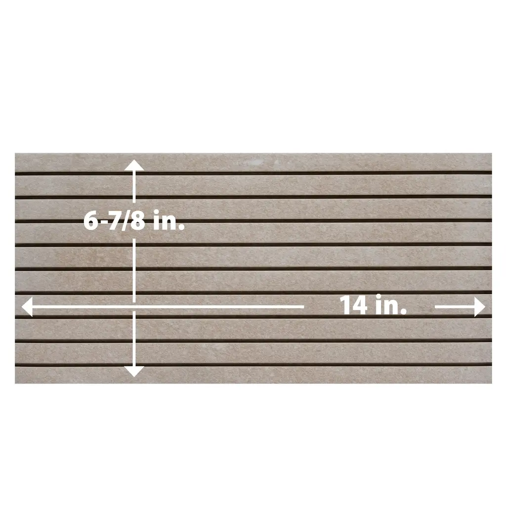 Offering a fluted look, our Americana Boston Strata Downtown Porcelain Floor and Wall Tile features a medium textured, matte finish, providing decorative appeal that adapts to a variety of stylistic contexts. Inspired by old American industrial cities, our Americana Strata subseries captures rustic charm with anti-slip porcelain, blending rich reds, tans, and aged whites in an updated fluted design to create a timeless, industrial feel for versatile indoor and outdoor spaces. Containing 20 different print variations that are randomly distributed throughout each case, this beige rectangle tile offers a one-of-a-kind look. With its impervious, frost-resistant features, this tile is an ideal selection for both indoor and outdoor commercial and residential installations, including kitchens, bathrooms, backsplashes, showers, hallways, entryways, patios and fireplace facades. This tile is a perfect choice on its own or paired with other products in the Americana Collection. Tile is the better choice for your space! 11.2 square feet, 16 pieces per case. Case weight is 50.09 lbs. Grade 1, first-quality porcelain tile for floor and wall use 6.88 in. width x 14 in. length x 0.39 in. thick Glazed, medium textured finish with a low sheen and moderate variation in tone PEI Rating IV has high resistance to abrasion and is suitable for heavy-duty residential and commercial kitchens, hotels, exhibition and sales rooms with some dirt conditions Impervious tiles have a water absorption of less than 0.5% for indoor and outdoor use and are frost resistant This tile is ADA approved for slip resistance with a DCOF value of 0.42 or higher. Completely frost resistant for indoor or outdoor applications; use a latex-modified thinset for acceptable bond strength Please note: A sample of this product may be a partial piece cut from the full size tile in order to provide an affordable and convenient way for customers to judge the quality and finish of this item. Samples are not returnable