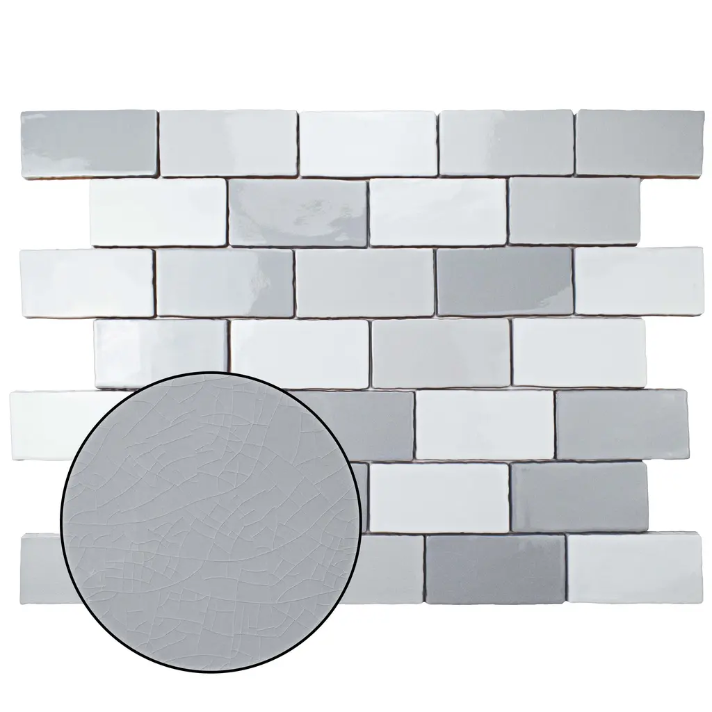 Bring unique vintage accents to your home with the Antic Craquelle Gris Mix 3 in. x 6 in. Ceramic Subway Wall Tile. This high sheen tile features a crackle glaze which adds subtle appeal. The edges of this tile are not straight, giving each piece a handmade feel. The tile color mix ranges from cool light greys to soft whites and medium greys, for a monochromatic overtone. Receiving approximately 1-1/3 square foot (10-12 tiles) of each color per pack, it is easy to create a structured coloration or random appearance. Use this subway tile alongside many different products, including those in the Antic series. It is necessary that you seal this tile before grouting to prevent the absorption of staining agents over time.