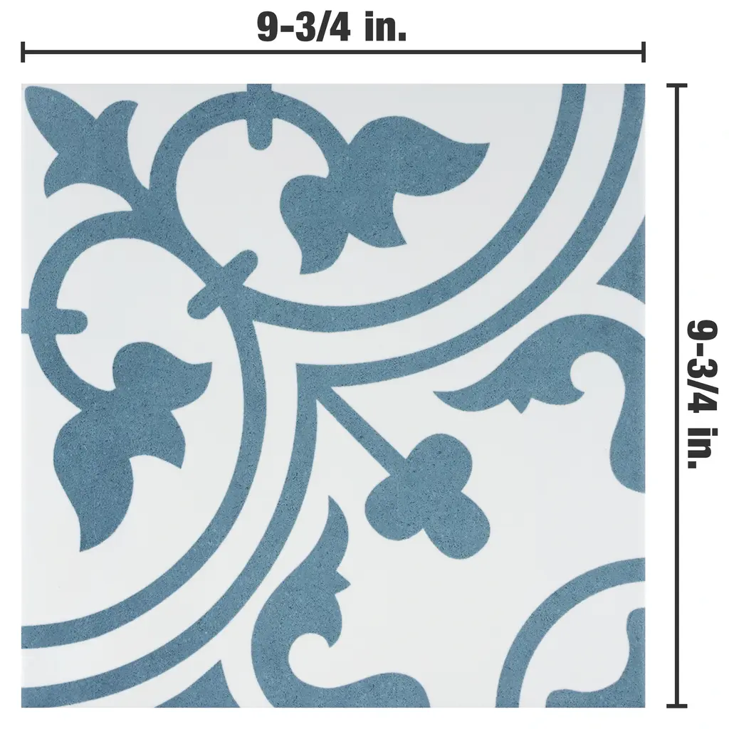Capturing the appearance of an encaustic look, our Arte Cloud Porcelain Floor and Wall Tile features a smooth, satin finish, providing decorative appeal that adapts to a variety of stylistic contexts. With its impervious, frost-resistant features, this white square tile is an ideal selection for a variety of spaces including indoor and outdoor commercial and residential installations, kitchens, bathrooms, backsplashes, showers, hallways, entryways, patios, pools and fireplace facades. Discover more products from the Merola Tile Arte Collection to complete your design. To ensure optimal results, please consult with your installer and review the product specifications to confirm that this tile meets the specific needs of your project. 10.88 square feet, 16 pieces per case. Case weight is 43.68 lbs. Grade 1, first-quality porcelain tile for floor and wall use 9.75 in. width x 9.75 in. length x 0.4 in. thick Glazed, smooth finish with a medium sheen and uniform appearance in tone PEI Rating IV has high resistance to abrasion and is suitable for heavy-duty residential and commercial kitchens, hotels, exhibition and sales rooms with some dirt conditions Impervious tiles have a water absorption of less than 0.5% for indoor and outdoor use and are frost resistant This tile is ADA approved for slip resistance with a DCOF value of 0.42 or higher. Completely frost resistant for indoor or outdoor applications; use a latex-modified thinset for acceptable bond strength Please note: A sample of this product may be a partial piece cut from the full size tile in order to provide an affordable and convenient way for customers to judge the quality and finish of this item. Samples are not returnable.