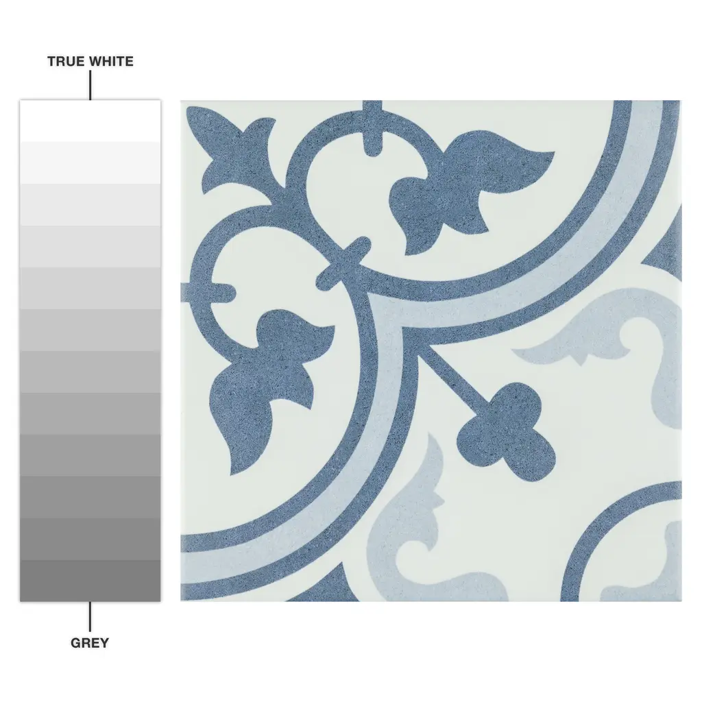Capturing the appearance of an encaustic look, our Arte Crystal Porcelain Floor and Wall Tile features a smooth, satin finish, providing decorative appeal that adapts to a variety of stylistic contexts. With its impervious, frost-resistant features, this white square tile is an ideal selection for a variety of spaces including indoor and outdoor commercial and residential installations, kitchens, bathrooms, backsplashes, showers, hallways, entryways, patios, pools and fireplace facades. Discover more products from the Merola Tile Arte Collection to complete your design. To ensure optimal results, please consult with your installer and review the product specifications to confirm that this tile meets the specific needs of your project. 10.88 square feet, 16 pieces per case. Case weight is 43.68 lbs. Grade 1, first-quality porcelain tile for floor and wall use 9.75 in. width x 9.75 in. length x 0.4 in. thick Glazed, smooth finish with a medium sheen and uniform appearance in tone PEI Rating IV has high resistance to abrasion and is suitable for heavy-duty residential and commercial kitchens, hotels, exhibition and sales rooms with some dirt conditions Impervious tiles have a water absorption of less than 0.5% for indoor and outdoor use and are frost resistant This tile is ADA approved for slip resistance with a DCOF value of 0.42 or higher. Completely frost resistant for indoor or outdoor applications; use a latex-modified thinset for acceptable bond strength Please note: A sample of this product may be a partial piece cut from the full size tile in order to provide an affordable and convenient way for customers to judge the quality and finish of this item. Samples are not returnable.