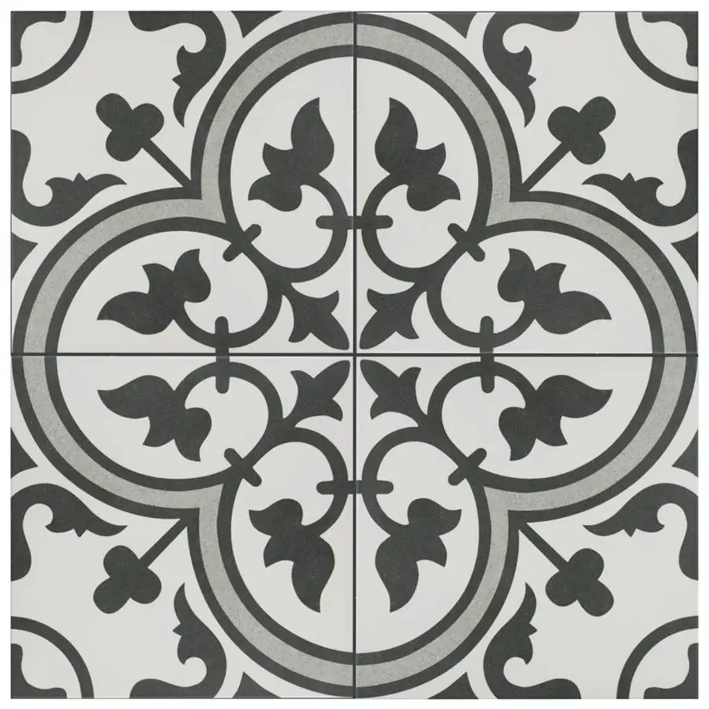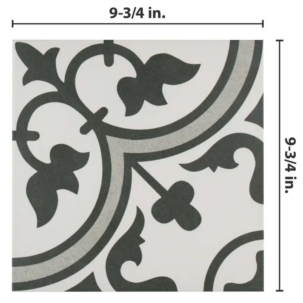 Merola Tile Arte Grey Encaustic 9.75" X 9.75" Porcelain Floor And Wall Tile - Sample Swatch