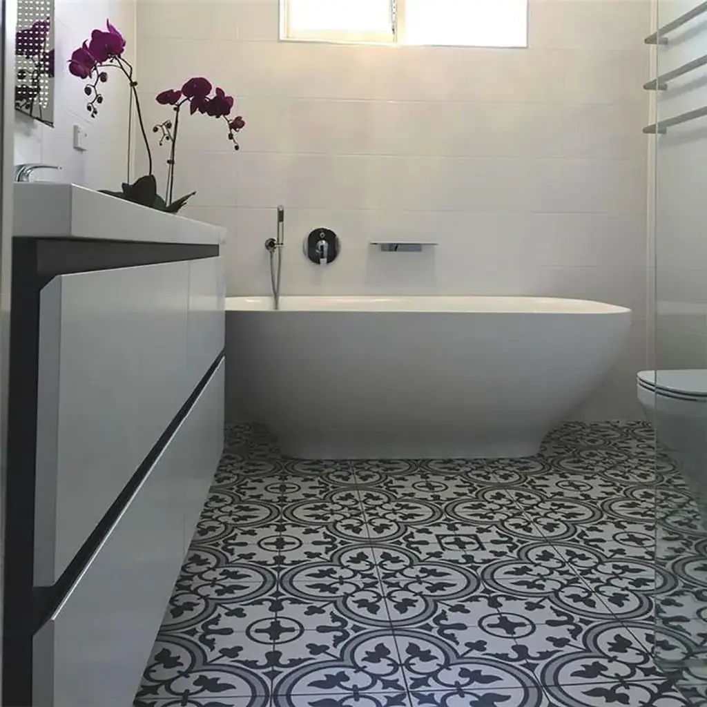 Capturing the appearance of an encaustic look, our Arte Grey Porcelain Floor and Wall Tile features a slightly textured, matte finish, providing decorative appeal that adapts to a variety of stylistic contexts. With its impervious, frost-resistant features, this white square tile is an ideal selection for a variety of spaces including indoor and outdoor residential installations, kitchens, bathrooms, backsplashes, showers, hallways, pools and fireplace facades. This tile is a perfect choice on its own or with other products in the Merola Tile, Arte Collection. To ensure optimal results, please consult with your installer and review the product specifications to confirm that this tile meets the specific needs of your project.