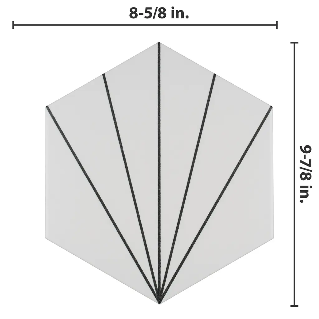 Merola Tile Aster Hex Blanco 8-5/8" X 9-7/8" Porcelain Floor And Wall Tile - Sample Swatch - White/black