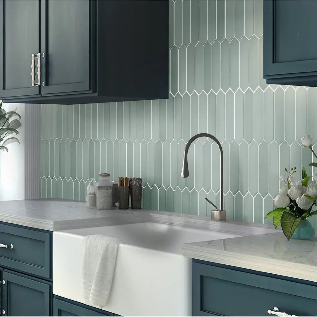 Offering a brick look, our Biarritz Green Ceramic Wall Tile features a smooth, mixed finish, providing decorative appeal that adapts to a variety of stylistic contexts. Containing 12 different print variations that are randomly distributed throughout each case, this green rectangle tile offers a one-of-a-kind look. With its non-vitreous features, this tile is an ideal selection for indoor commercial and residential installations, including kitchens, bathrooms, backsplashes, showers, hallways and fireplace facades. This tile is a perfect choice on its own or paired with other products in the Biarritz Collection. Tile is the better choice for your space! 5.72 square feet, 22 pieces per case. Case weight is 14.3 lbs. Grade 1, first-quality ceramic tile for wall use 3 in. width x 12 in. length x 0.38 in. thick Glazed, smooth finish with a mixed finish and slight variation in tone PEI Rating 0 is suitable for wall use only Non-Vitreous tiles have water absorption of more than 7% for indoor use DCOF value is not available for this product. Please reference the PEI and MOHS rating for installation. Not frost resistant Please note: A sample of this product may be a partial piece cut from the full size tile in order to provide an affordable and convenient way for customers to judge the quality and finish of this item. Samples are not returnable.