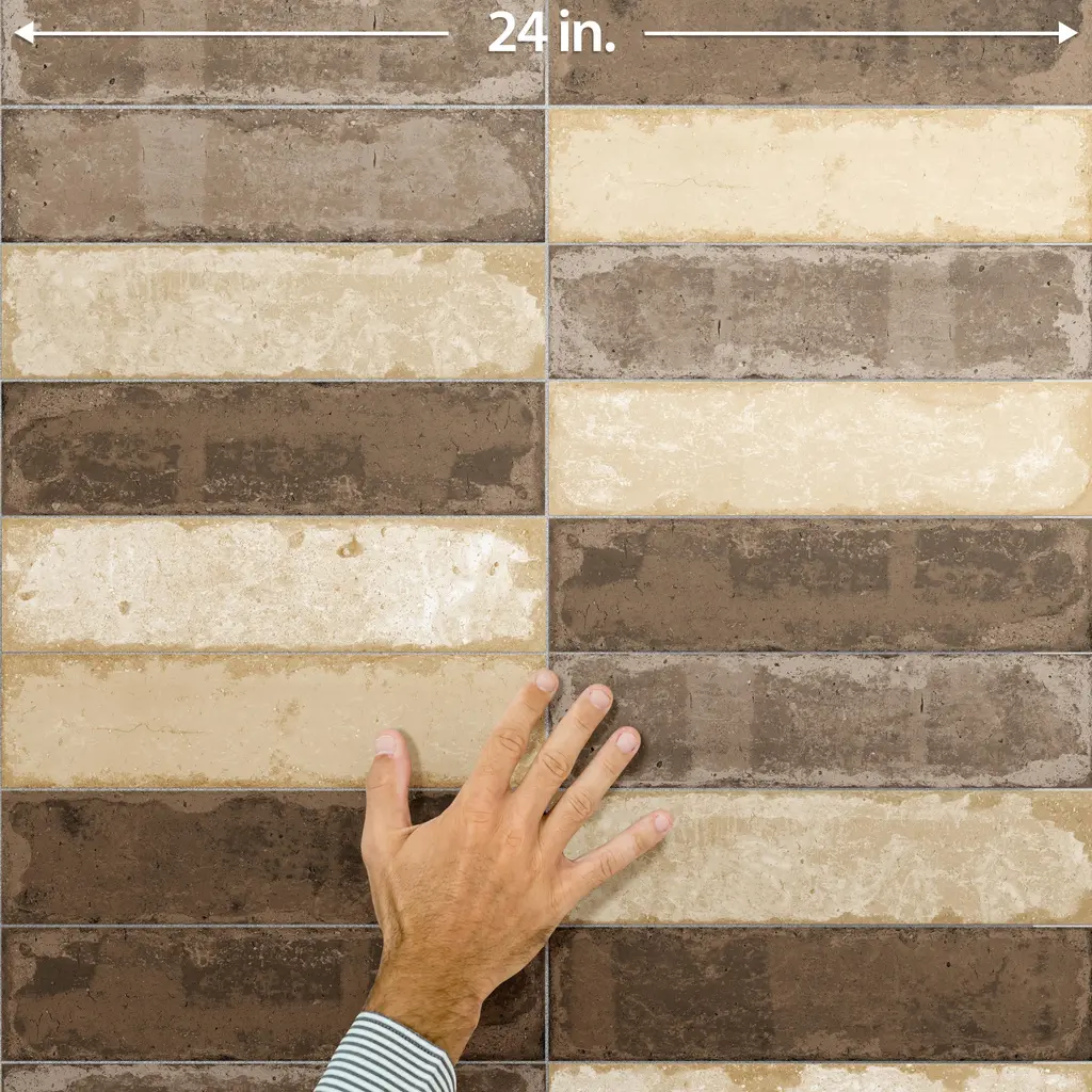 Inspired by a rustic look, our Brickyard Beige Porcelain Floor and Wall Tile features a medium textured, matte finish, providing decorative appeal that adapts to a variety of stylistic contexts. Containing 100 different print variations that are randomly distributed throughout each case, this beige rectangle tile offers a one-of-a-kind look. With its impervious, frost-resistant features, this tile is an ideal selection for both indoor and outdoor residential installations, including kitchens, bathrooms, backsplashes, showers, hallways and fireplace facades. This tile is a perfect choice on its own or paired with other products in the Brickyard Collection. Tile is the better choice for your space! 12.48 square feet, 48 pieces per case. Case weight is 43.2 lbs. Grade 1, first-quality porcelain tile for floor and wall use 3 in. width x 11.75 in. length x 0.35 in. thick Glazed, medium textured finish with a low sheen and substantial variation in tone PEI Rating III is suitable for medium-duty residential floors including kitchens, halls, corridors, balconies, terraces and areas used more often with normal footwear and small amounts of dirt Impervious tiles have a water absorption of less than 0.5% for indoor and outdoor use and are frost resistant This tile is ADA approved for slip resistance with a DCOF value of 0.42 or higher. Completely frost resistant for indoor or outdoor applications; use a latex-modified thinset for acceptable bond strength Please note: A sample of this product may be a partial piece cut from the full size tile in order to provide an affordable and convenient way for customers to judge the quality and finish of this item. Samples are not returnable.