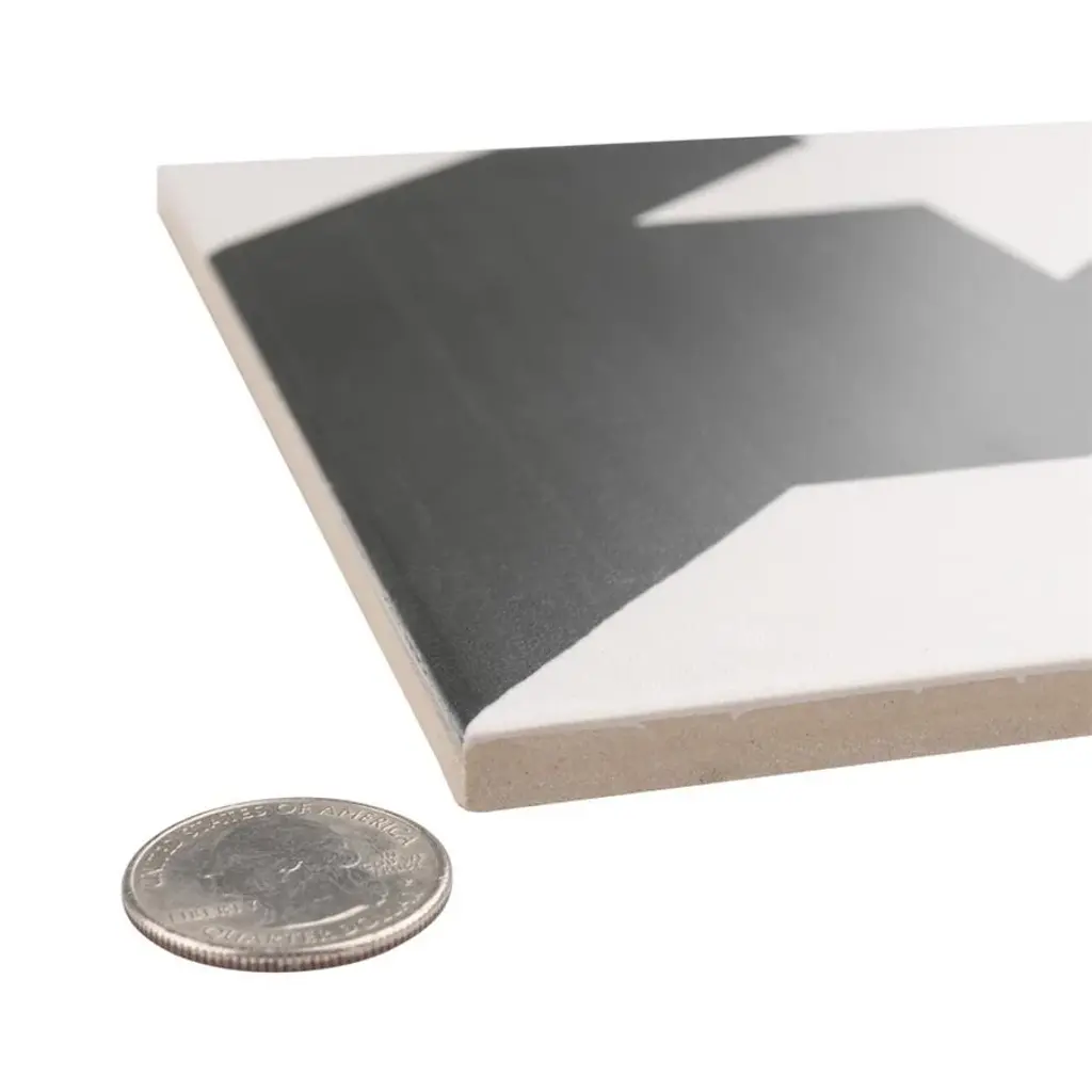 Capturing the appearance of a patterned look, our Caprice Tweed Black and White Porcelain Floor and Wall Tile features a smooth, matte finish, providing decorative appeal that adapts to a variety of stylistic contexts. With its impervious, frost-resistant features, this black square tile is an ideal selection for both indoor and outdoor residential installations, including kitchens, bathrooms, backsplashes, showers, hallways and fireplace facades. This tile is a perfect choice on its own or paired with other products in the Caprice Collection. Tile is the better choice for your space! 11.25 square feet, 25 pieces per case. Case weight is 42.35 lbs. Grade 1, first-quality porcelain tile for floor and wall use 7.88 in. width x 7.88 in. length x 0.34 in. thick Glazed, smooth finish with a low sheen and slight variation in tone PEI Rating III is suitable for medium-duty residential floors including kitchens, halls, corridors, balconies, terraces and areas used more often with normal footwear and small amounts of dirt Impervious tiles have a water absorption of less than 0.5% for indoor and outdoor use and are frost resistant This tile is ADA approved for slip resistance with a DCOF value of 0.42 or higher. Completely frost resistant for indoor or outdoor applications; use a latex-modified thinset for acceptable bond strength Please note: A sample of this product may be a partial piece cut from the full size tile in order to provide an affordable and convenient way for customers to judge the quality and finish of this item. Samples are not returnable.