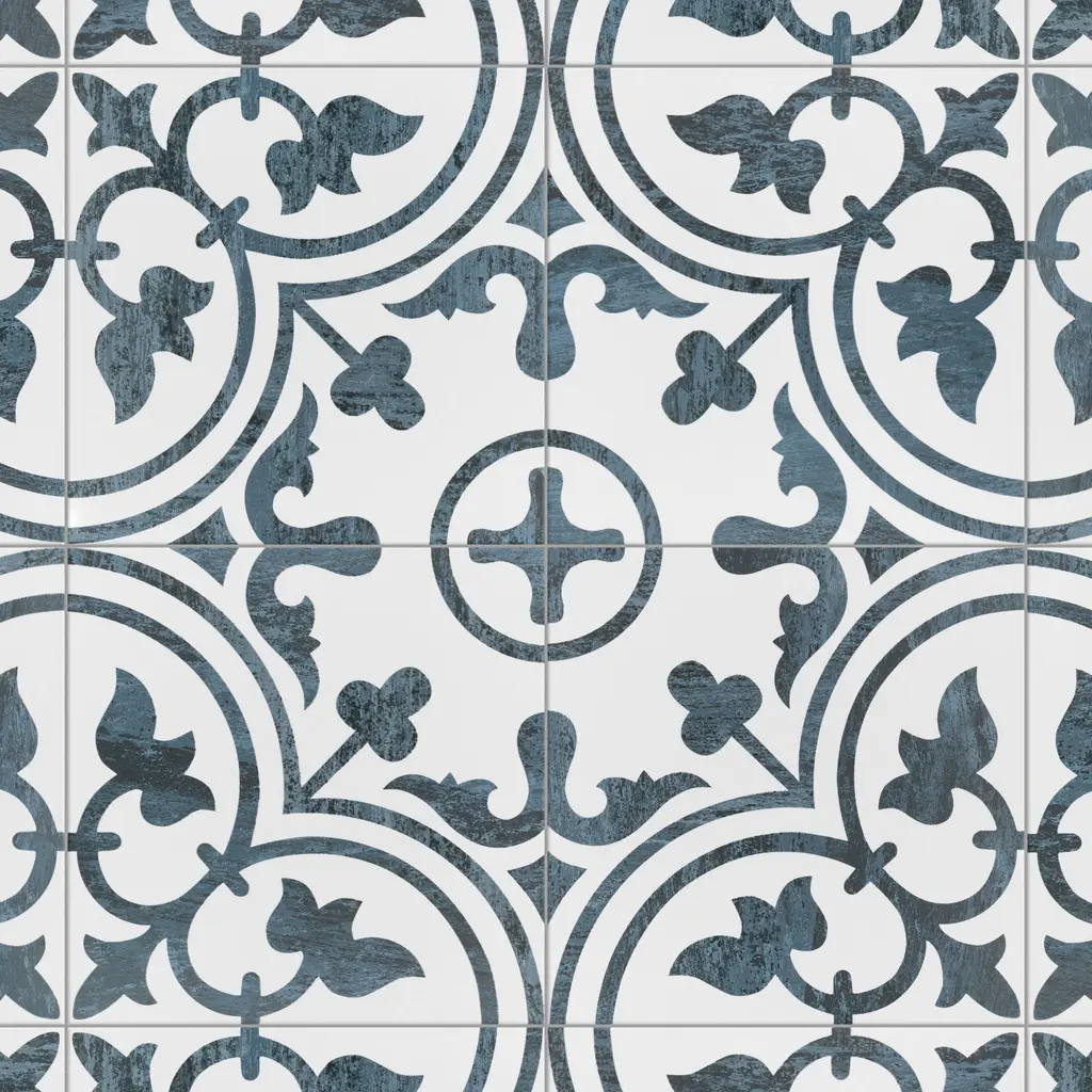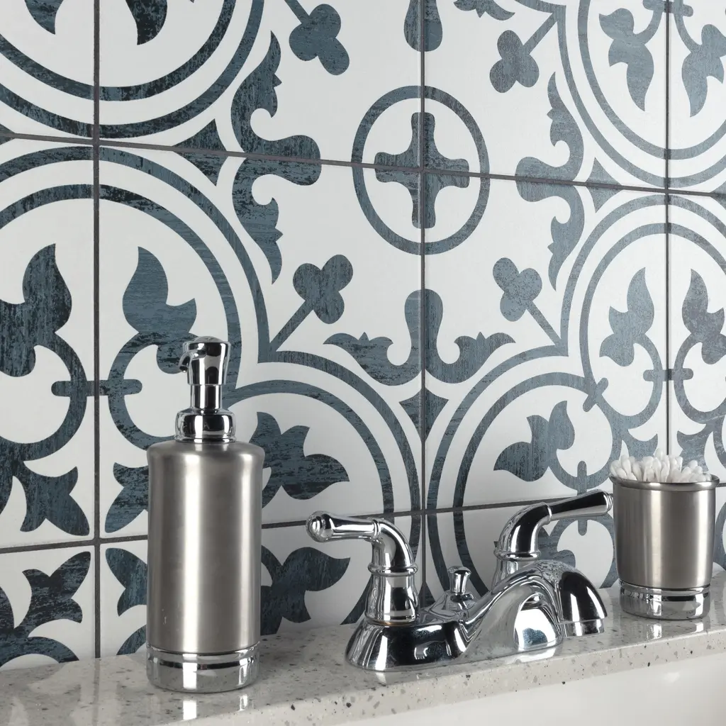 Capturing the appearance of an encaustic look, our Cassis Arte Black Porcelain Floor and Wall Tile features a mixed textured finish, providing decorative appeal that adapts to a variety of stylistic contexts. Containing 23 different print variations that are randomly distributed throughout each case, this white square tile offers a one-of-a-kind look. With its impervious, frost-resistant features, this tile is an ideal selection for a variety of spaces including indoor and outdoor residential installations, kitchens, bathrooms, backsplashes, showers, hallways, pools and fireplace facades. This tile is a perfect choice on its own or with other products in the Merola Tile, Cassis Collection. To ensure optimal results, please consult with your installer and review the product specifications to confirm that this tile meets the specific needs of your project.