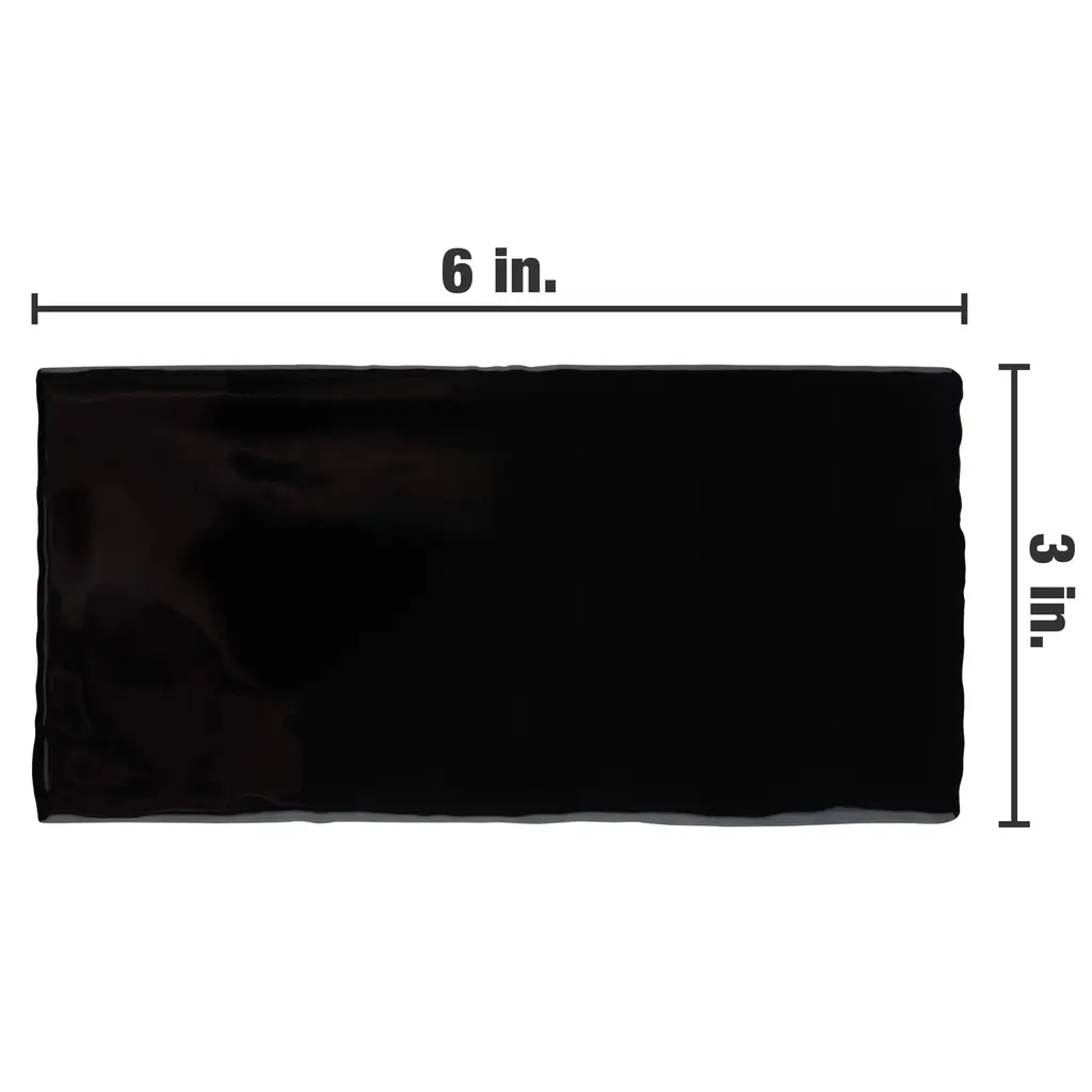 Merola Tile Castillo Black 3" X 6" Ceramic Wall Tile - Sample Swatch