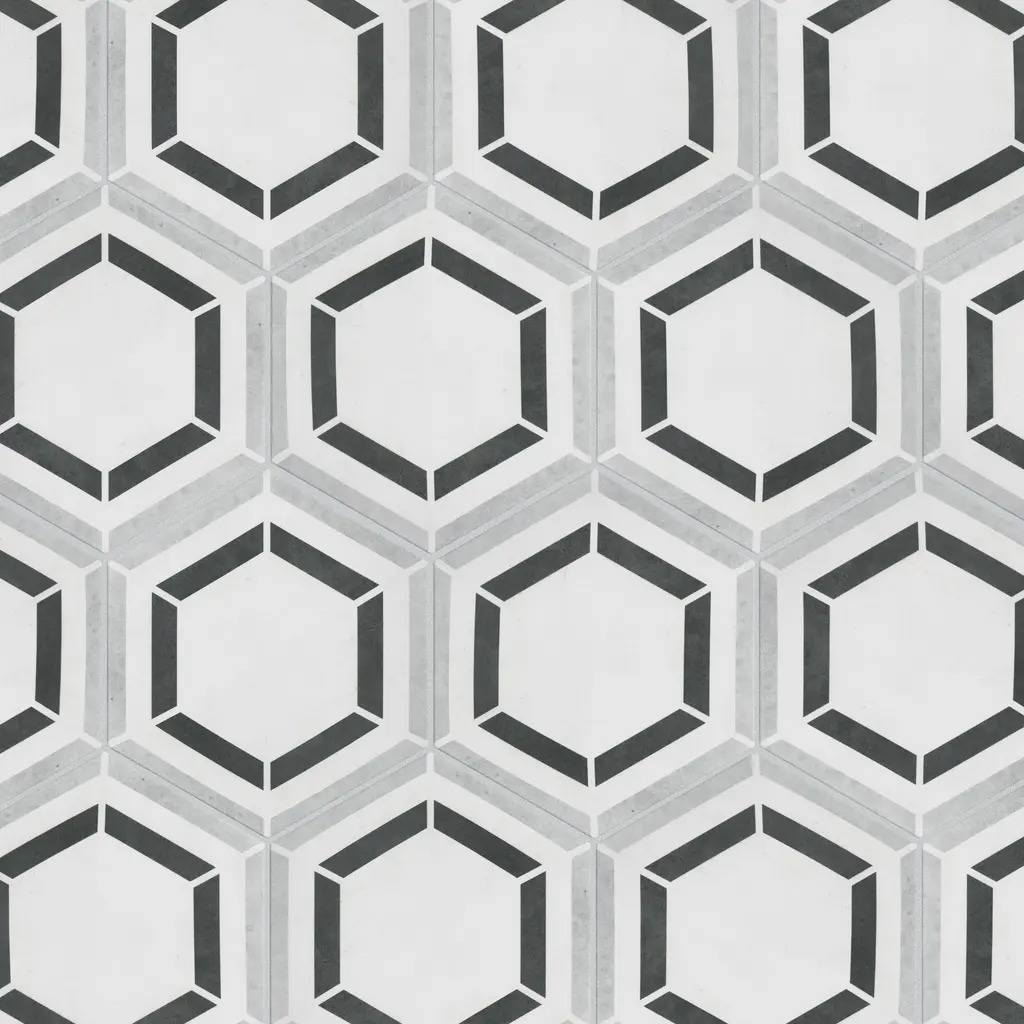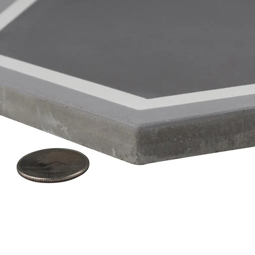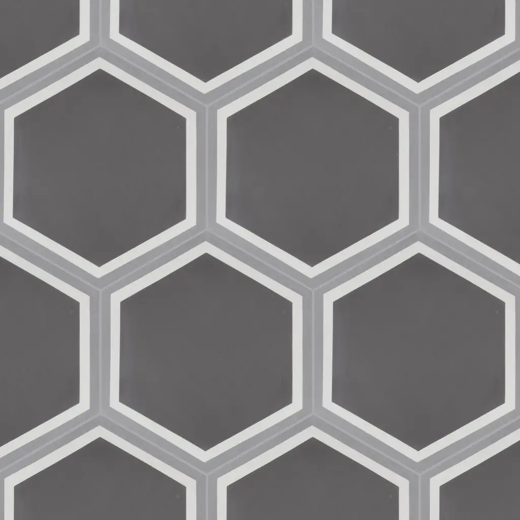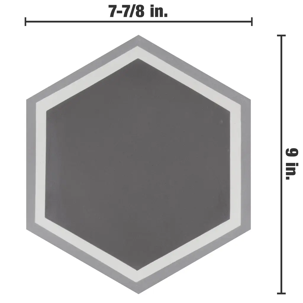 Capturing the appearance of an encaustic look, our Cemento Hex Holland Strait Cement Floor and Wall Tile features a smooth, matte finish, providing decorative appeal that adapts to a variety of stylistic contexts. With its non-vitreous features, this gray hexagon tile is an ideal selection for indoor commercial and residential installations, including kitchens, bathrooms, backsplashes, showers, hallways, entryways and fireplace facades. This tile is a perfect choice on its own or paired with other products in the Cemento Collection. Tile is the better choice for your space! 4.56 square feet, 12 pieces per case. Case weight is 32.04 lbs. Grade 1, first-quality cement tile for floor and wall use 7.88 in. width x 9 in. length x 0.63 in. thick Unglazed, smooth finish with a low sheen and slight variation in tone PEI Rating IV has high resistance to abrasion and is suitable for heavy-duty residential and commercial kitchens, hotels, exhibition and sales rooms with some dirt conditions Non-Vitreous tiles have water absorption of more than 7% for indoor use This tile is ADA approved for slip resistance with a DCOF value of 0.42 or higher. Not frost resistant Please note: A sample of this product may be a partial piece cut from the full size tile in order to provide an affordable and convenient way for customers to judge the quality and finish of this item. Samples are not returnable.