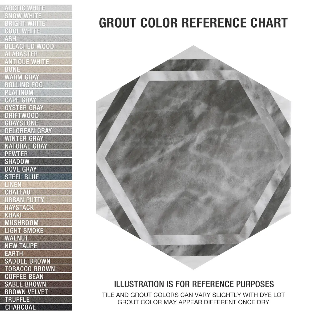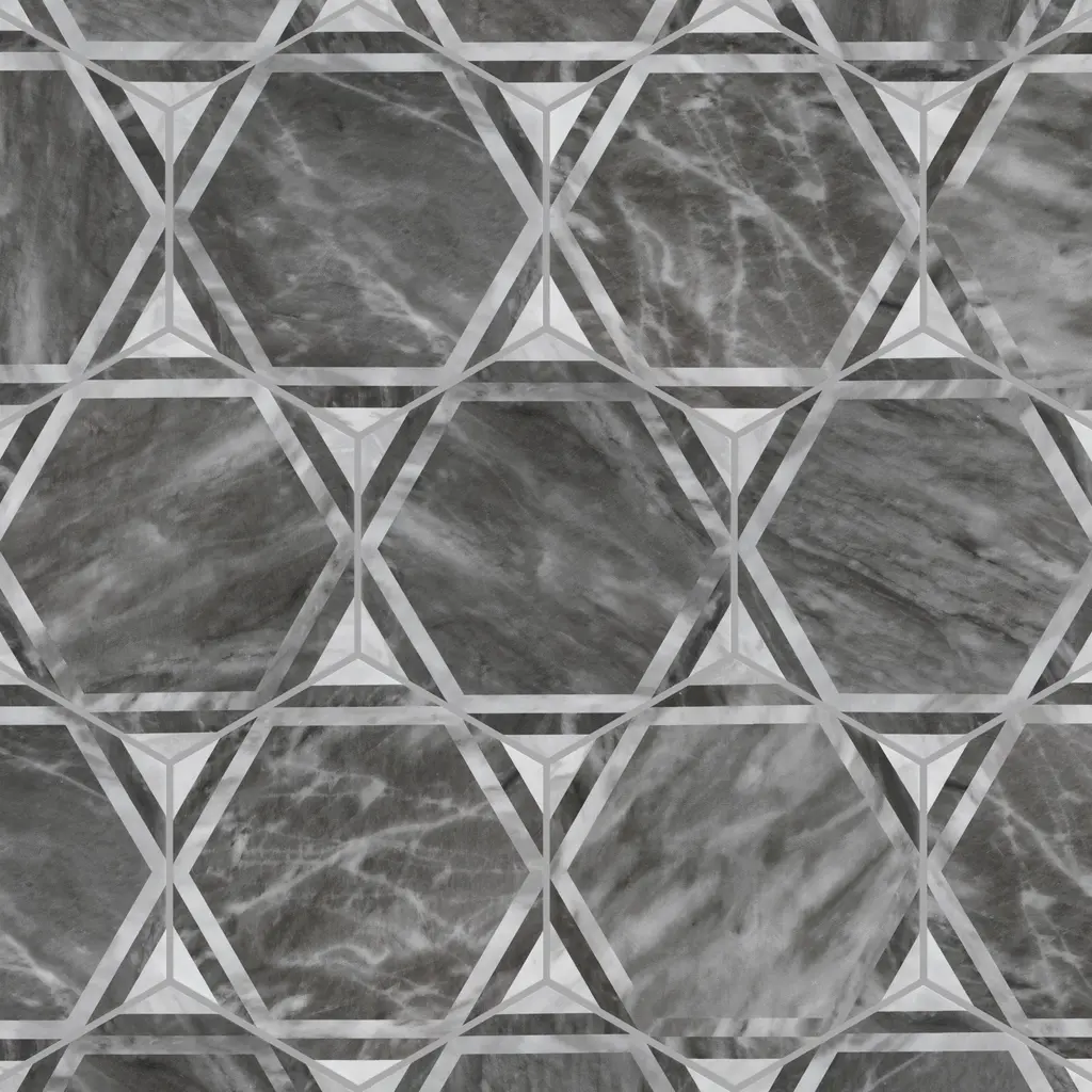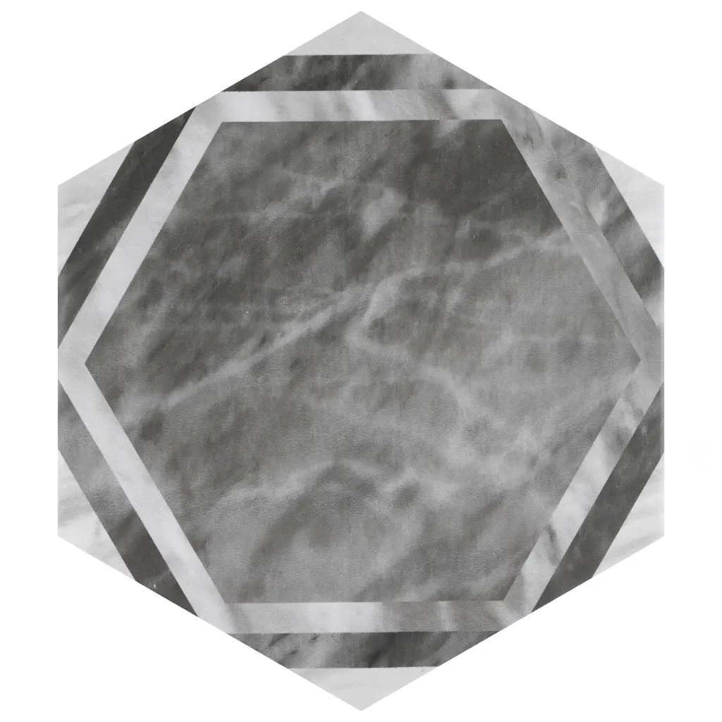 Emulating the timeless beauty of marble stone in an easy to maintain porcelain material, our Classico Bardiglio Hex Dimension Dark Porcelain Floor and Wall Tile, brings functional sophistication into any space. This matte hexagon tile features alternating grey and black framing patterns with light grey veining and striations set on a dark grey base glaze. This innovative and sophisticated display of geometric design is visually appealing and versatile and adapts to any stylistic context. Its impervious and frost-resistant features make it an ideal choice for indoor and outdoor installations including kitchens, bathrooms, backsplashes, showers, entryways, and patios. This tile is a perfect choice on its own or coordinated with other products in the Classico Bardiglio series. Tile is the better choice for your space. This tile is made from natural ingredients, making it a healthy choice as it is free from allergens, VOCs, formaldehyde, and PVC. 7.5 square feet, 25 pieces per case. Case weight is 28.99 lbs. Grade 1, first-quality porcelain tile for floor and wall use 7 in. width x 8 in. length x 0.34 in. thick Glazed, slightly textured finish with a medium sheen and slight variation in tone PEI Rating III is suitable for medium-duty residential floors including kitchens, halls, corridors, balconies, terraces and areas used more often with normal footwear and small amounts of dirt Impervious tiles have a water absorption of less than 0.5% for indoor and outdoor use and are frost resistant This tile is ADA approved for slip resistance with a DCOF value of 0.42 or higher. Completely frost resistant for indoor or outdoor applications; use a latex-modified thinset for acceptable bond strength Please note: A sample of this product may be a partial piece cut from the full size tile in order to provide an affordable and convenient way for customers to judge the quality and finish of this item. Samples are not returnable.