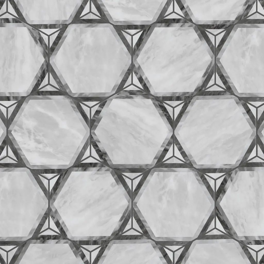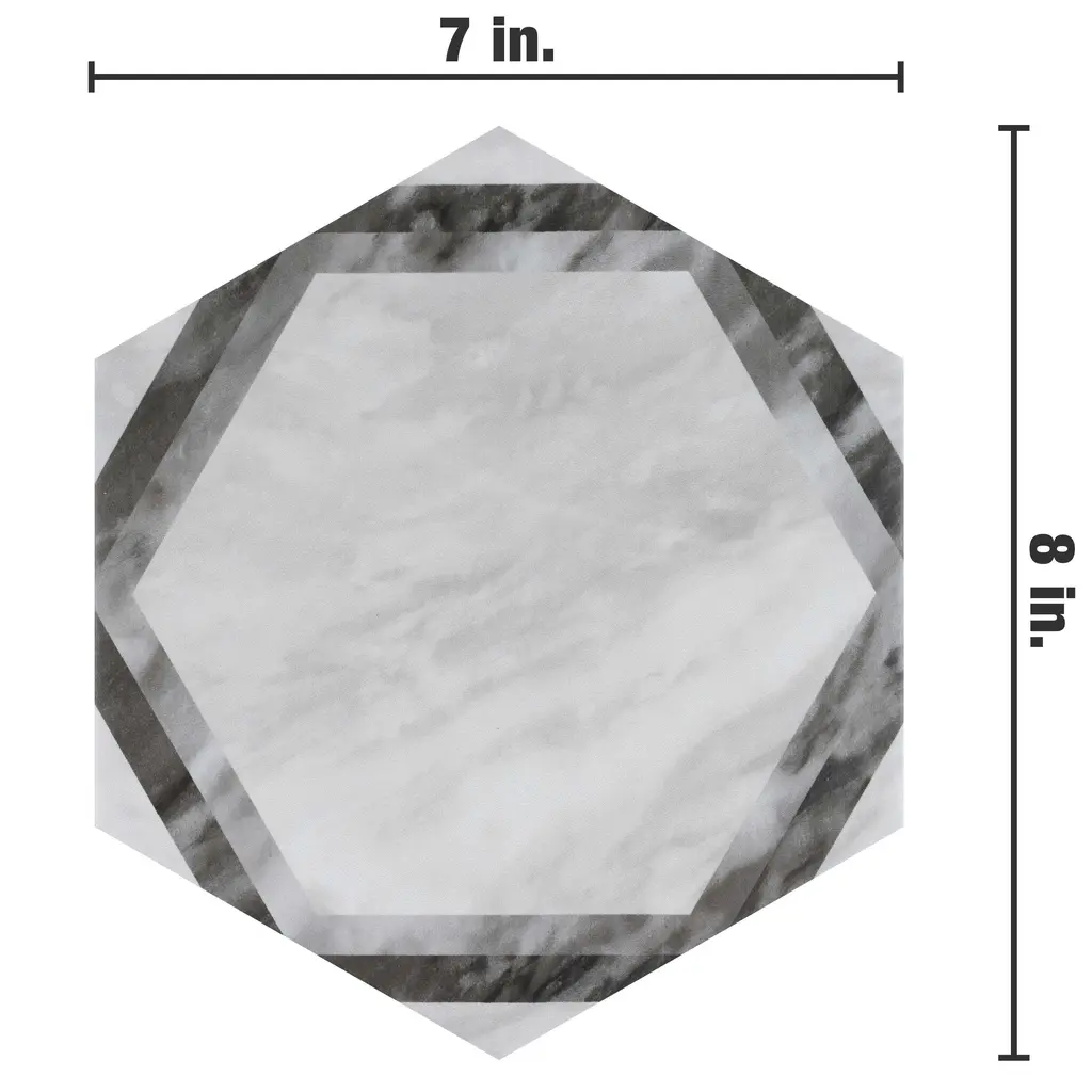 Emulating the timeless beauty of marble stone in an easy to maintain porcelain material, our Classico Bardiglio Hex Dimension Light Porcelain Floor and Wall Tile, brings functional sophistication into any space. This matte hexagon tile features alternating grey and black framing patterns with grey veining and striations set on a light grey base glaze. This innovative and sophisticated display of geometric design is visually appealing and versatile and adapts to any stylistic context. Its impervious and frost-resistant features make it an ideal choice for indoor and outdoor installations including kitchens, bathrooms, backsplashes, showers, entryways, and patios. This tile is a perfect choice on its own or coordinated with other products in the Classico Bardiglio series. Tile is the better choice for your space. This tile is made from natural ingredients, making it a healthy choice as it is free from allergens, VOCs, formaldehyde, and PVC. 7.5 square feet, 25 pieces per case. Case weight is 28.99 lbs. Grade 1, first-quality porcelain tile for floor and wall use 7 in. width x 8 in. length x 0.34 in. thick Glazed, slightly textured finish with a medium sheen and slight variation in tone PEI Rating III is suitable for medium-duty residential floors including kitchens, halls, corridors, balconies, terraces and areas used more often with normal footwear and small amounts of dirt Impervious tiles have a water absorption of less than 0.5% for indoor and outdoor use and are frost resistant This tile is ADA approved for slip resistance with a DCOF value of 0.42 or higher. Completely frost resistant for indoor or outdoor applications; use a latex-modified thinset for acceptable bond strength Please note: A sample of this product may be a partial piece cut from the full size tile in order to provide an affordable and convenient way for customers to judge the quality and finish of this item. Samples are not returnable.