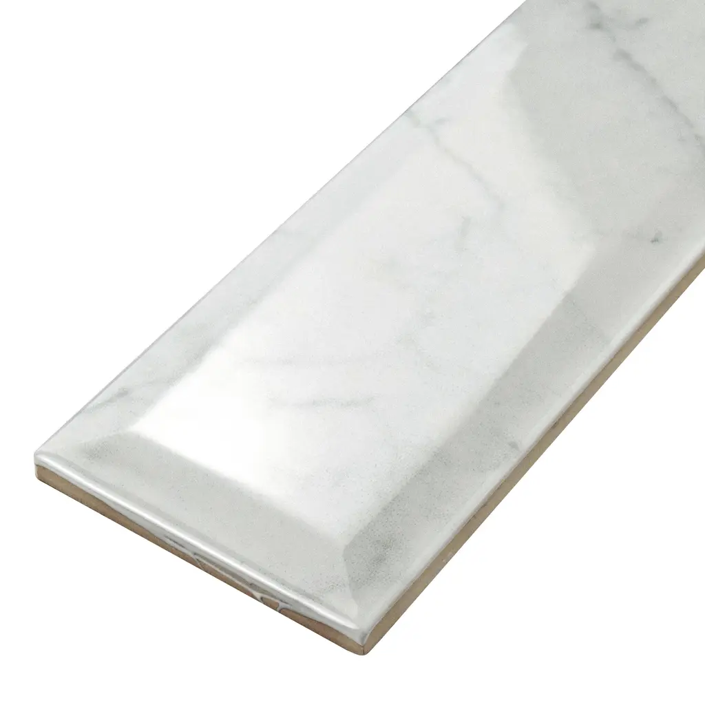 Emulating the timeless beauty of Carrara marble, our Classico Carrara Glossy Metro Ceramic Wall Tile captures stunning artistry dating back to Ancient Rome. Set on a glossy white glaze, this marbleized ceramic tile offers an everlasting look to accent your wall installation. Light grey veining striations sporadically flow throughout, adding authenticity to your installation. With an elongated subway format and beveled surface, this tile is perfect for creating a sophisticated feel for any setting. There is variation in the veining patterns found throughout each tile. Pair this tile with other Classico Carrara products to complete your own elegant installation. Tile is the better choice for your space. This tile is made from natural ingredients, making it a healthy choice as it is free from allergens, VOCs, formaldehyde and PVC. 11.44 square feet, 44 pieces per case. Case weight is 31.04 lbs. Grade 1, first-quality ceramic tile for wall use 3 in. width x 12 in. length x 0.3 in. thick Glazed, smooth finish with a high sheen and slight variation in tone PEI Rating 0 is suitable for wall use only Non-Vitreous tiles have water absorption of more than 7% for indoor use DCOF value is not available for this product. Please reference the PEI and MOHS rating for installation. Not frost resistant Please note: A sample of this product may be a partial piece cut from the full size tile in order to provide an affordable and convenient way for customers to judge the quality and finish of this item. Samples are not returnable.