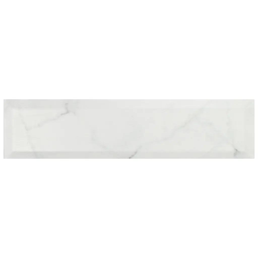 Emulating the timeless beauty of Carrara marble, our Classico Carrara Matte Metro Ceramic Wall Tile captures stunning artistry dating back to Ancient Rome. Set on a matte white glaze, this marbleized ceramic tile offers an everlasting look to accent your wall installation. Light grey veining striations sporadically flow throughout, adding authenticity to your installation. With an elongated subway format and beveled surface, this tile is perfect for creating a sophisticated feel for any setting. There is variation in the veining patterns found throughout each tile. Pair this tile with other Classico Carrara products to complete your own elegant installation. Tile is the better choice for your space. This tile is made from natural ingredients, making it a healthy choice as it is free from allergens, VOCs, formaldehyde and PVC. 11.44 square feet, 44 pieces per case. Case weight is 31.04 lbs. Grade 1, first-quality ceramic tile for wall use 3 in. width x 12 in. length x 0.3 in. thick Glazed, smooth finish with a medium sheen and slight variation in tone PEI Rating 0 is suitable for wall use only Non-Vitreous tiles have water absorption of more than 7% for indoor use DCOF value is not available for this product. Please reference the PEI and MOHS rating for installation. Not frost resistant Please note: A sample of this product may be a partial piece cut from the full size tile in order to provide an affordable and convenient way for customers to judge the quality and finish of this item. Samples are not returnable.