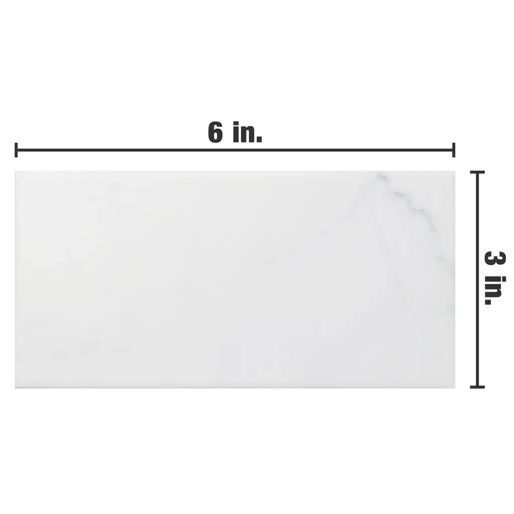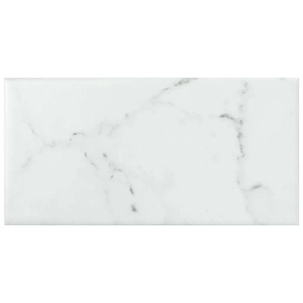 Emulating the timeless beauty of Carrara marble, our Classico Carrara Matte Ceramic Wall Tile captures stunning artistry dating back to Ancient Rome. Set on a matte white glaze, this marbleized ceramic tile offers an everlasting look to accent your wall installation. Light grey veining striations sporadically flow throughout, adding authenticity to your installation. With a traditional subway format and smooth, even surface, this tile is perfect for creating a sophisticated feel for any setting. There is variation in the veining patterns found throughout each tile. Pair this tile with other Classico Carrara products to complete your own elegant installation. Tile is the better choice for your space. This tile is made from natural ingredients, making it a healthy choice as it is free from allergens, VOCs, formaldehyde and PVC. 5.72 square feet, 44 pieces per case. Case weight is 15.84 lbs. Grade 1, first-quality ceramic tile for wall use 3 in. width x 6 in. length x 0.34 in. thick Glazed, smooth finish with a medium sheen and slight variation in tone PEI Rating 0 is suitable for wall use only Non-Vitreous tiles have water absorption of more than 7% for indoor use DCOF value is not available for this product. Please reference the PEI and MOHS rating for installation. Not frost resistant Please note: A sample of this product may be a partial piece cut from the full size tile in order to provide an affordable and convenient way for customers to judge the quality and finish of this item. Samples are not returnable.