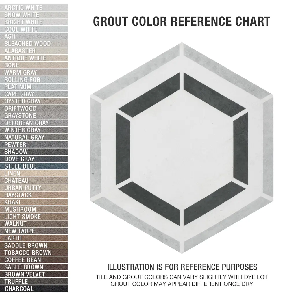 Modeling a geometric look, our Coco Hex Geo Classic Porcelain Floor and Wall Tile features a smooth, matte finish, providing decorative appeal that adapts to a variety of stylistic contexts. With its impervious, frost-resistant features, this gray hexagon tile is an ideal selection for both indoor and outdoor commercial and residential installations, including kitchens, bathrooms, backsplashes, showers, hallways, entryways, patios and fireplace facades. This tile is a perfect choice on its own or paired with other products in the Coco Collection. Tile is the better choice for your space! 7.5 square feet, 25 pieces per case. Case weight is 28.99 lbs. Grade 1, first-quality porcelain tile for floor and wall use 7 in. width x 8 in. length x 0.35 in. thick Glazed, smooth finish with a low sheen and uniform appearance in tone PEI Rating IV has high resistance to abrasion and is suitable for heavy-duty residential and commercial kitchens, hotels, exhibition and sales rooms with some dirt conditions Impervious tiles have a water absorption of less than 0.5% for indoor and outdoor use and are frost resistant This tile is ADA approved for slip resistance with a DCOF value of 0.42 or higher. Completely frost resistant for indoor or outdoor applications; use a latex-modified thinset for acceptable bond strength Please note: A sample of this product may be a partial piece cut from the full size tile in order to provide an affordable and convenient way for customers to judge the quality and finish of this item. Samples are not returnable.