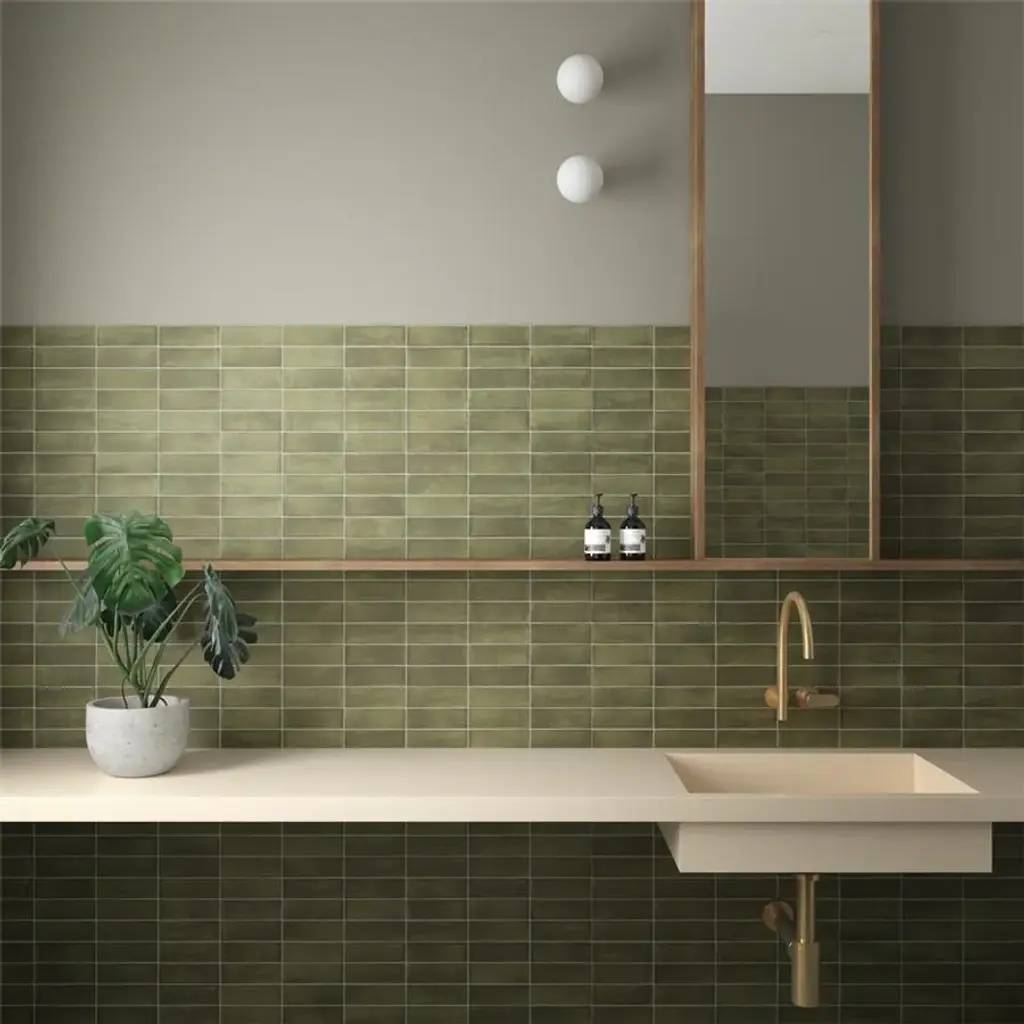 Offering a subway look, our Coco Matte Moss Verde Porcelain Floor and Wall Tile features a smooth, matte finish, providing decorative appeal that adapts to a variety of stylistic contexts. Containing 100 different print variations that are randomly distributed throughout each case, this green rectangle tile offers a one-of-a-kind look. With its impervious, frost-resistant features, this tile is an ideal selection for both indoor and outdoor commercial and residential installations, including kitchens, bathrooms, backsplashes, showers, hallways, entryways, patios and fireplace facades. This tile is a perfect choice on its own or paired with other products in the Coco Collection. Tile is the better choice for your space! 5.94 square feet, 66 pieces per case. Case weight is 19.71 lbs. Grade 1, first-quality porcelain tile for floor and wall use 2 in. width x 5.88 in. length x 0.35 in. thick Glazed, smooth finish with a low sheen and moderate variation in tone PEI Rating IV has high resistance to abrasion and is suitable for heavy-duty residential and commercial kitchens, hotels, exhibition and sales rooms with some dirt conditions Impervious tiles have a water absorption of less than 0.5% for indoor and outdoor use and are frost resistant This tile is ADA approved for slip resistance with a DCOF value of 0.42 or higher. Completely frost resistant for indoor or outdoor applications; use a latex-modified thinset for acceptable bond strength Please note: A sample of this product may be a partial piece cut from the full size tile in order to provide an affordable and convenient way for customers to judge the quality and finish of this item. Samples are not returnable.