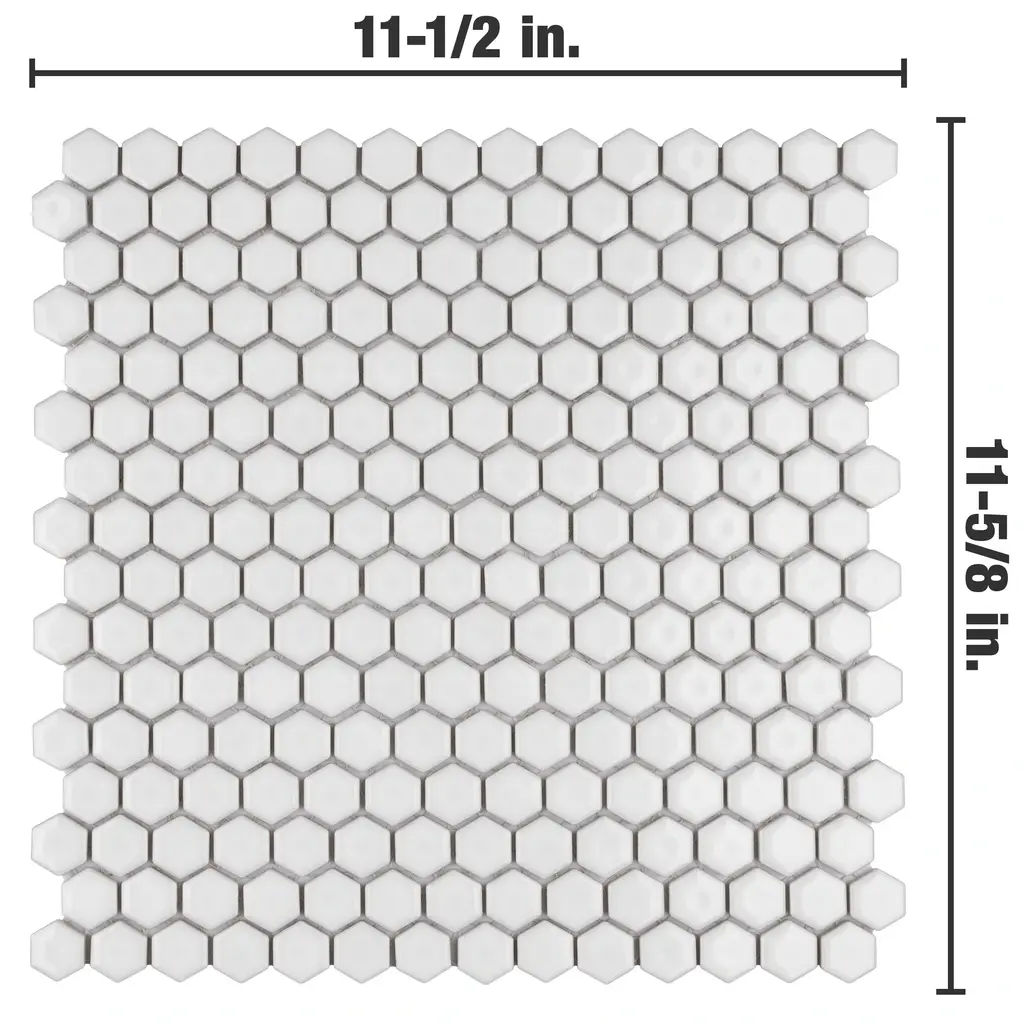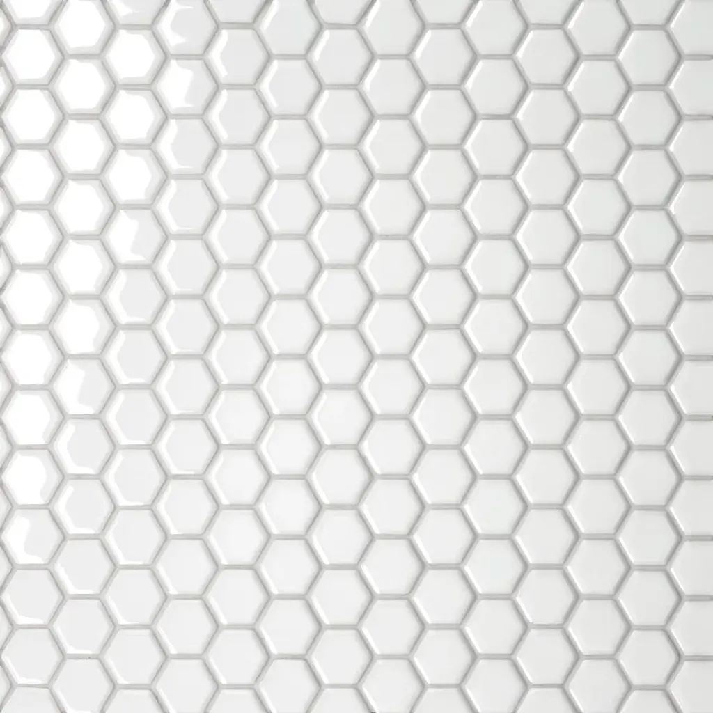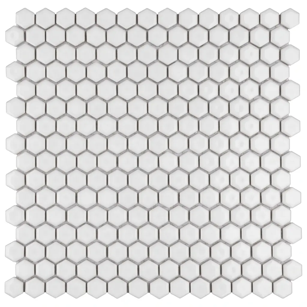 Transform your space into a tribute to retro design with our Colmena Hex Glossy White Porcelain Floor and Wall Mosaic Tile. As a modern deviation from the classic mosaic, this fresh option is a throwback to traditional retro design with a contemporary feel. Glossy white hexagons with rounded edges are arranged on an interlocking mesh to create a seamless installation. This minimalistic geometric porcelain mosaic is unique yet simplistic enough to integrate into any design, ranging from traditional style renovations to modern home projects. Its impervious and durable features make this an ideal tile for both indoor and outdoor use, including backsplashes, bathrooms, showers, kitchens, fireplace facades, patios and entryways. Tile is the better choice for your space. This tile is made from natural ingredients, making it a healthy choice as it is free from allergens, VOCs, formaldehyde and PVC.