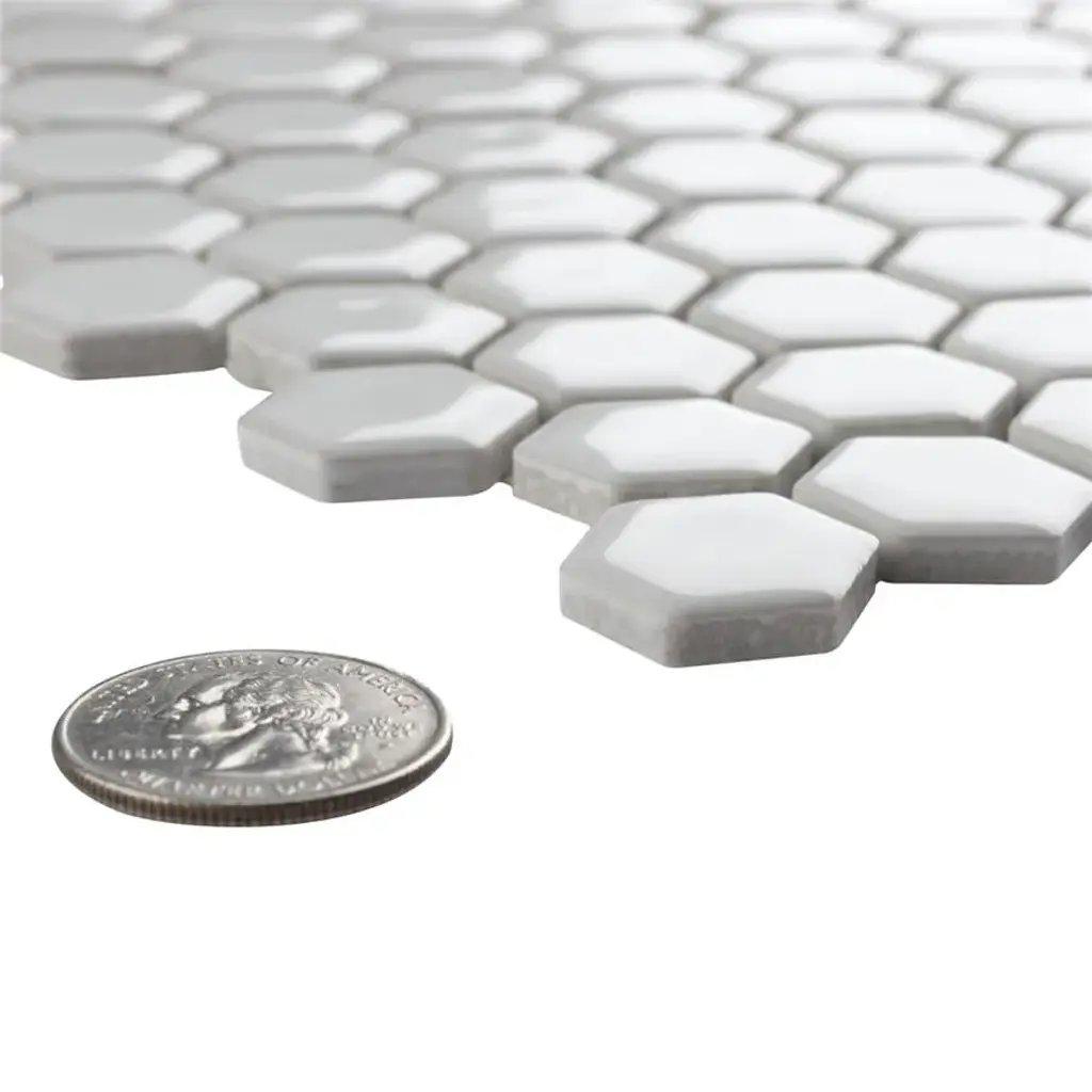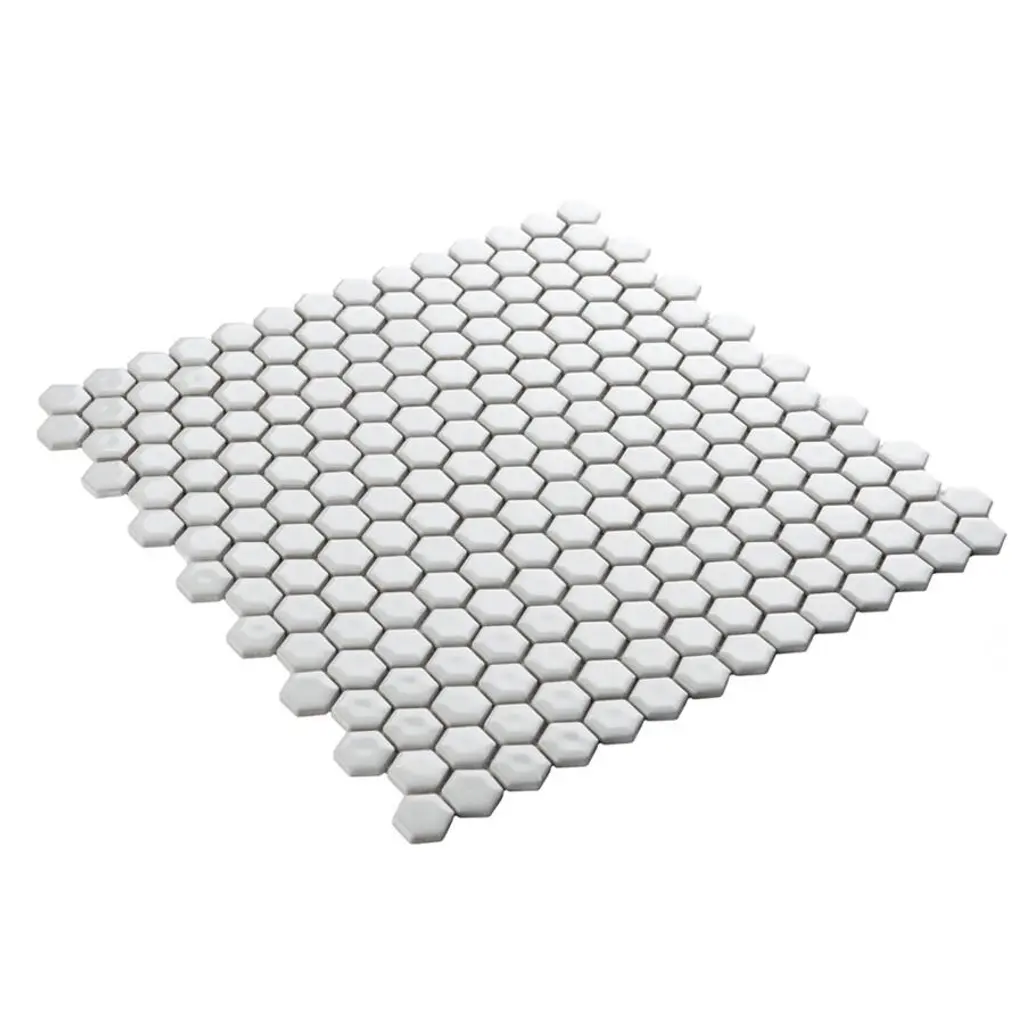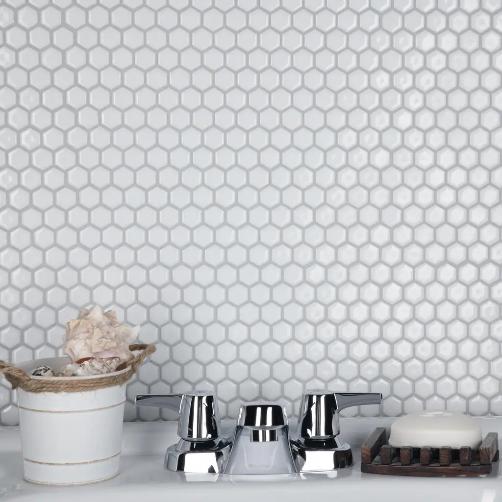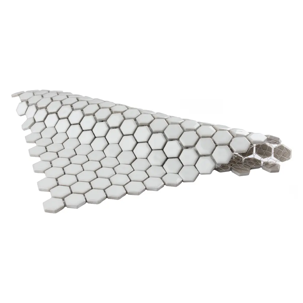 Transform your space into a tribute to retro design with our Colmena Hex Glossy White Porcelain Floor and Wall Mosaic Tile. As a modern deviation from the classic mosaic, this fresh option is a throwback to traditional retro design with a contemporary feel. Glossy white hexagons with rounded edges are arranged on an interlocking mesh to create a seamless installation. This minimalistic geometric porcelain mosaic is unique yet simplistic enough to integrate into any design, ranging from traditional style renovations to modern home projects. Its impervious and durable features make this an ideal tile for both indoor and outdoor use, including backsplashes, bathrooms, showers, kitchens, fireplace facades, patios and entryways. Tile is the better choice for your space. This tile is made from natural ingredients, making it a healthy choice as it is free from allergens, VOCs, formaldehyde and PVC.