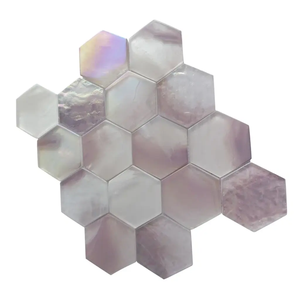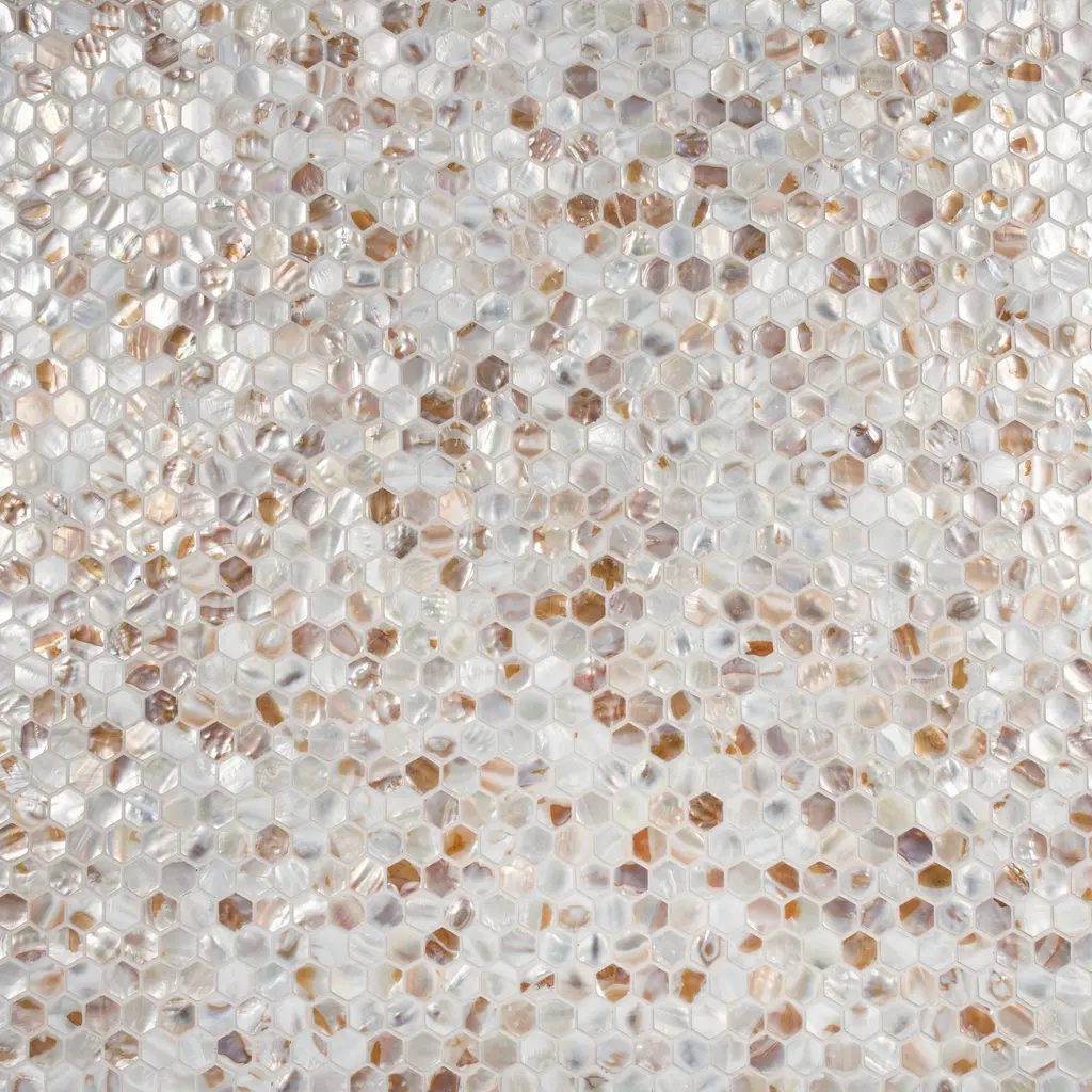 Offering a mosaic look, our Conchella Hex Natural Natural Shell Wall Tile features a smooth, glossy finish, providing decorative appeal that adapts to a variety of stylistic contexts. With its impervious, frost-resistant features, this mosaic is an ideal selection for both indoor and outdoor commercial and residential installations, including kitchens, bathrooms, backsplashes, showers, hallways and fireplace facades. This tile is a perfect choice on its own or paired with other products in the Conchella Collection. Tile is the better choice for your space! 0.95 square foot per piece, each piece sold individually. Piece weight equals 0.81 lbs. Grade 1, first-quality natural shell tile for wall use 11.5 in. width x 11.63 in. length x 0.08 in. thick mesh-mounted mosaic Unglazed, smooth finish with a high sheen and moderate variation in tone PEI Rating 0 is suitable for wall use only Impervious tiles have a water absorption of less than 0.5% for indoor and outdoor use and are frost resistant DCOF value is not available for this product. Please reference the PEI and MOHS rating for installation. Completely frost resistant for indoor or outdoor applications; use a latex-modified thinset for acceptable bond strength ImportedPlease note: A sample of this product may be a partial piece cut from the full size tile in order to provide an affordable and convenient way for customers to judge the quality and finish of this item. Samples are not returnable.