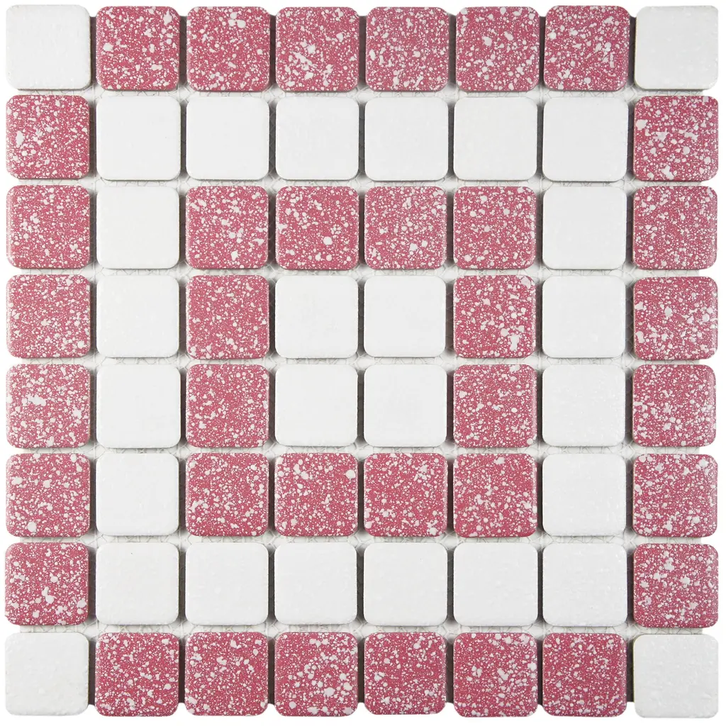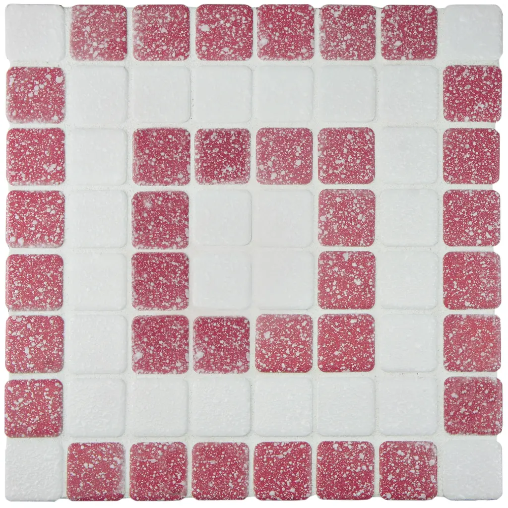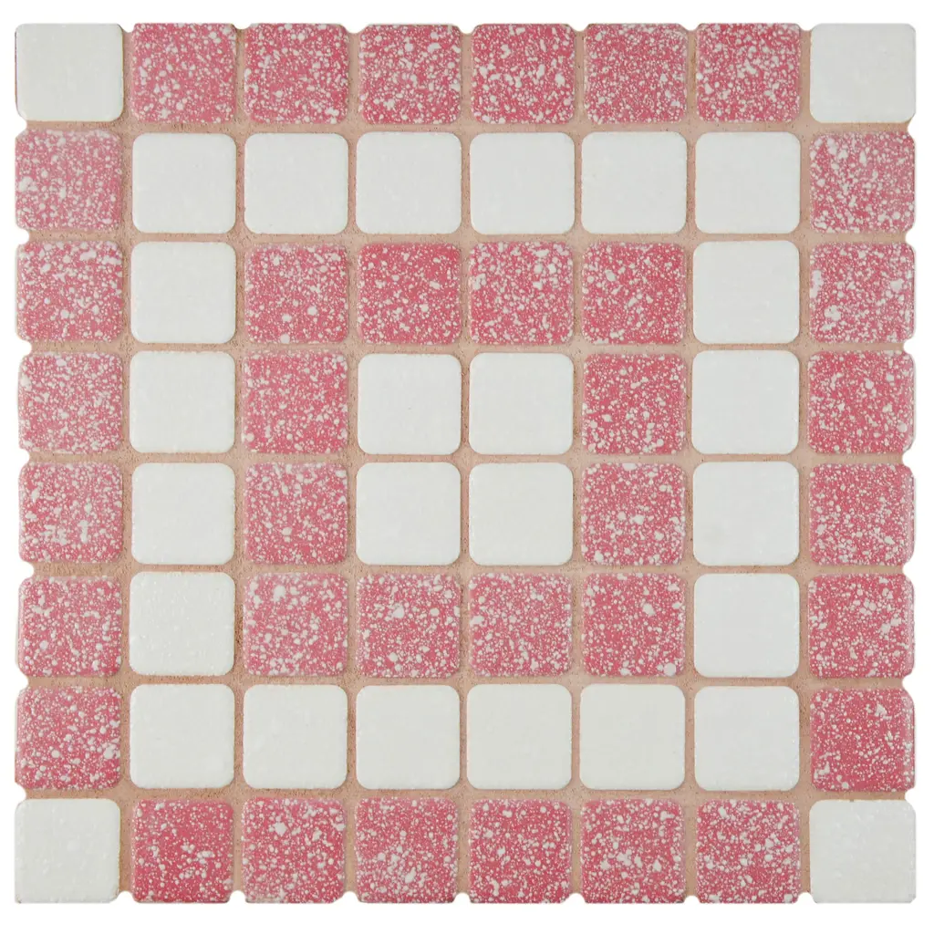 Our Crystalline Market Square Flamingo Porcelain Floor and Wall Mosaic Tile is an innovative twist on the classic mosaic. Featuring a mottled glazed surface, this product is comprised of square shaped chips with a pink and white color palette. This slightly textured mosaic creates a classic and versatile look with slightly rounded squares arranged on an interlocking mesh to create a unique and seamless installation. This geometric porcelain mosaic is unique yet simplistic enough to integrate into any design, ranging from traditional style renovations to modern home projects. Its impervious, frost-resistant and ADA compliant features make this an ideal tile for both commercial and residential indoor and outdoor use, including backsplashes, bathrooms, showers, kitchens, patios, and entryways. Tile is the better choice for your space. This tile is made from natural ingredients, making it a healthy choice as it is free from allergens, VOCs, formaldehyde and PVC. 9.8 square feet, 10 pieces per case. Case weight is 19 lbs. Grade 1, first-quality porcelain tile for floor and wall use 11.75 in. width x 11.75 in. length x 0.19 in. thick mesh-mounted mosaic Glazed, slightly textured finish with a medium sheen and slight variation in tone PEI Rating IV has high resistance to abrasion and is suitable for heavy-duty residential and commercial kitchens, hotels, exhibition and sales rooms with some dirt conditions Impervious tiles have a water absorption of less than 0.5% for indoor and outdoor use and are frost resistant This tile has a COF wet rating greater than 0.60 to 0.79 which is considered skid resistant for indoor and outdoor use. This tile is ADA approved for slip resistance. Completely frost resistant for indoor or outdoor applications; use a latex-modified thinset for acceptable bond strength Please note: A sample of this product may be a partial piece cut from the full size tile in order to provide an affordable and convenient way for customers to judge the quality and finish of this item. Samples are not returnable.