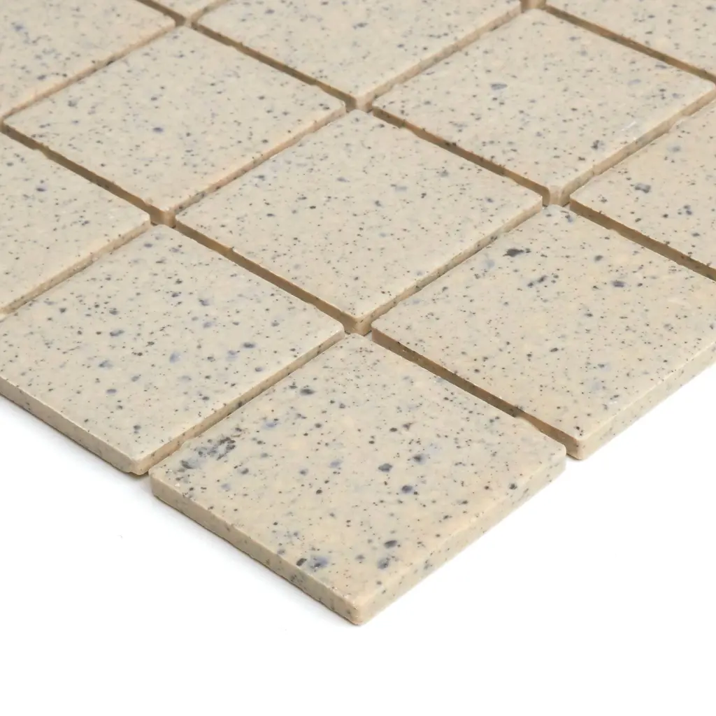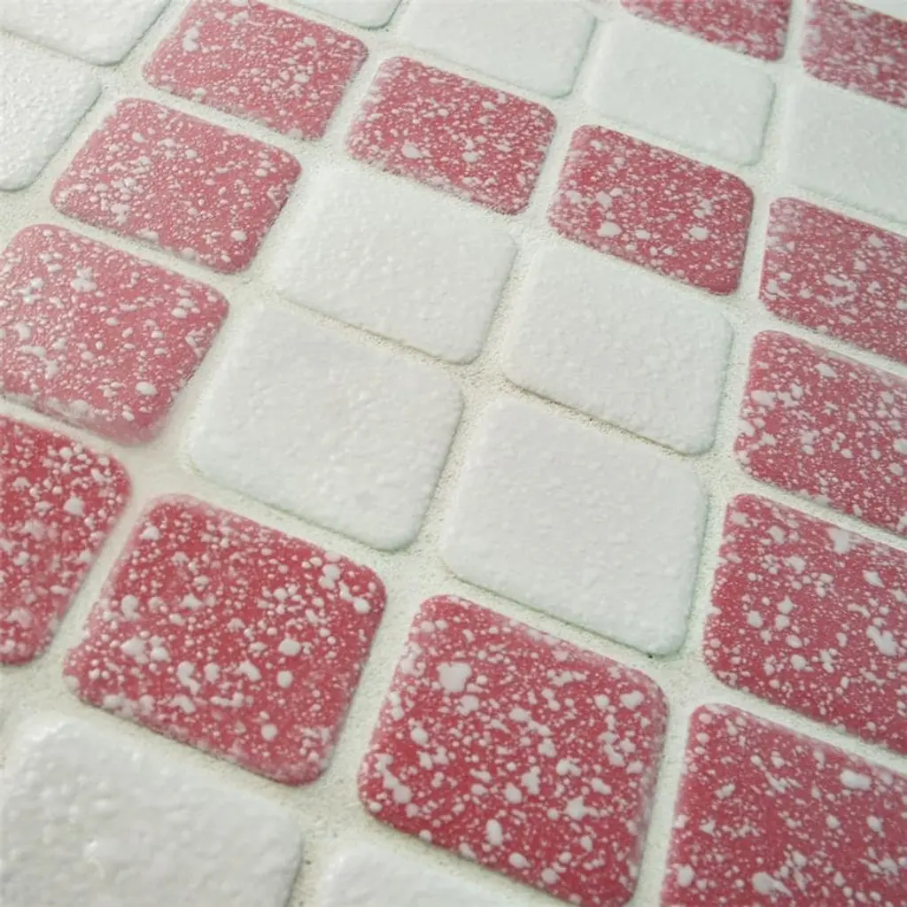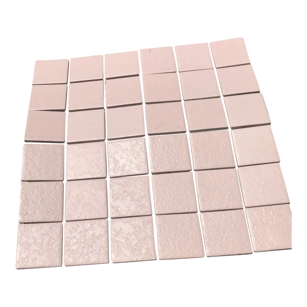 Our Crystalline Market Square Flamingo Porcelain Floor and Wall Mosaic Tile is an innovative twist on the classic mosaic. Featuring a mottled glazed surface, this product is comprised of square shaped chips with a pink and white color palette. This slightly textured mosaic creates a classic and versatile look with slightly rounded squares arranged on an interlocking mesh to create a unique and seamless installation. This geometric porcelain mosaic is unique yet simplistic enough to integrate into any design, ranging from traditional style renovations to modern home projects. Its impervious, frost-resistant and ADA compliant features make this an ideal tile for both commercial and residential indoor and outdoor use, including backsplashes, bathrooms, showers, kitchens, patios, and entryways. Tile is the better choice for your space. This tile is made from natural ingredients, making it a healthy choice as it is free from allergens, VOCs, formaldehyde and PVC. 9.8 square feet, 10 pieces per case. Case weight is 19 lbs. Grade 1, first-quality porcelain tile for floor and wall use 11.75 in. width x 11.75 in. length x 0.19 in. thick mesh-mounted mosaic Glazed, slightly textured finish with a medium sheen and slight variation in tone PEI Rating IV has high resistance to abrasion and is suitable for heavy-duty residential and commercial kitchens, hotels, exhibition and sales rooms with some dirt conditions Impervious tiles have a water absorption of less than 0.5% for indoor and outdoor use and are frost resistant This tile has a COF wet rating greater than 0.60 to 0.79 which is considered skid resistant for indoor and outdoor use. This tile is ADA approved for slip resistance. Completely frost resistant for indoor or outdoor applications; use a latex-modified thinset for acceptable bond strength Please note: A sample of this product may be a partial piece cut from the full size tile in order to provide an affordable and convenient way for customers to judge the quality and finish of this item. Samples are not returnable.