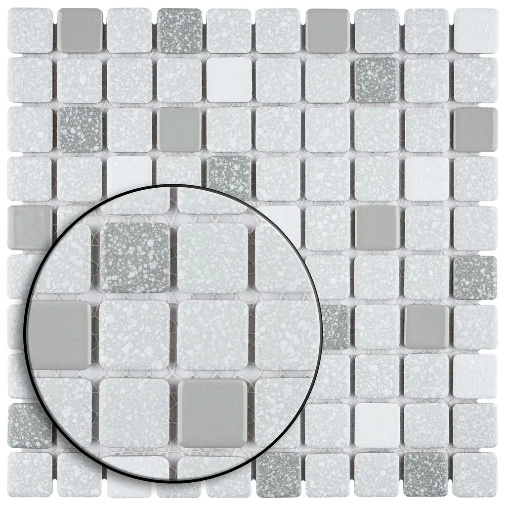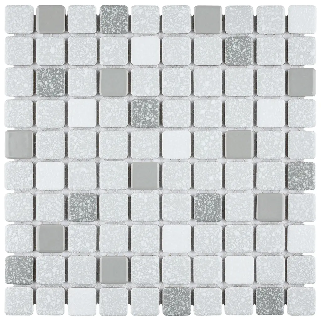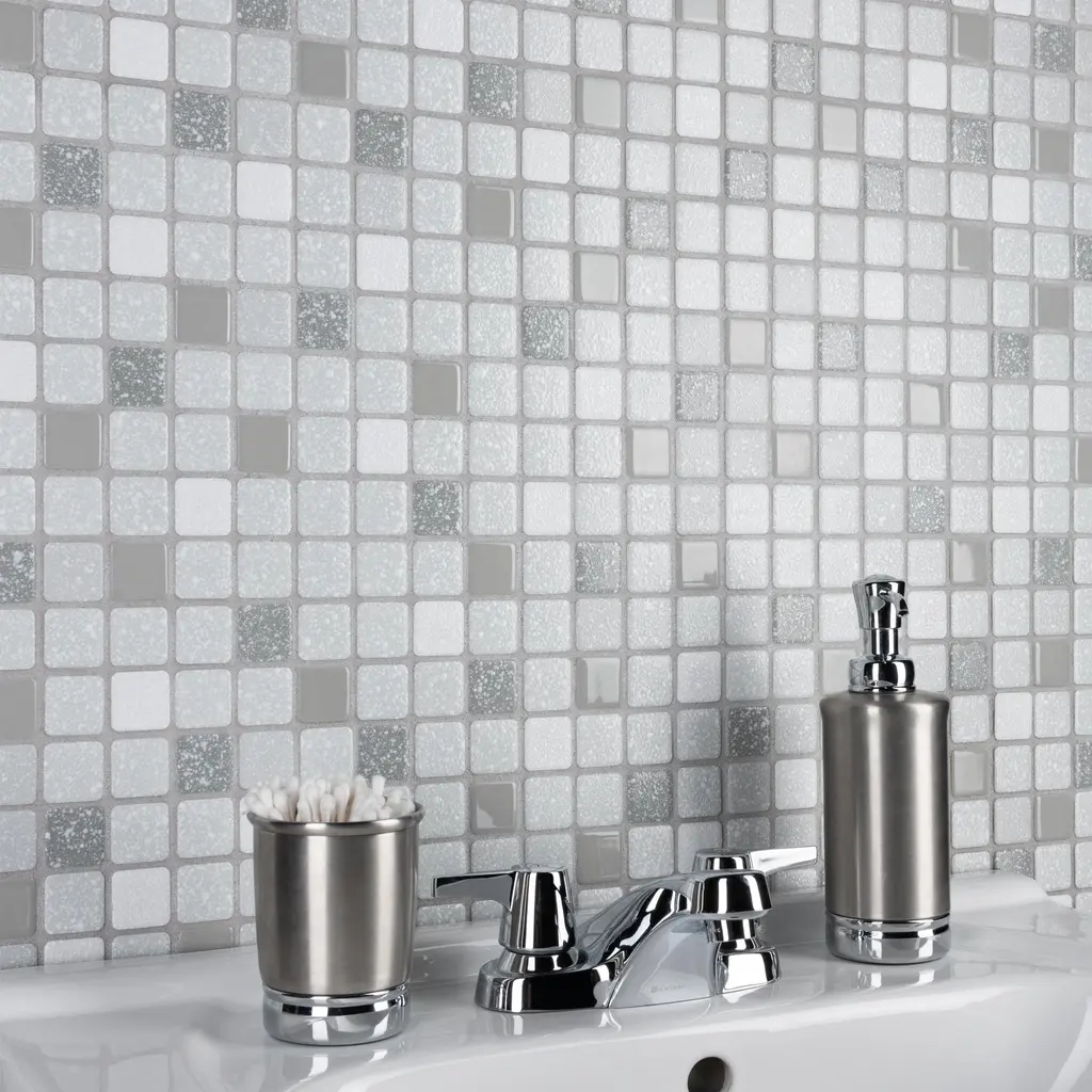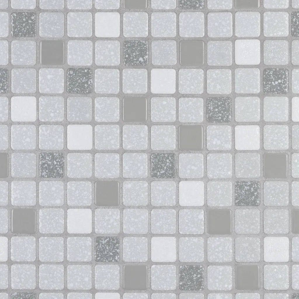 Our Crystalline Square Grey Porcelain Floor and Wall Mosaic Tile is an innovative twist on the classic mosaic. Featuring a mottled glazed surface, this product is comprised of square shaped chips with a muted grey and white color palette. This slightly textured mosaic creates a classic and versatile look with slightly rounded squares arranged on an interlocking mesh to create a unique and seamless installation. This geometric porcelain mosaic is unique yet simplistic enough to integrate into any design, ranging from traditional style renovations to modern home projects. Its impervious, frost-resistant and ADA compliant features make this an ideal tile for both commercial and residential indoor and outdoor use, including backsplashes, bathrooms, showers, kitchens, patios, and entryways. Tile is the better choice for your space. This tile is made from natural ingredients, making it a healthy choice as it is free from allergens, VOCs, formaldehyde and PVC. 10.2 square feet, 10 pieces per case. Case weight is 17.5 lbs. Grade 1, first-quality porcelain tile for floor and wall use 12 in. width x 12 in. length x 0.19 in. thick mesh-mounted mosaic Glazed, mixed texture with a mixed finish and slight variation in tone PEI Rating IV has high resistance to abrasion and is suitable for heavy-duty residential and commercial kitchens, hotels, exhibition and sales rooms with some dirt conditions Impervious tiles have a water absorption of less than 0.5% for indoor and outdoor use and are frost resistant This tile has a COF wet rating greater than 0.60 to 0.79 which is considered skid resistant for indoor and outdoor use. This tile is ADA approved for slip resistance. Completely frost resistant for indoor or outdoor applications; use a latex-modified thinset for acceptable bond strength Please note: A sample of this product may be a partial piece cut from the full size tile in order to provide an affordable and convenient way for customers to judge the quality and finish of this item. Samples are not returnable.