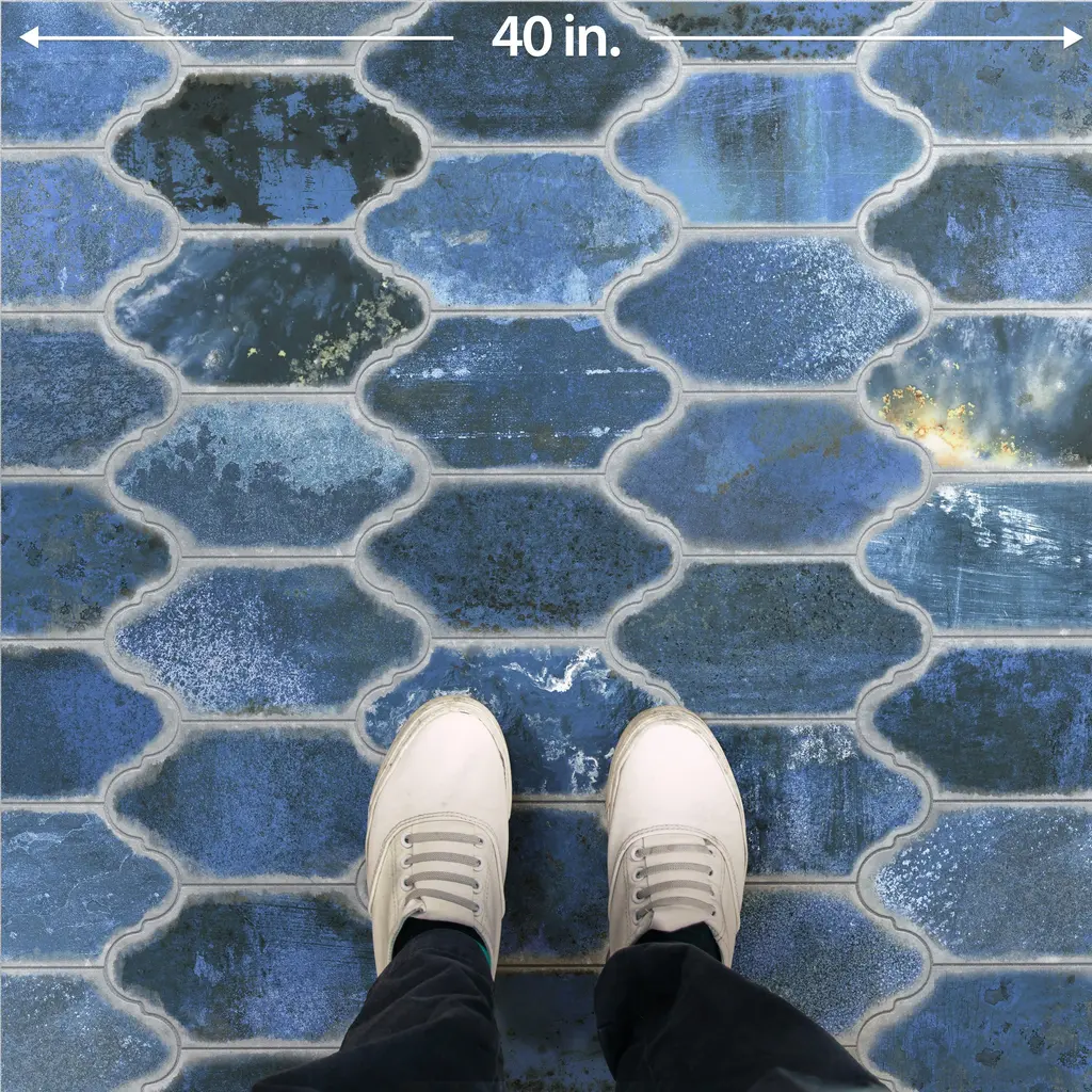 Offering a distressed look, our Dorne Provenzal Blue Porcelain Floor and Wall Tile features a slightly textured, matte finish, providing decorative appeal that adapts to a variety of stylistic contexts. The Dorne Porcelain Tile Collection, crafted with a subtly textured finish, captures the allure and charm of bygone eras, seamlessly blending it with modern aesthetics. Containing 30 different print variations that are randomly distributed throughout each case, this blue lantern tile offers a one-of-a-kind look. With its impervious, frost-resistant features, this tile is an ideal selection for both indoor and outdoor commercial and residential installations, including kitchens, bathrooms, backsplashes, showers, hallways, entryways, patios and fireplace facades. This tile is a perfect choice on its own or paired with other products in the Dorne Collection. Tile is the better choice for your space! 8.8 square feet, 20 pieces per case. Case weight is 40.75 lbs. Grade 1, first-quality porcelain tile for floor and wall use 6.25 in. width x 12.75 in. length x 0.39 in. thick Glazed, slightly textured finish with a low sheen and substantial variation in tone PEI Rating IV has high resistance to abrasion and is suitable for heavy-duty residential and commercial kitchens, hotels, exhibition and sales rooms with some dirt conditions Impervious tiles have a water absorption of less than 0.5% for indoor and outdoor use and are frost resistant This tile is ADA approved for slip resistance with a DCOF value of 0.42 or higher. Completely frost resistant for indoor or outdoor applications; use a latex-modified thinset for acceptable bond strength Please note: A sample of this product may be a partial piece cut from the full size tile in order to provide an affordable and convenient way for customers to judge the quality and finish of this item. Samples are not returnable.