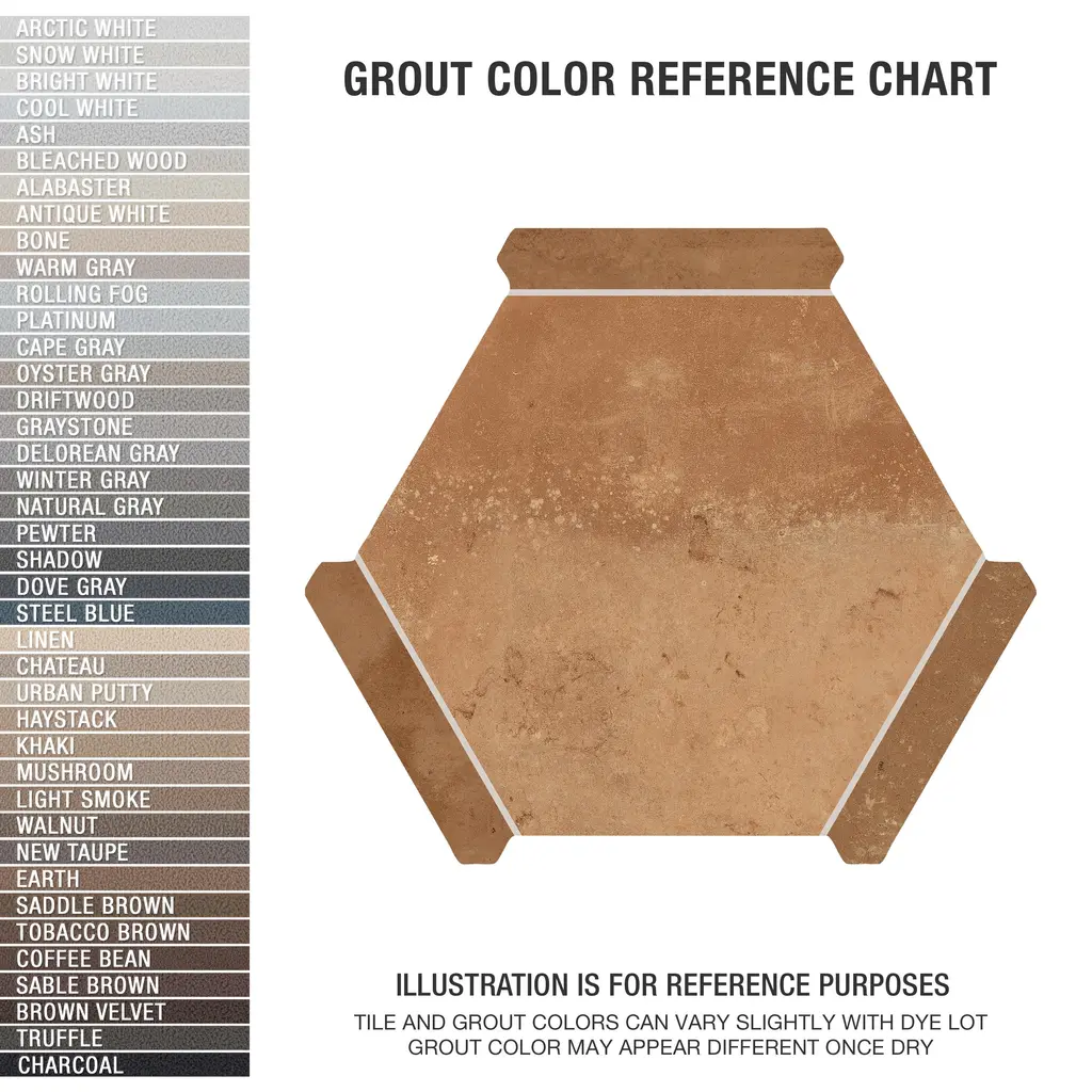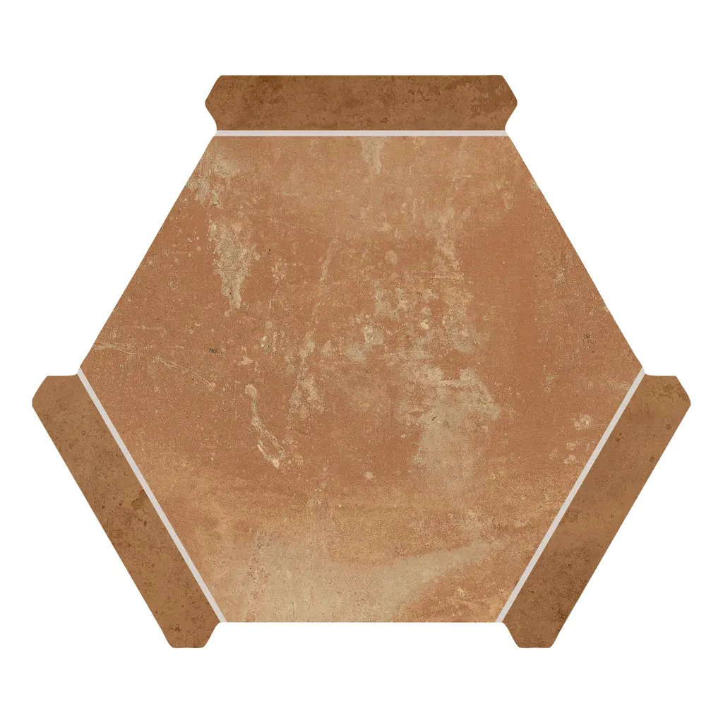 Replicating a terra cotta look, our Doscotto Panal Rosso with Clay Picket Porcelain Floor and Wall Tile features a smooth, matte finish, providing decorative appeal that adapts to a variety of stylistic contexts. The Doscotto Porcelain Tile Collection is inspired by medieval Spanish architecture, with its interlocking hexagons with pickets and a mix of terracotta colors, creating a cozy and charming space. Containing 24 different print variations that are randomly distributed throughout each case, this brown specialty tile offers a one-of-a-kind look. With its impervious, frost-resistant features, this tile is an ideal selection for both indoor and outdoor commercial and residential installations, including kitchens, bathrooms, backsplashes, showers, hallways, entryways, patios and fireplace facades. This tile is a perfect choice on its own or paired with other products in the Doscotto Collection. Tile is the better choice for your space! 8.06 square feet, 18 pieces per case. Case weight is 29.43 lbs. Grade 1, first-quality porcelain tile for floor and wall use 8.63 in. width x 9.88 in. length x 0.31 in. thick Glazed, smooth finish with a low sheen and moderate variation in tone PEI Rating IV has high resistance to abrasion and is suitable for heavy-duty residential and commercial kitchens, hotels, exhibition and sales rooms with some dirt conditions Impervious tiles have a water absorption of less than 0.5% for indoor and outdoor use and are frost resistant This tile is ADA approved for slip resistance with a DCOF value of 0.42 or higher. Completely frost resistant for indoor or outdoor applications; use a latex-modified thinset for acceptable bond strength Please note: A sample of this product may be a partial piece cut from the full size tile in order to provide an affordable and convenient way for customers to judge the quality and finish of this item. Samples are not returnable.