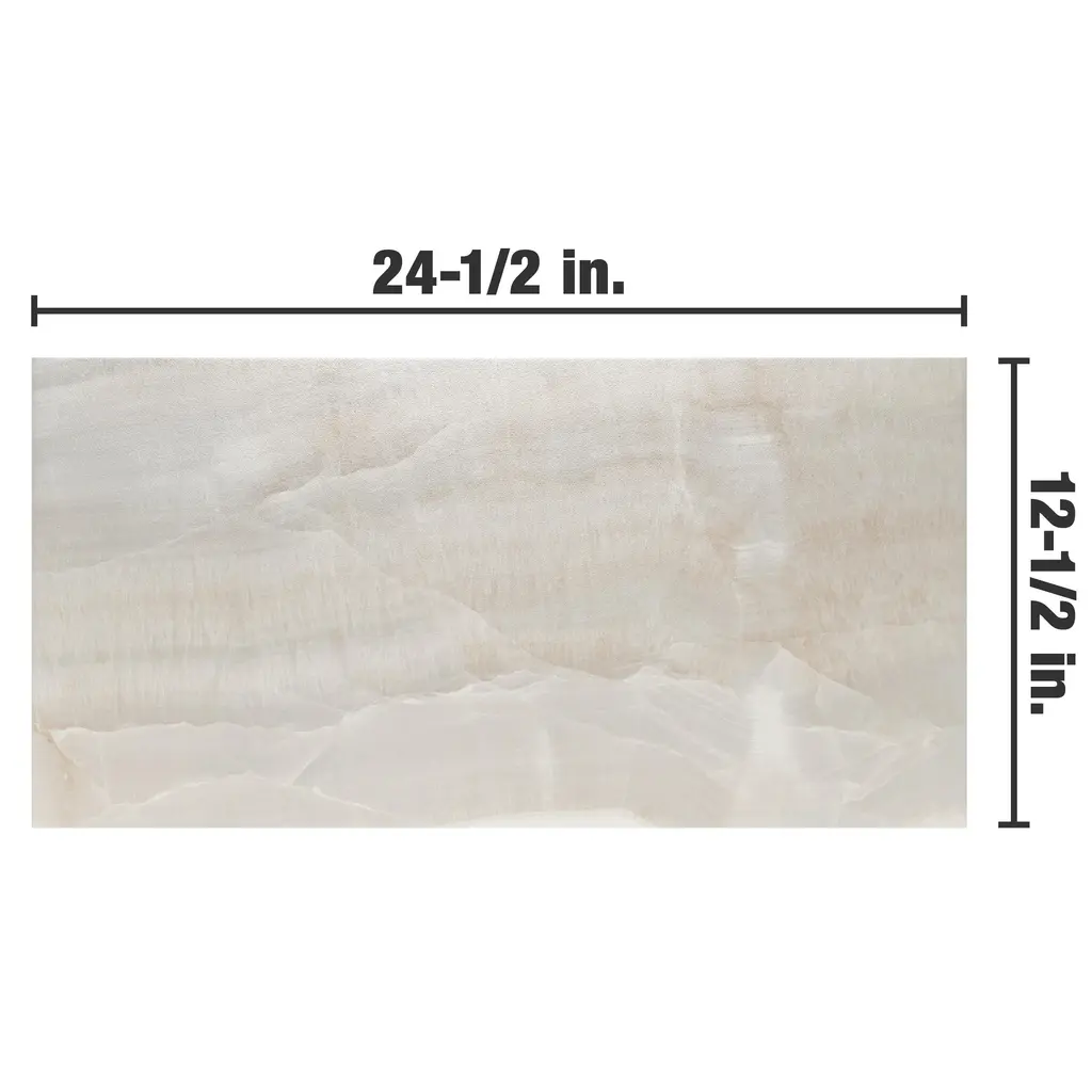 Featuring a simple yet captivating design, our Dubai Pearl Porcelain Floor and Wall Tile introduces eye-catching beauty that provides character and personality wherever it is installed. With a smooth satin surface, this enlarged porcelain plank tile creates a dynamic and soothing aesthetic that has the ability to enhance any space. Pale cream and beige tones with subtle striations further infuses this tile with elegance and natural charm. Its ADA-compliant, impervious, and frost-resistant features make this an ideal choice for both indoor and outdoor residential installations including, kitchens, bathrooms, backsplashes, showers, patios and fireplace facades. Tile is the better choice for your space. This tile is made from natural ingredients, making it a healthy choice as it is free from allergens, VOCs, formaldehyde and PVC. 10.8 square feet, 5 pieces per case. Case weight is 45.79 lbs. Grade 1, first-quality porcelain tile for floor and wall use 12.5 in. width x 24.5 in. length x 0.38 in. thick Glazed, smooth finish with a medium sheen and slight variation in tone PEI Rating III is suitable for medium-duty residential floors including kitchens, halls, corridors, balconies, terraces and areas used more often with normal footwear and small amounts of dirt Impervious tiles have a water absorption of less than 0.5% for indoor and outdoor use and are frost resistant This tile is ADA approved for slip resistance with a DCOF value of 0.42 or higher. Completely frost resistant for indoor or outdoor applications; use a latex-modified thinset for acceptable bond strength Please note: A sample of this product may be a partial piece cut from the full size tile in order to provide an affordable and convenient way for customers to judge the quality and finish of this item. Samples are not returnable.