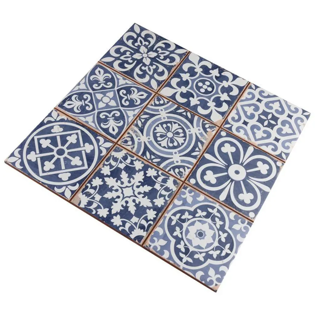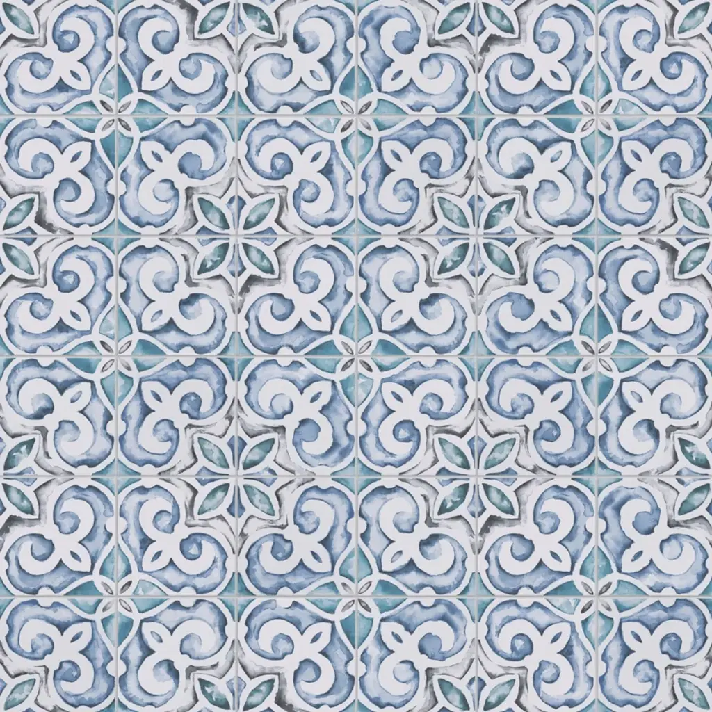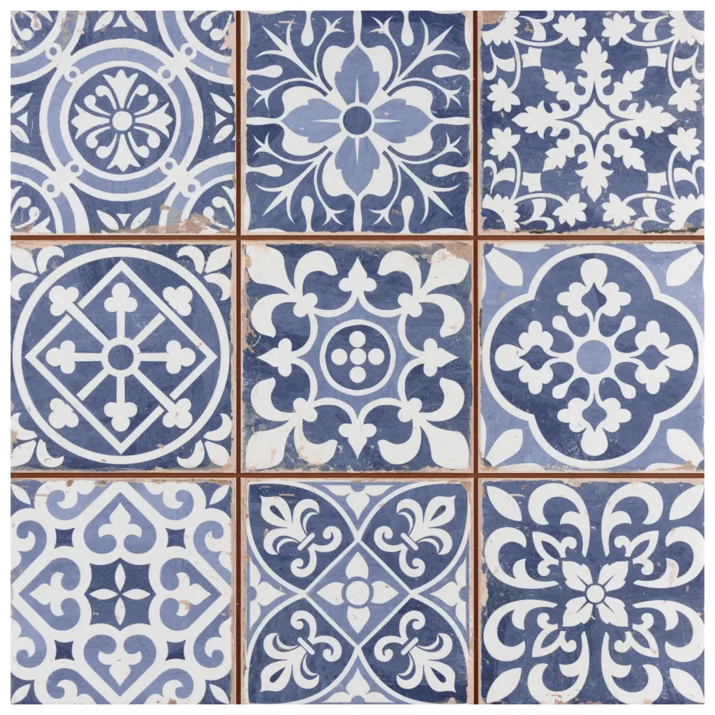 It is easy to picture sun-drenched streets of Spain when looking at our Faenza Azul Ceramic Floor and Wall Tile. Save time and labor spent arranging smaller square tiles and instead install these durable ceramic slabs, which have nine squares separated by scored grout lines. This breathtaking blue glaze features a collection of encaustic-inspired designs. Imitations of the scuffs and spots that are the marks of well-loved, worn, century-old tile and the rich red tones peeking through are the perfect contrast to the faded shades of denim blue. These rustic scuffs and spots convince that this tile is truly aged. There are 3 different variations of scuffs and pattern arrangements available that are randomly scattered throughout each case, offering a sporadic patchwork look. Designed by interior architect and furniture designer Francisco Segarra, this tile is a true reflection of vintage industrial design. The scored grout lines can be grouted with the color of your choice to further customize your installation. Bring rustic charm to your interior with this easy-to-maintain look. 12.0 square feet, 10 pieces per case. Case weight is 48.32 lbs. Grade 1, first-quality ceramic tile for floor and wall use 13 in. width x 13 in. length x 0.39 in. thick Glazed, slightly textured finish with a low sheen and moderate variation in tone PEI Rating IV has high resistance to abrasion and is suitable for heavy-duty residential and commercial kitchens, hotels, exhibition and sales rooms with some dirt conditions Semi-Vitreous tiles have water absorption of more than 3% but less than 7% for indoor use This tile has a COF wet rating less than or equal to 0.50 and is considered to have a marginally low skid resistance. This tile is not ADA approved for slip resistance. Not frost resistant Please note: A sample of this product may be a partial piece cut from the full size tile in order to provide an affordable and convenient way for customers to judge the quality and finish of this item. Samples are not returnable.