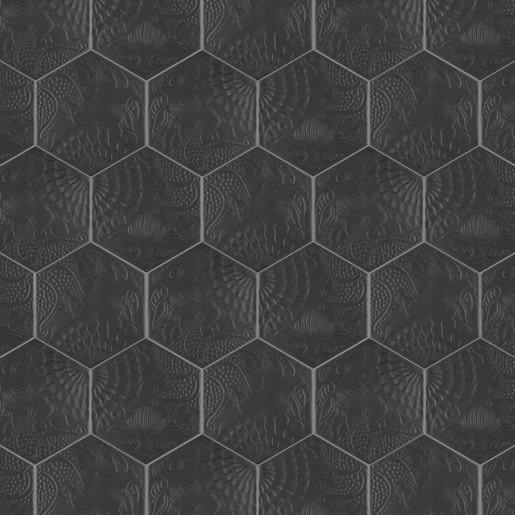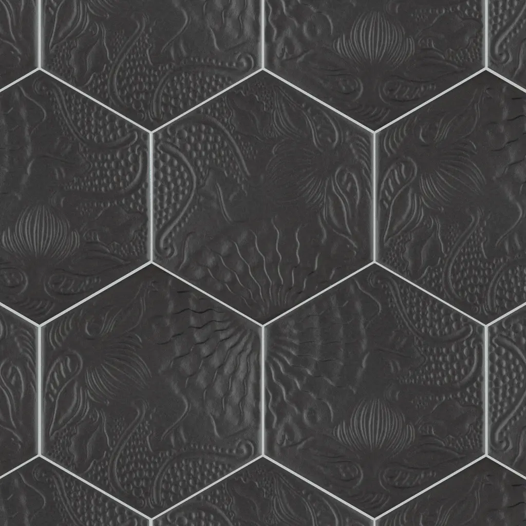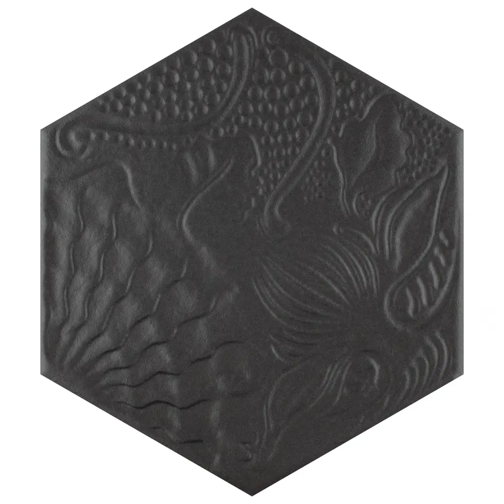 Merola Tile Gaudi Hex Black 8-5/8" X 9-7/8" Porcelain Floor And Wall Tile - Sample Swatch