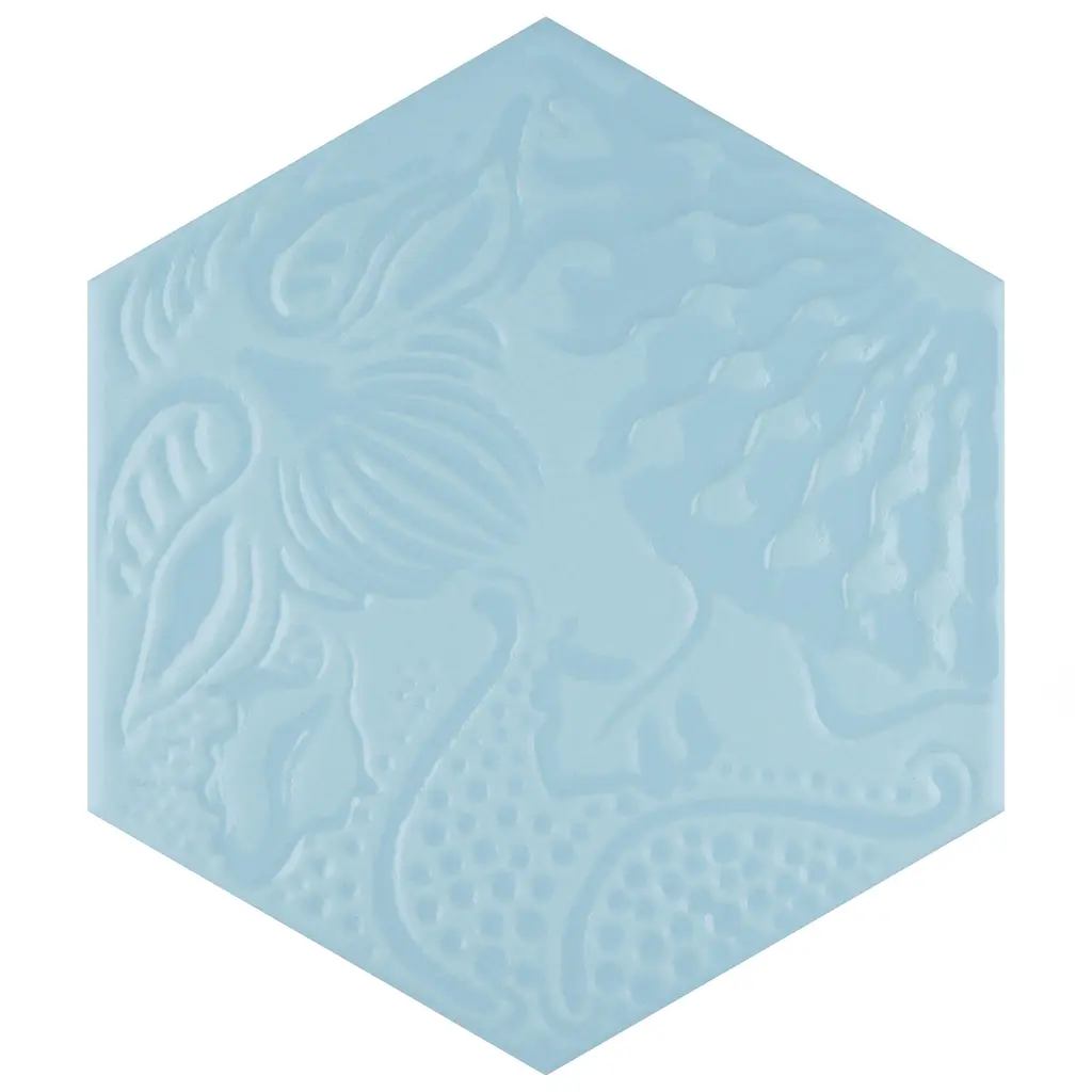 Merola Tile Gaudi Lux Hex Aqua 8-5/8" X 9-7/8" Porcelain Floor And Wall Tile - Sample Swatch