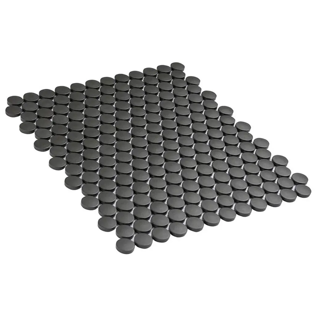 Merola Tile Gotham Penny Round Black 9.75" X 11.5" Unglazed Porcelain Mosaic Tile - Sample Swatch