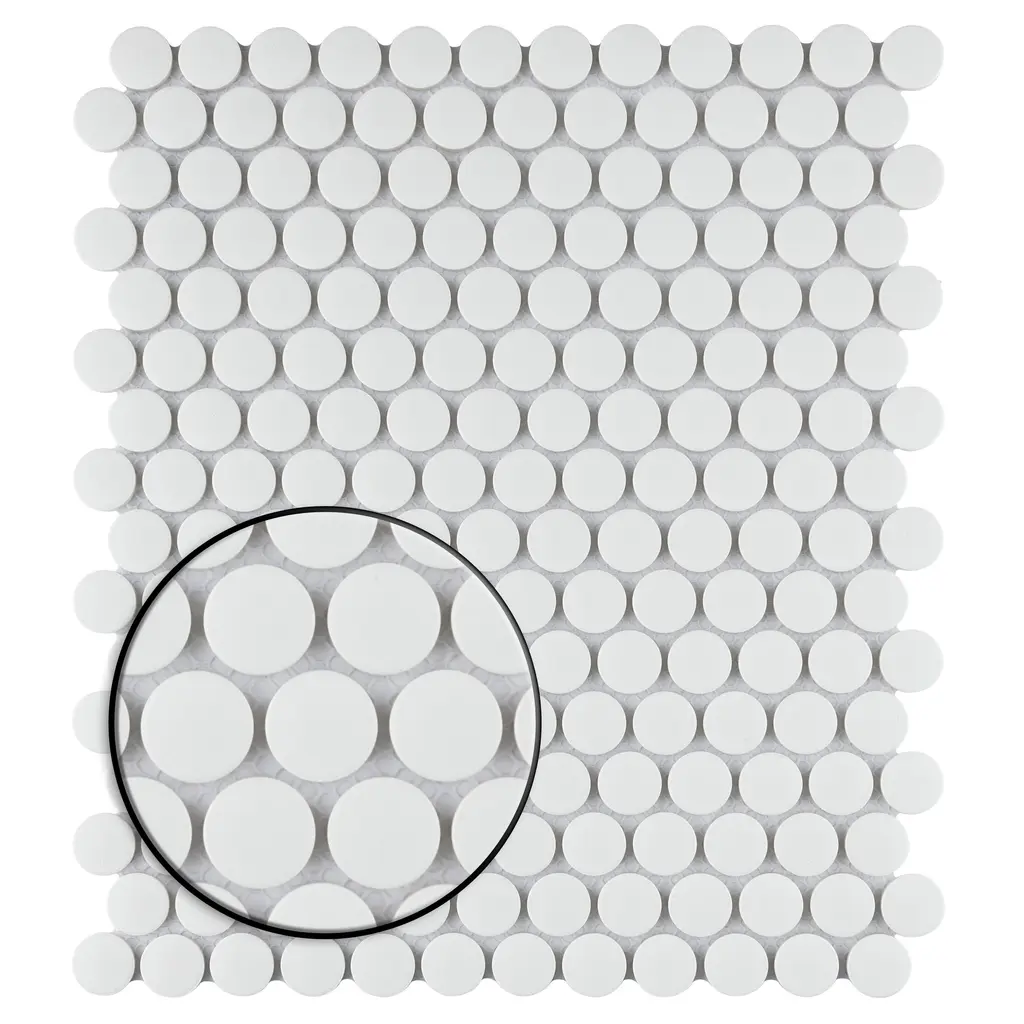 Merola Tile Gotham Penny Round White 9-3/4" X 11-1/2" Porcelain Floor And Wall Tile - Sample Swatch