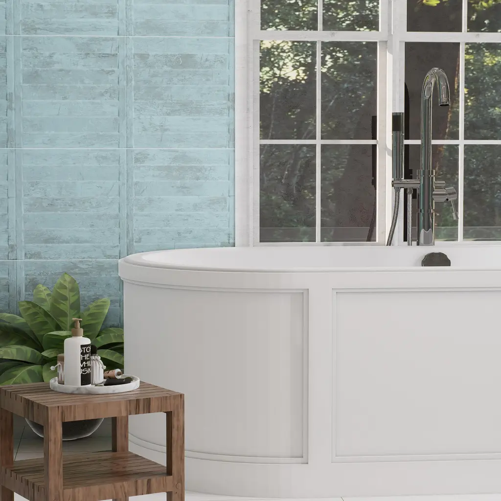 Replicating a wood look, our Habanera Decor Azul Fluted Ceramic Wall Tile features a smooth, satin finish, providing decorative appeal that adapts to a variety of stylistic contexts. Inspired by Havana's vibrant spirit, the Habanera Collection captures wood's elegance with a 3D shutter motif, offering a unique blend of sophistication and beachy charm, creating a serene and timeless ambiance for modern living spaces. Containing 8 different print variations that are randomly distributed throughout each case, this blue rectangle tile offers a one-of-a-kind look. With its non-vitreous features, this tile is an ideal selection for indoor commercial and residential installations, including kitchens, bathrooms, backsplashes, showers, hallways and fireplace facades. This tile is a perfect choice on its own or paired with other products in the Habanera Collection. Tile is the better choice for your space! 73.75 square feet, 25 pieces per pallet. Pallet weight is 270.0 lbs. Grade 1, first-quality Fluted Ceramic tile for wall use 11.88 in. width x 35.5 in. length x 0.41 in. thick Glazed, smooth finish with a medium sheen and slight variation in tone PEI Rating 0 is suitable for wall use only Non-Vitreous tiles have water absorption of more than 7% for indoor use DCOF value is not available for this product. Please reference the PEI and MOHS rating for installation. Not frost resistant Please note: A sample of this product may be a partial piece cut from the full size tile in order to provide an affordable and convenient way for customers to judge the quality and finish of this item. Samples are not returnable.