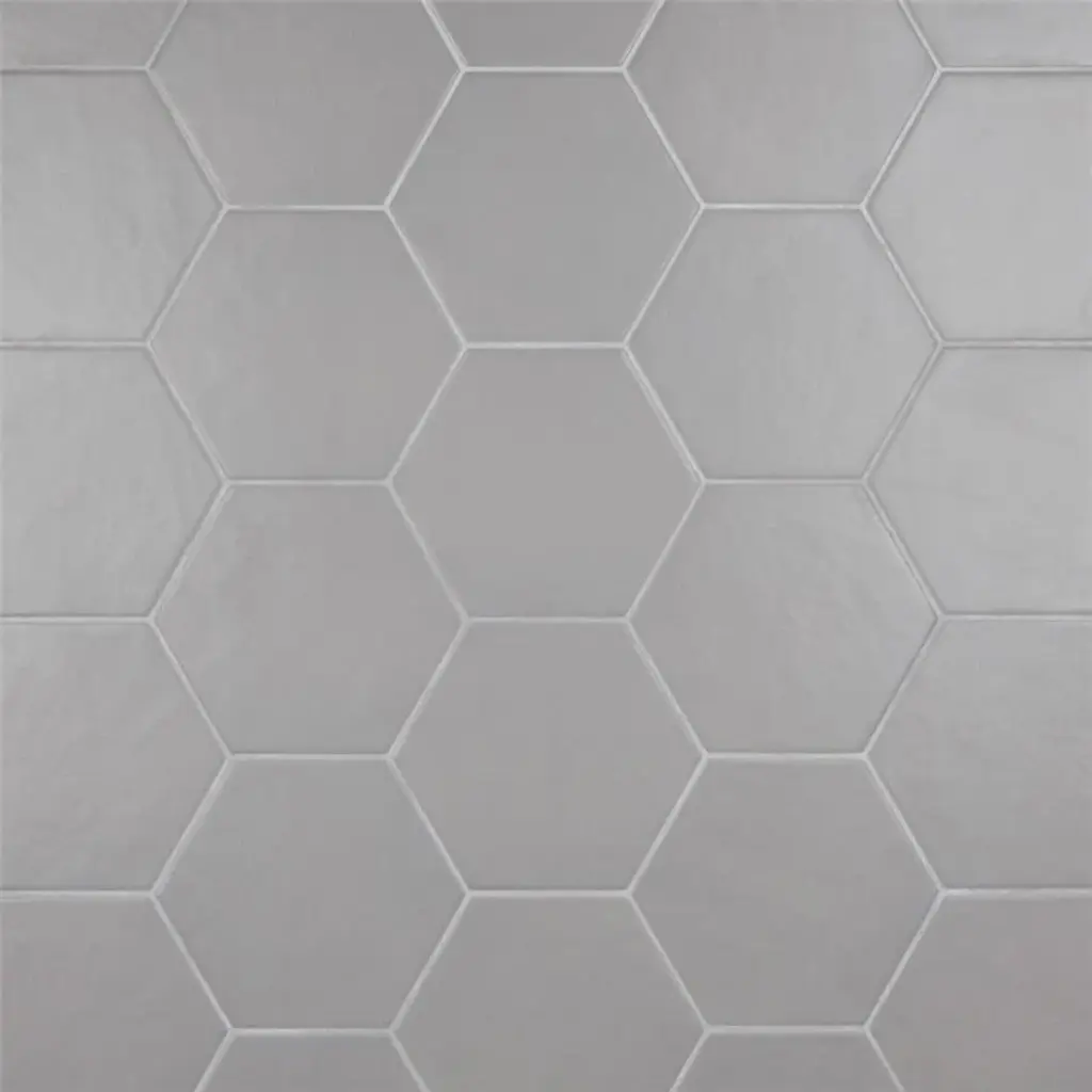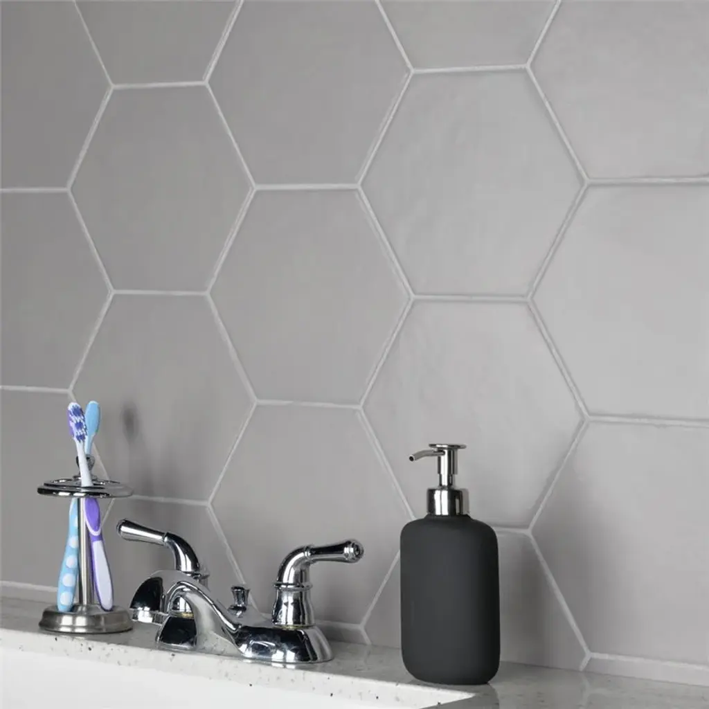 Offering a simplistic look, our Hexatile Matte Gris Porcelain Floor and Wall Tile features a slightly textured, matte finish, providing decorative appeal that adapts to a variety of stylistic contexts. With its impervious, frost-resistant features, this gray hexagon tile is an ideal selection for both indoor and outdoor residential installations, including kitchens, bathrooms, backsplashes, showers, hallways and fireplace facades. This tile is a perfect choice on its own or paired with other products in the Hexatile Collection. Tile is the better choice for your space! 7.5 square feet, 25 pieces per case. Case weight is 28.99 lbs. Grade 1, first-quality porcelain tile for floor and wall use 7 in. width x 8 in. length x 0.37 in. thick Glazed, slightly textured finish with a low sheen and uniform appearance in tone PEI Rating III is suitable for medium-duty residential floors including kitchens, halls, corridors, balconies, terraces and areas used more often with normal footwear and small amounts of dirt Impervious tiles have a water absorption of less than 0.5% for indoor and outdoor use and are frost resistant This tile is ADA approved for slip resistance with a DCOF value of 0.42 or higher. Completely frost resistant for indoor or outdoor applications; use a latex-modified thinset for acceptable bond strength Please note: A sample of this product may be a partial piece cut from the full size tile in order to provide an affordable and convenient way for customers to judge the quality and finish of this item. Samples are not returnable.