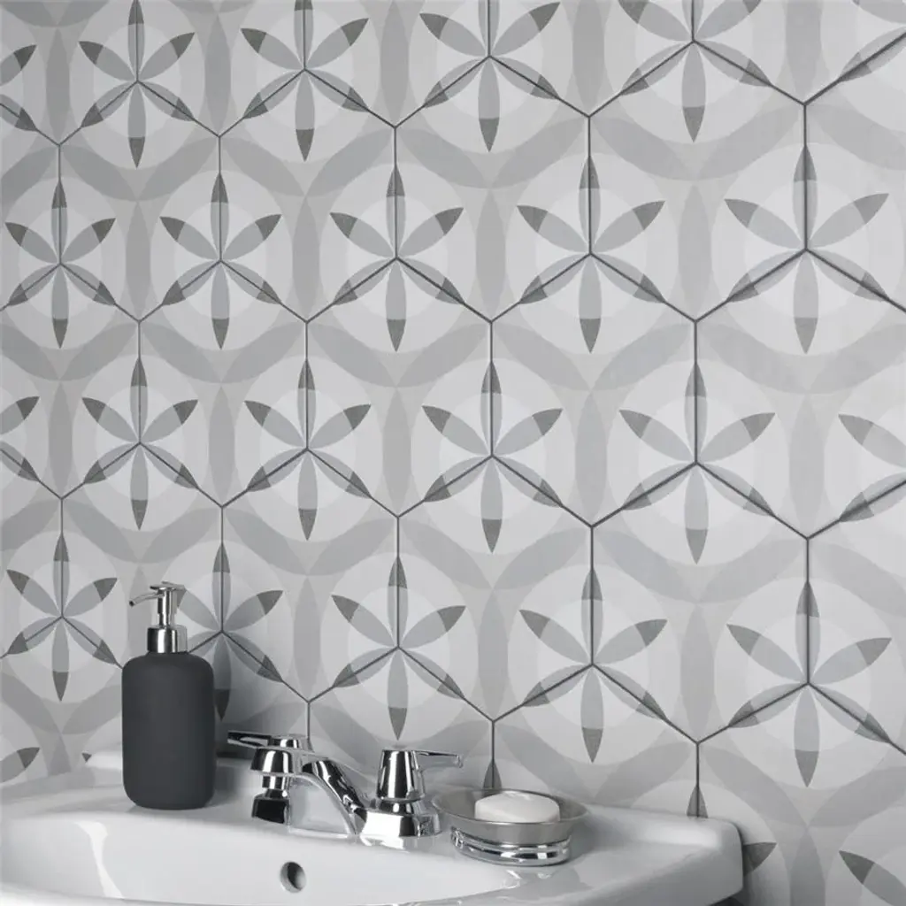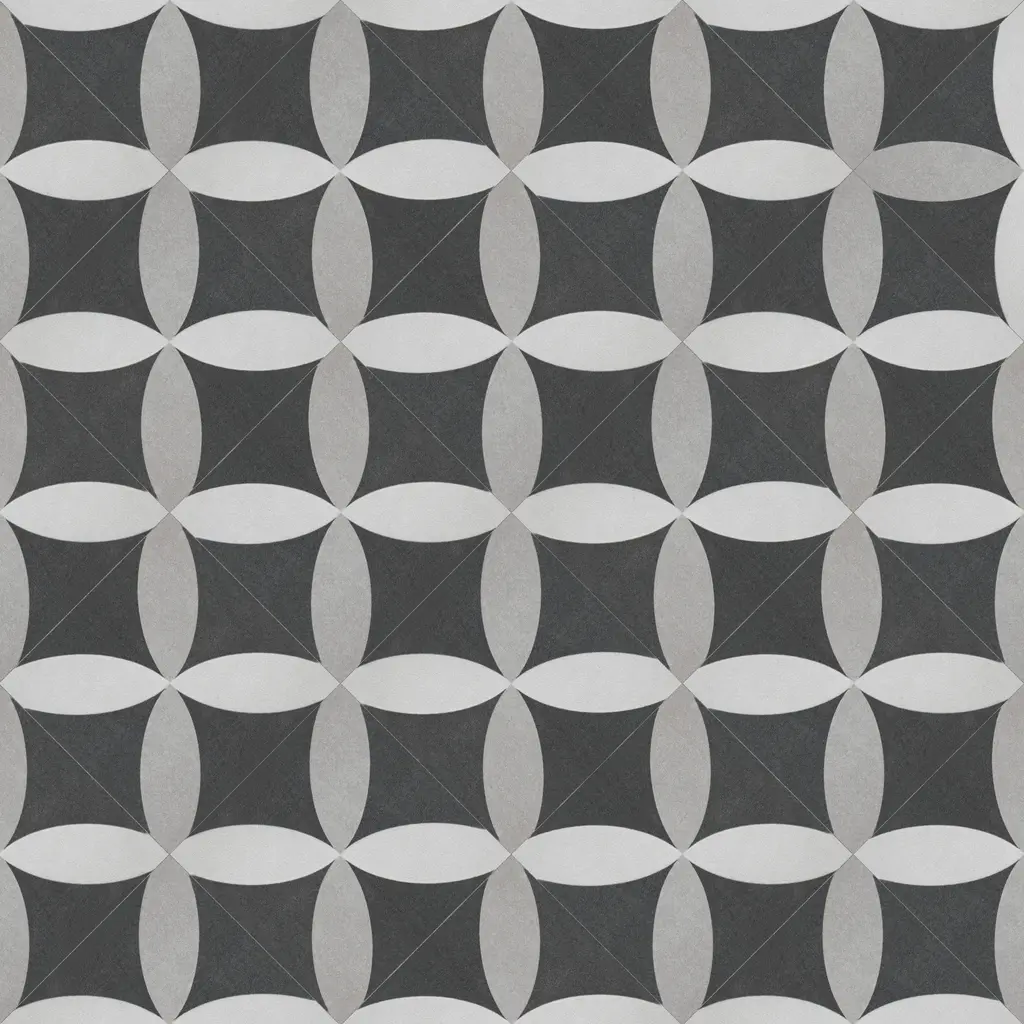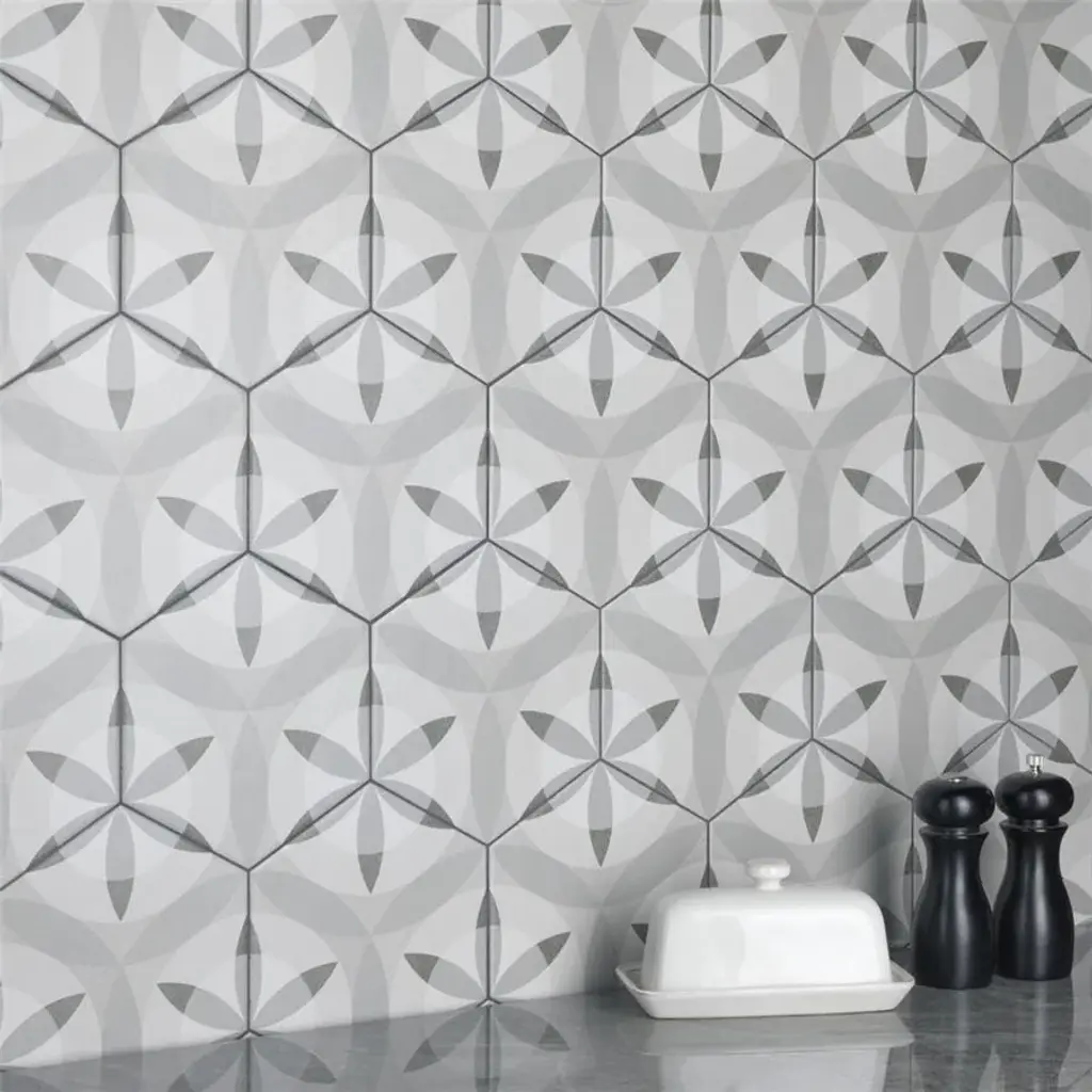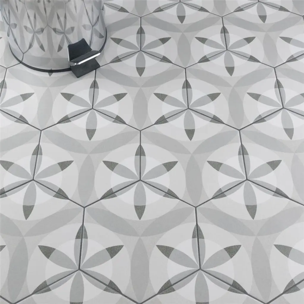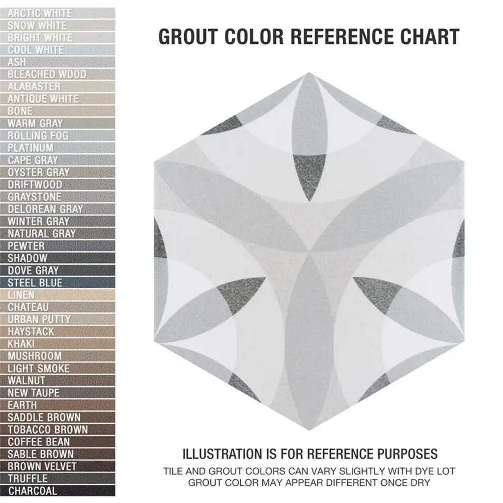 Our Hexatile Matte Nature Black & White 7" x 8" Porcelain Floor and Wall Tile brings functional character, texture and movement into any space. This porcelain tile features flowing lines and curved edges that when laid out, create floral designs with circular accents. Set on a smooth, matte base glaze, this floor and wall tile features decorative patterns in a palette of grey color tones reminiscent of marble stone. To add further contrast and dimension to the design, this tile features speckled detailing in light grey and white tones. This trendsetting design is visually appealing and versatile, allowing it to blend into various design themes, ranging from contemporary projects to traditional installations. Its impervious, durable and frost-resistant features make this an ideal choice for both commercial and residential indoor and outdoor installations, including kitchens, bathrooms, showers, entryways and patios. Tile is the better choice for your space. This tile is made from natural ingredients, making it a healthy choice as it is free from allergens, VOCs, formaldehyde and PVC.