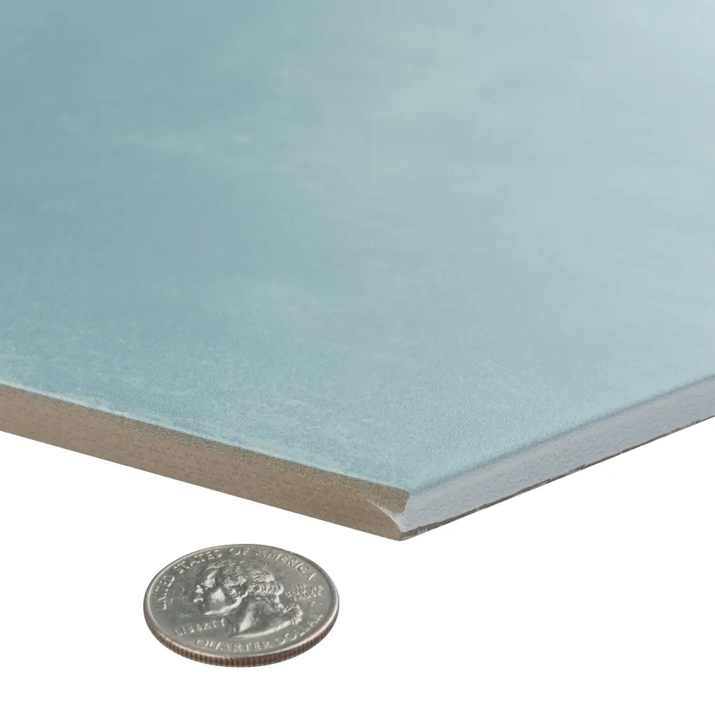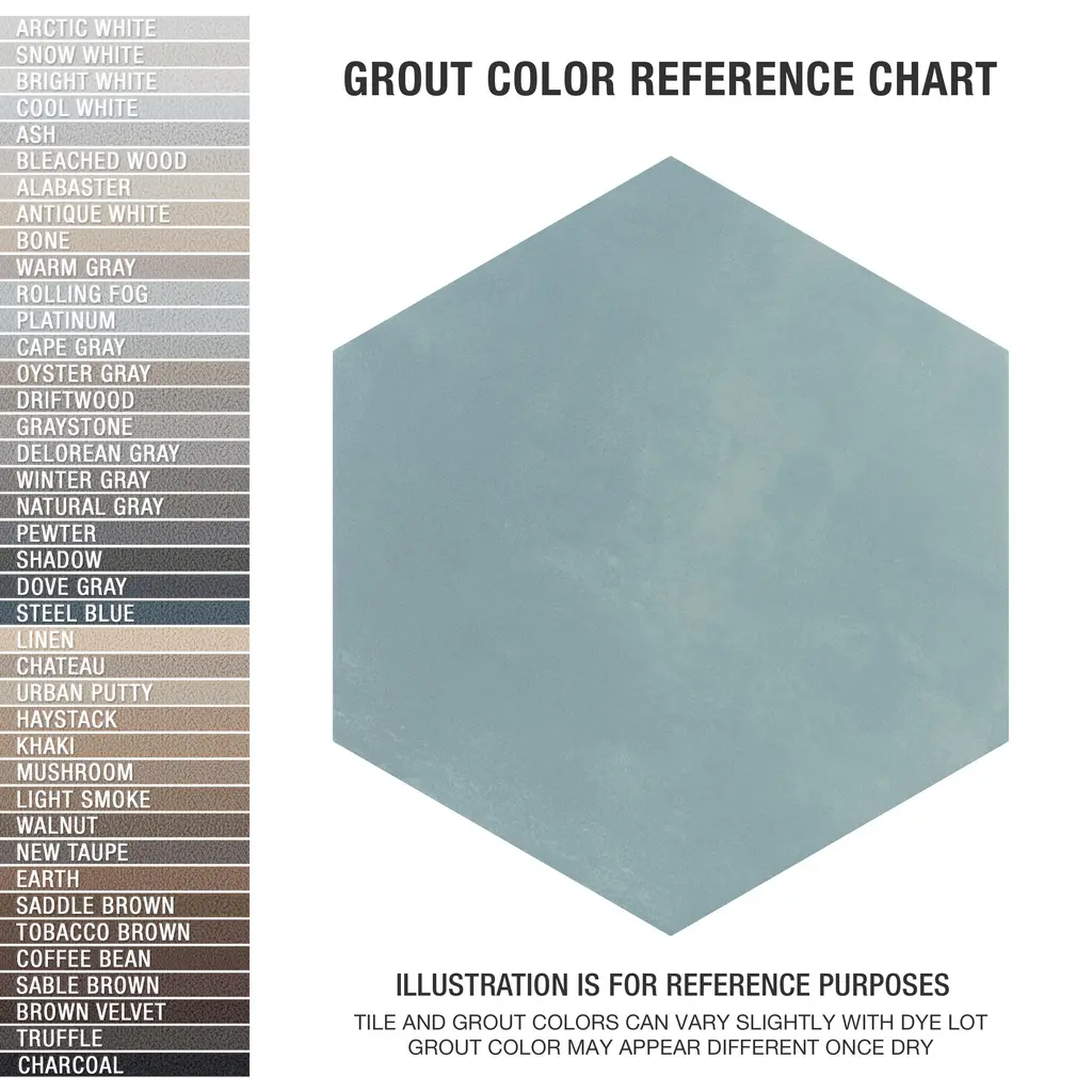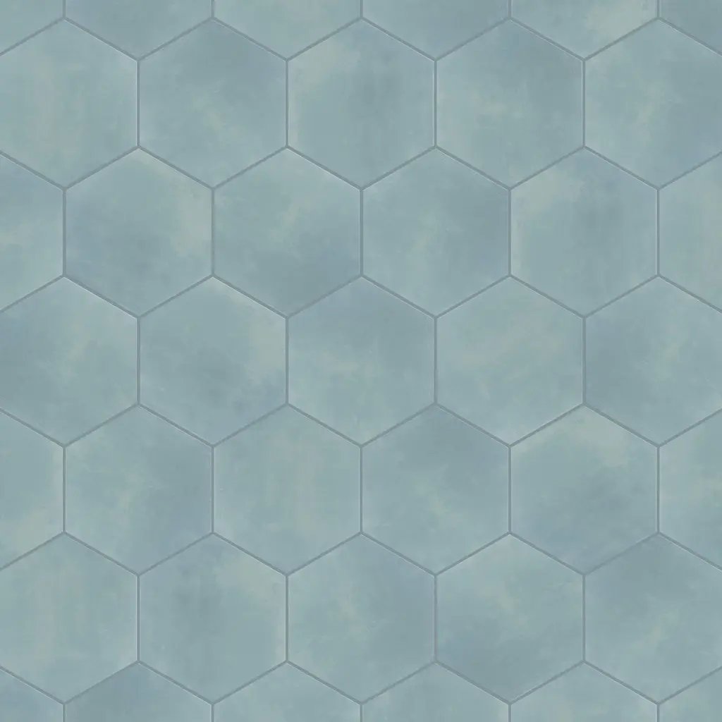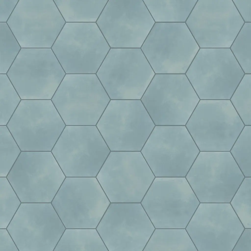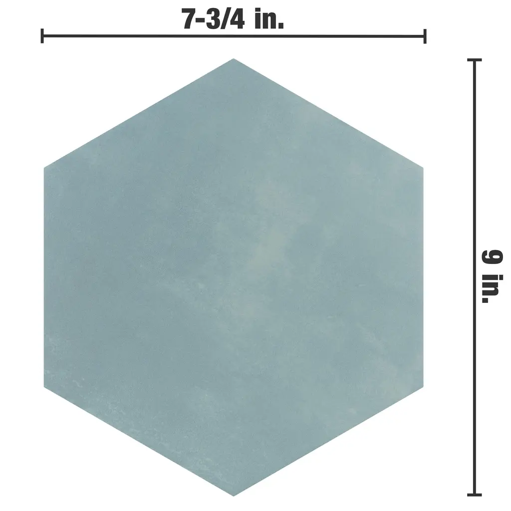 Modeling a geometric look, our Horizon Hex Aguamarina Porcelain Floor and Wall Tile features a smooth, matte finish, providing decorative appeal that adapts to a variety of stylistic contexts. Containing 6 different print variations that are randomly distributed throughout each case, this blue hexagon tile offers a one-of-a-kind look. With its impervious, frost-resistant features, this tile is an ideal selection for both indoor and outdoor residential installations, including kitchens, bathrooms, backsplashes, showers, hallways and fireplace facades. This tile is a perfect choice on its own or paired with other products in the Horizon Collection. Tile is the better choice for your space! 8.88 square feet, 24 pieces per case. Case weight is 39.68 lbs. Grade 1, first-quality porcelain tile for floor and wall use 7.75 in. width x 9 in. length x 0.38 in. thick Glazed, smooth finish with a low sheen and moderate variation in tone PEI Rating III is suitable for medium-duty residential floors including kitchens, halls, corridors, balconies, terraces and areas used more often with normal footwear and small amounts of dirt Impervious tiles have a water absorption of less than 0.5% for indoor and outdoor use and are frost resistant This tile is ADA approved for slip resistance with a DCOF value of 0.42 or higher. Completely frost resistant for indoor or outdoor applications; use a latex-modified thinset for acceptable bond strength Please note: A sample of this product may be a partial piece cut from the full size tile in order to provide an affordable and convenient way for customers to judge the quality and finish of this item. Samples are not returnable.