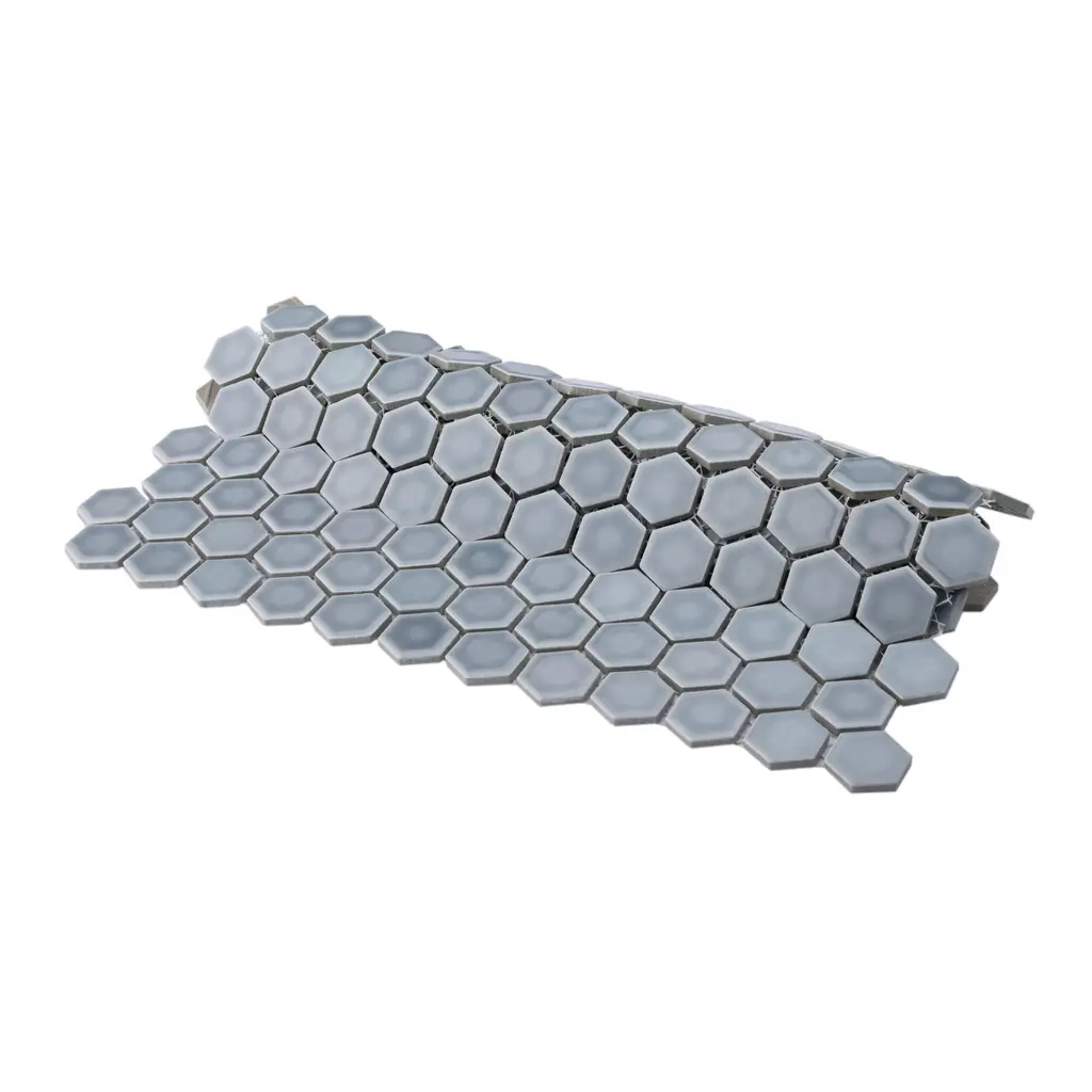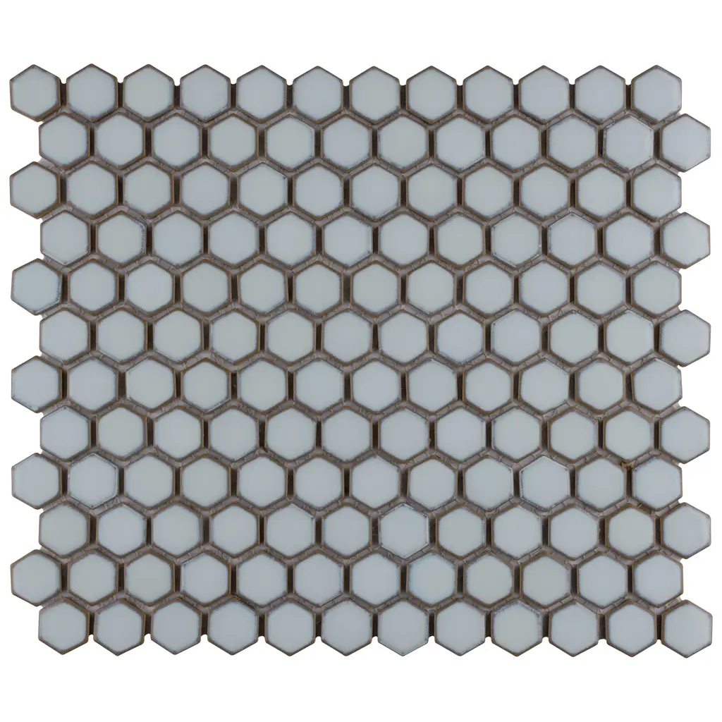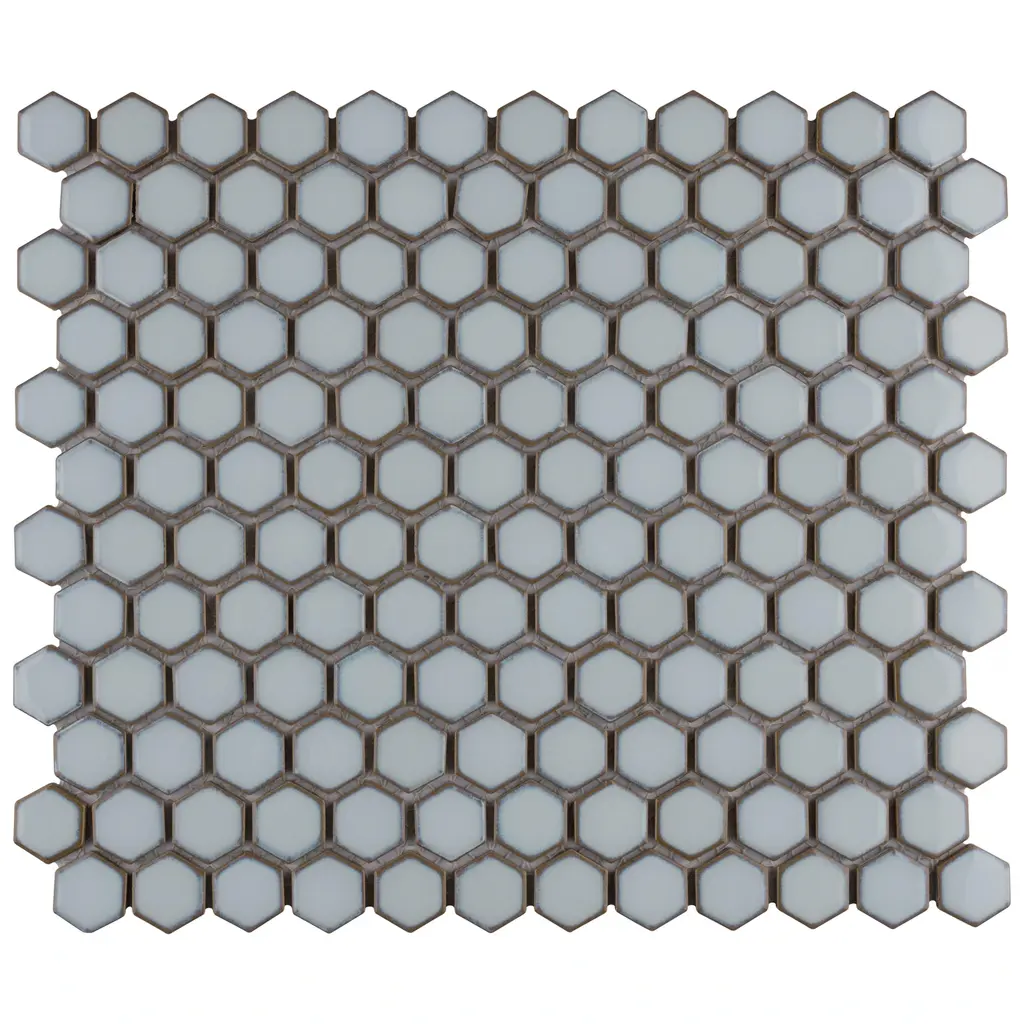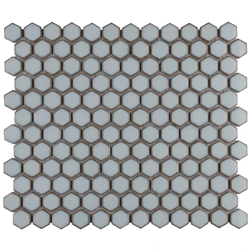 Our Hudson 1 in. Hex Silk White Porcelain Floor and Wall Mosaic Tile instantly elevates spaces through a refreshing dose of geometric design. Featuring a reactive glaze with an eye-drop effect, these tiles have a soft, silk white color tone with a subtle baby blue undertone that blend to taupe around the edges. This mosaic is a pleasing mixture of cool-toned tints with additional dimension added by the smooth, high-gloss finish. This porcelain mosaic floor and wall tile is unique yet simplistic enough to integrate into any design, ranging from traditional style renovations to modern home projects. Its impervious and frost-resistant features make this an ideal choice for both commercial and residential indoor and outdoor floor and wall installations including, kitchen backsplashes, bathroom showers and accent walls. This hexagon mosaic can be used as a whole sheet or cut into smaller strips as an accent piece. It is a perfect choice on its own or coordinated with other colors in our Hudson Hex series. Tile is the better choice for your space. This tile is made from natural ingredients, making it a healthy choice as it is free from allergens, VOCs, formaldehyde and PVC. 11.2 square feet, 10 pieces per case. Case weight is 19 lbs. Grade 1, first-quality porcelain tile for floor and wall use 11.88 in. width x 13.25 in. length x 0.19 in. thick mesh-mounted mosaic Glazed, smooth finish with a high sheen and slight variation in tone PEI Rating IV has high resistance to abrasion and is suitable for heavy-duty residential and commercial kitchens, hotels, exhibition and sales rooms with some dirt conditions Impervious tiles have a water absorption of less than 0.5% for indoor and outdoor use and are frost resistant This tile is not ADA approved for slip resistance with a DCOF value less than 0.42. Completely frost resistant for indoor or outdoor applications; use a latex-modified thinset for acceptable bond strength Please note: A sample of this product may be a partial piece cut from the full size tile in order to provide an affordable and convenient way for customers to judge the quality and finish of this item. Samples are not returnable.